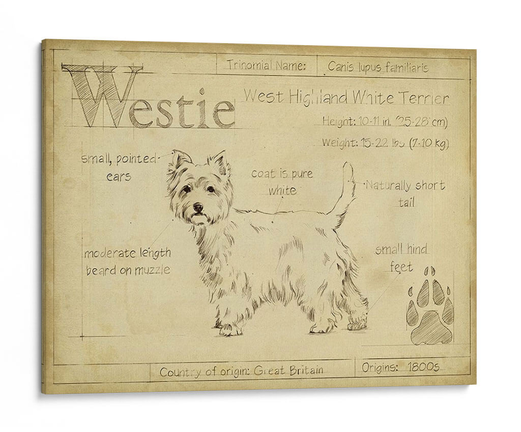 Capture la esencia del encanto canino con este exquisito cuadro decorativo "Antiguo Westie (Ash)" del artista Ethan Harper. Esta pieza evoca una sensación de nostalgia y admiración por la raza West Highland White Terrier, presentada con un estilo de boceto detallado que recuerda a los diagramas científicos o las páginas de un cuaderno de artista. La paleta de colores sepia y los tonos tierra, combinados con las líneas a lápiz, crean una atmósfera vintage y sofisticada. La composición centra la atención en la figura del Westie, destacando sus características distintivas como sus orejas puntiagudas, su barba moderada y su cola corta, complementado por una huella de pata que añade un toque tierno. Es la obra de arte ideal para los amantes de los perros, aportando calidez y personalidad a cualquier salón, estudio u oficina. Su estilo único lo convierte en un punto focal interesante en decoraciones rústicas, clásicas o incluso modernas que buscan un contraste distintivo. Descubra la belleza atemporal de este fiel compañero plasmada en una obra que habla de historia y afecto canino, perfecta para infundir carácter y una conexión emocional a sus espacios.