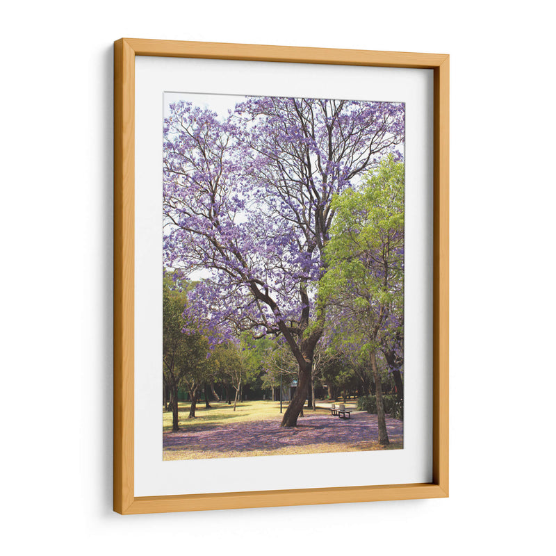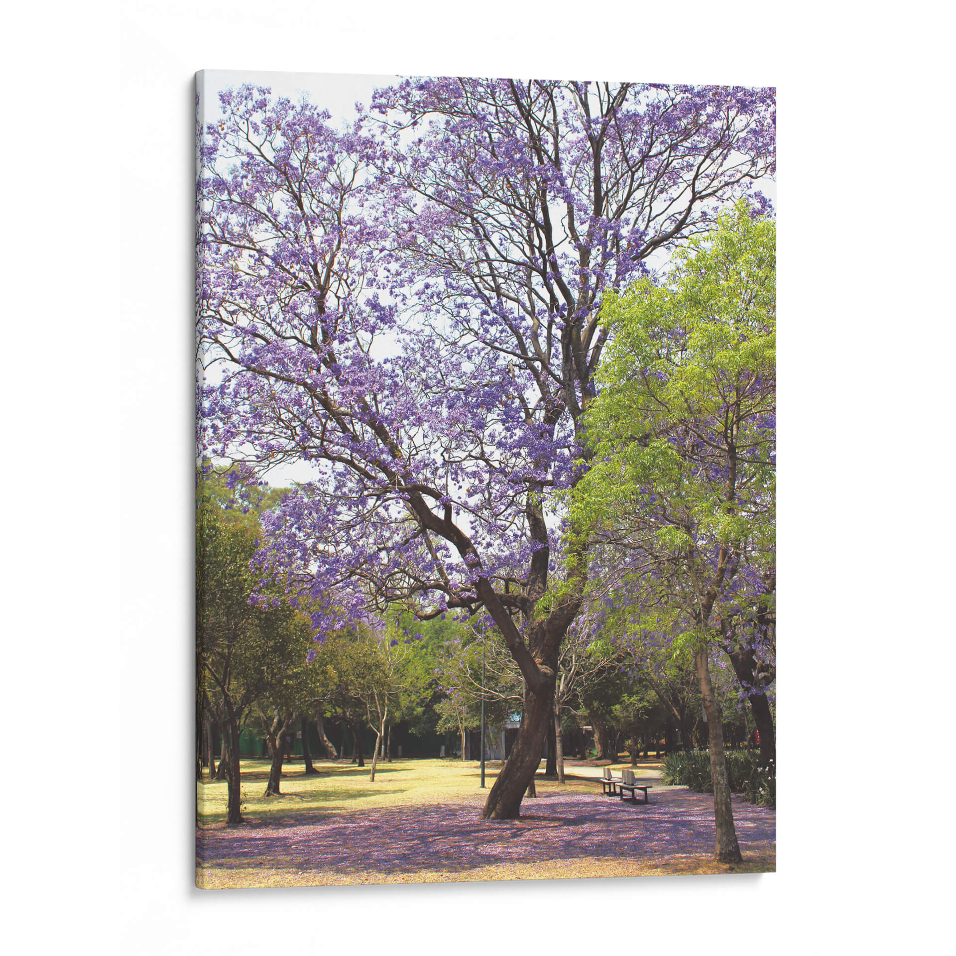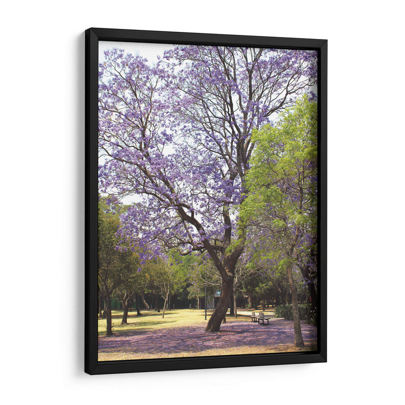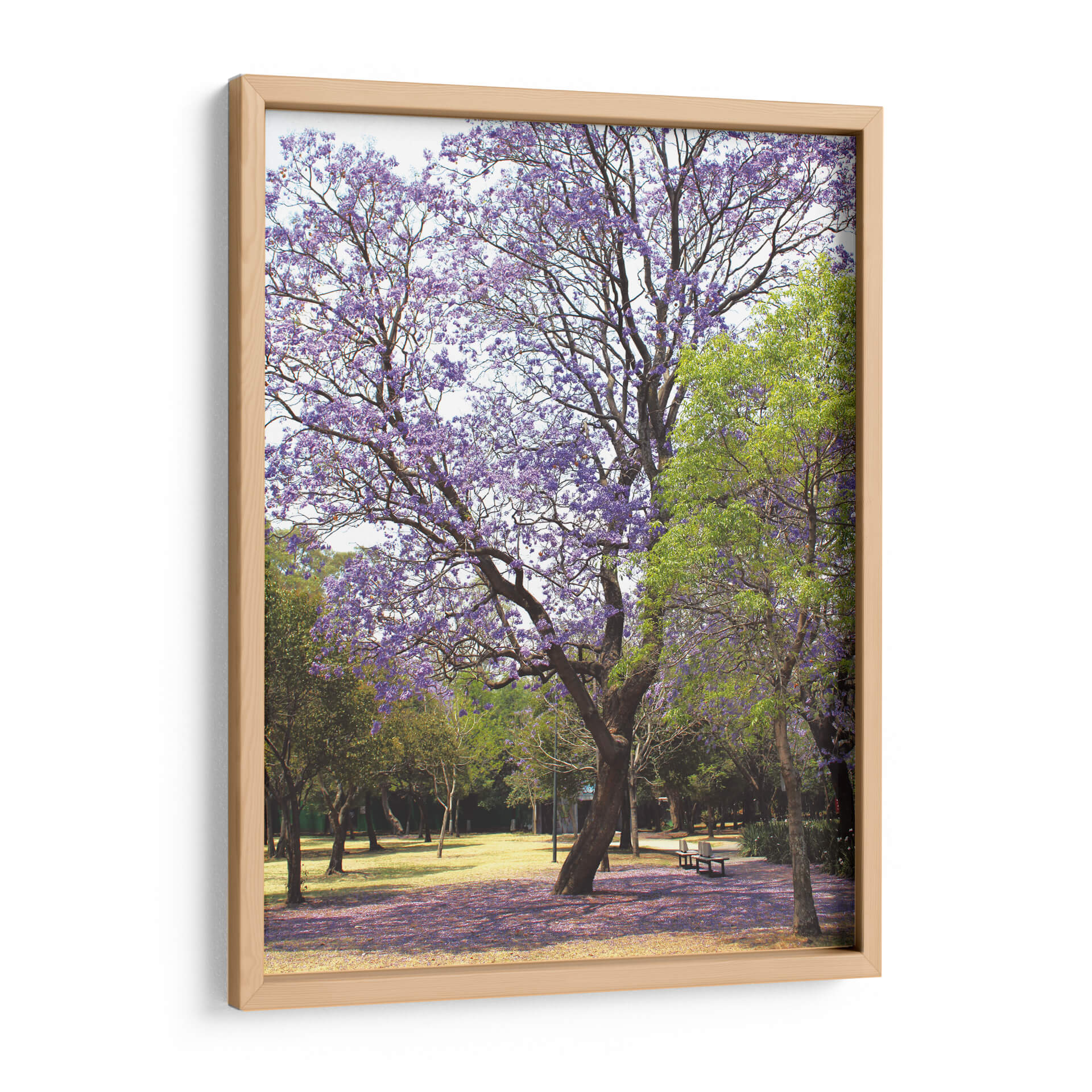Captura la esencia de la primavera en la Ciudad de México con este vibrante cuadro decorativo que evoca la majestuosidad de los árboles de jacaranda en flor. La obra presenta una escena serena de un parque, donde las ramas cargadas de flores púrpuras se extienden hacia un cielo claro, y una alfombra de pétalos caídos tapiza el suelo. Los verdes intensos de los árboles circundantes contrastan armoniosamente con el espectáculo floral, creando una atmósfera de tranquilidad y belleza natural. Este cuadro es ideal para quienes buscan infundir sus espacios con la vitalidad y el color de la naturaleza, transportando la experiencia de un paseo por Chapultepec a su hogar u oficina. Su composición detallada y la riqueza cromática lo convierten en un punto focal perfecto para salas de estar, recibidores o cualquier ambiente que desee una conexión con la estética urbana y el encanto de la flora mexicana. Transforma tu pared con esta pieza que celebra la fugaz pero deslumbrante floración del jacaranda, aportando un toque de color y serenidad a tu decoración.