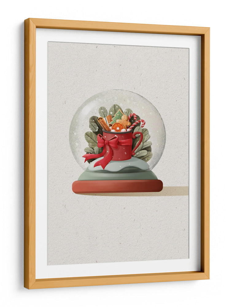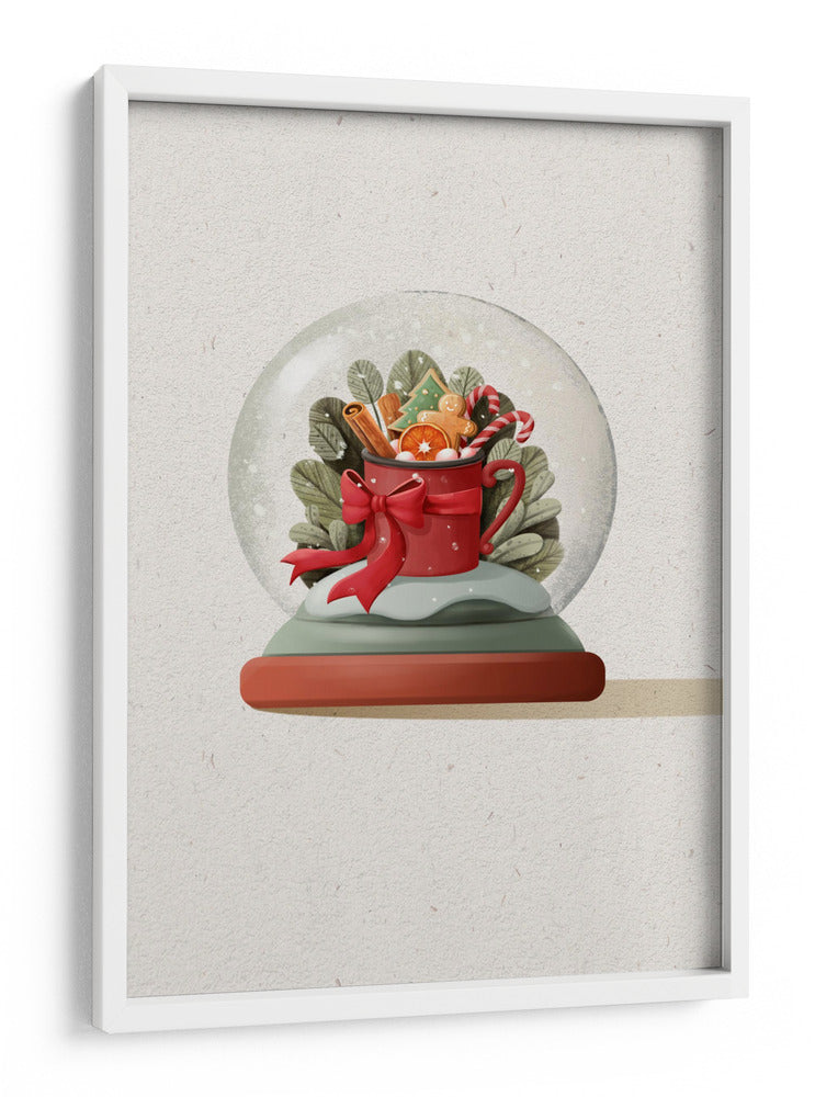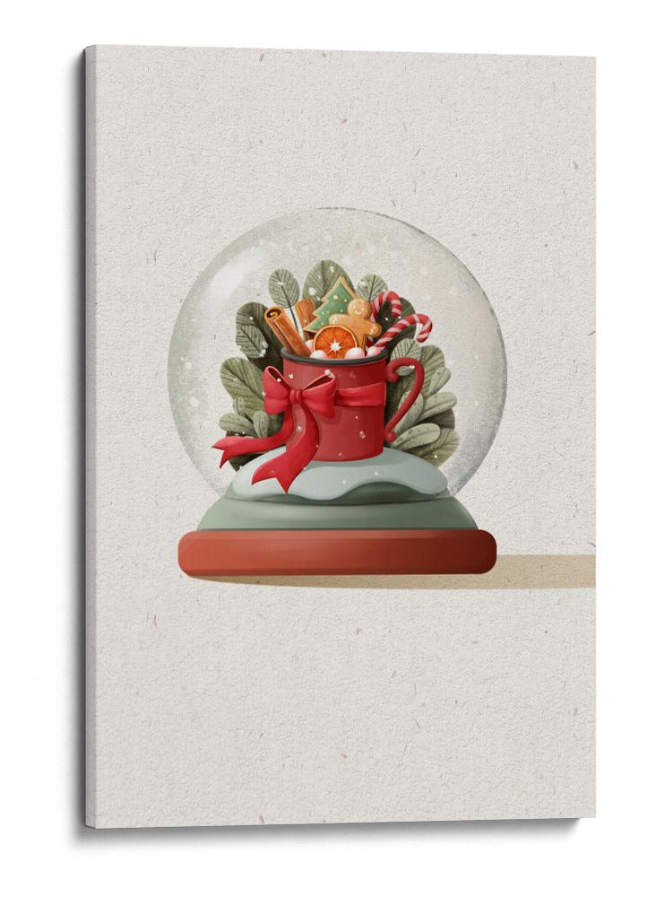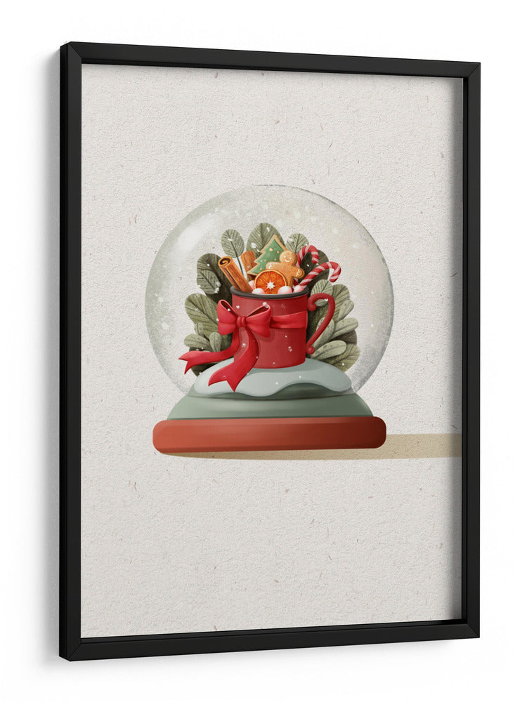 Sumérgete en la magia invernal con "Bola de Cristal", una obra de arte digital que captura la esencia festiva de la temporada. Esta pieza evoca una sensación de nostalgia y calidez, presentando una encantadora escena dentro de una esfera de cristal. El diseño presenta una taza roja rebosante de delicias navideñas: galletas de jengibre, bastones de caramelo, una rodaja de naranja y una rama de canela, todo ello rodeado de exuberante follaje verde. Un lazo rojo festivo añade un toque de elegancia a la composición, mientras que la base de la esfera, cubierta de un manto nevado, completa la imagen idílica. La paleta de colores, dominada por los rojos vibrantes, verdes profundos y tonos tierra cálidos, crea una atmósfera acogedora y festiva, perfecta para adornar cualquier espacio durante las fiestas o durante todo el año para aquellos que aman la temporada navideña. "Bola de Cristal" es ideal para añadir un toque de alegría y encanto a salones, comedores o incluso espacios de trabajo que busquen una dosis de espíritu navideño. Este cuadro decorativo es una invitación a revivir los momentos más dulces del invierno y la celebración, un recordatorio visual de la alegría y la abundancia.