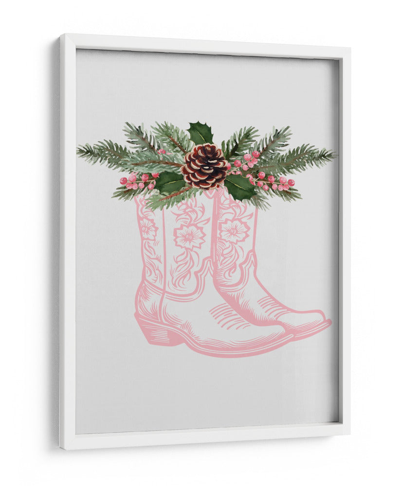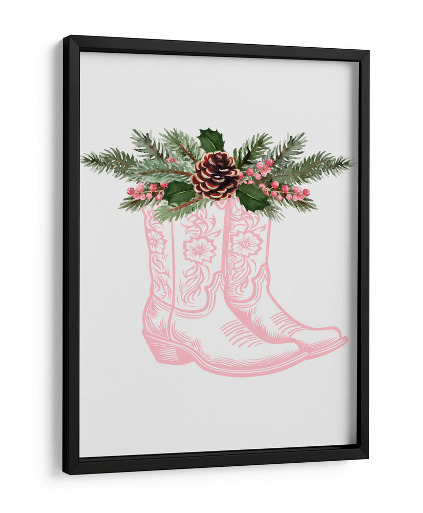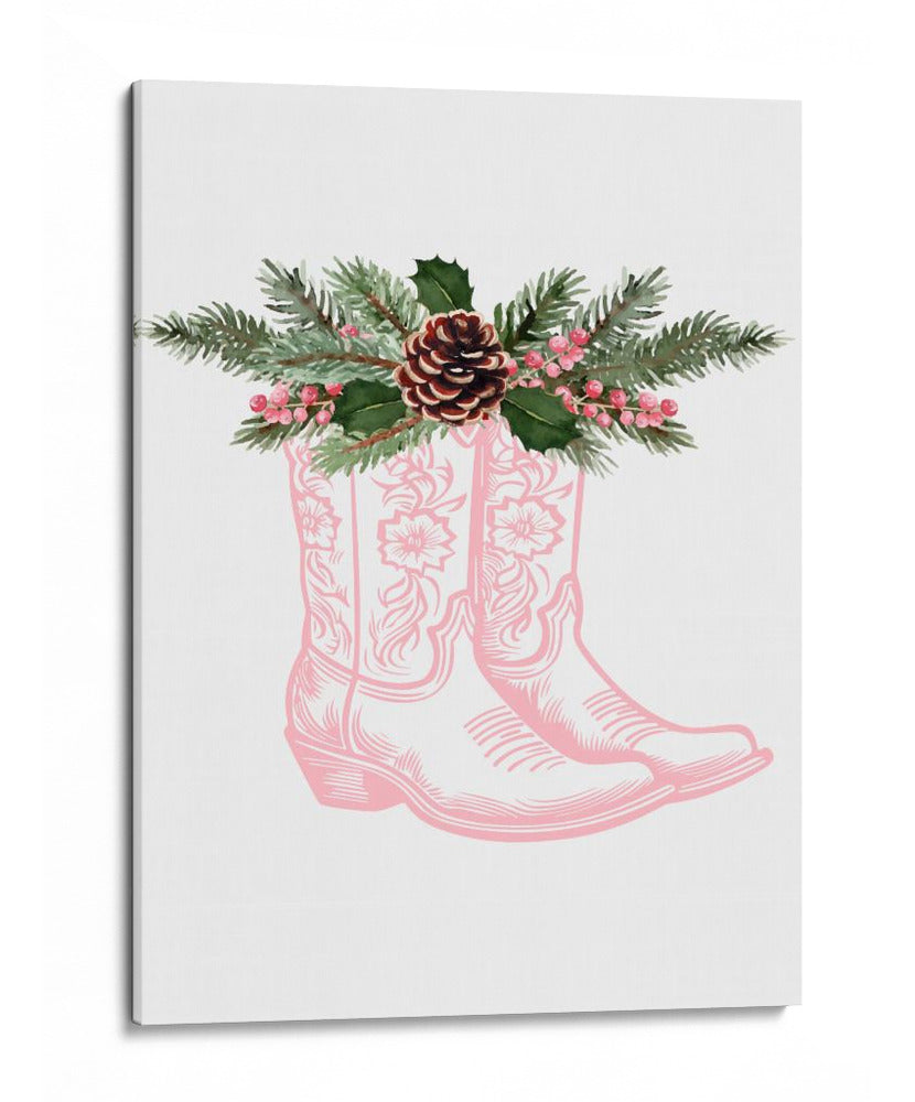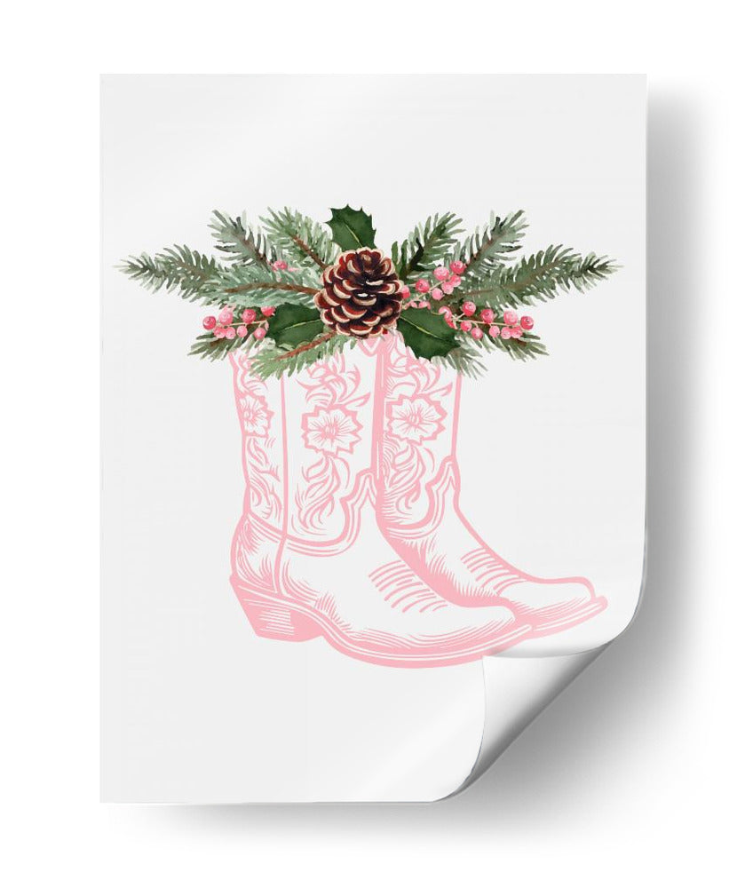 Embárcate en un viaje de estilo y celebración con este encantador cuadro decorativo de "Botas vaqueras festivas - Rosa". Esta obra de arte, creada por el artista Jolly and Dash, captura la esencia juguetona y festiva de unas botas de vaquero adornadas con un toque de naturaleza invernal. Las botas, representadas en un delicado tono rosa y con intrincados detalles florales grabados, evocan una sensación de feminidad y encanto rústico. Coronando esta pieza se encuentra un exuberante arreglo de ramas de pino, bayas rojas vibrantes y una piña robusta, todo ello presentado con una delicada técnica de acuarela que añade profundidad y textura. El fondo blanco nítido permite que los elementos de la obra resalten, creando un contraste visual cautivador. Este cuadro es ideal para infundir alegría y un espíritu festivo en cualquier espacio. Imagina este vibrante cuadro como el punto focal de tu sala de estar, aportando un toque de color y personalidad a tu hogar, o quizás como una adición única y acogedora a una oficina, transmitiendo una vibra amigable y creativa. Su estilo único combina elementos del arte occidental con una estética moderna y festiva, perfecto para quienes buscan una decoración de pared que sea a la vez distintiva y expresiva. Añade un toque de alegría temática y sofisticación a tu decoración con esta pieza que celebra la tradición con un giro contemporáneo y color.