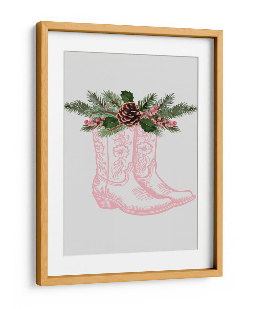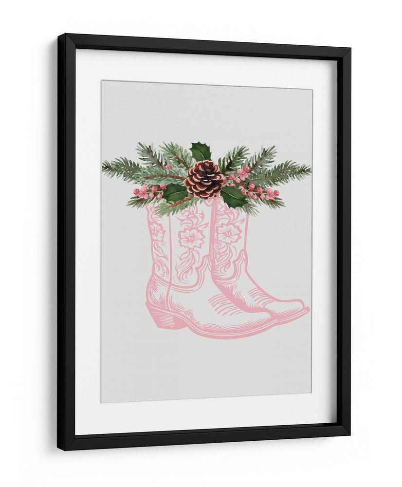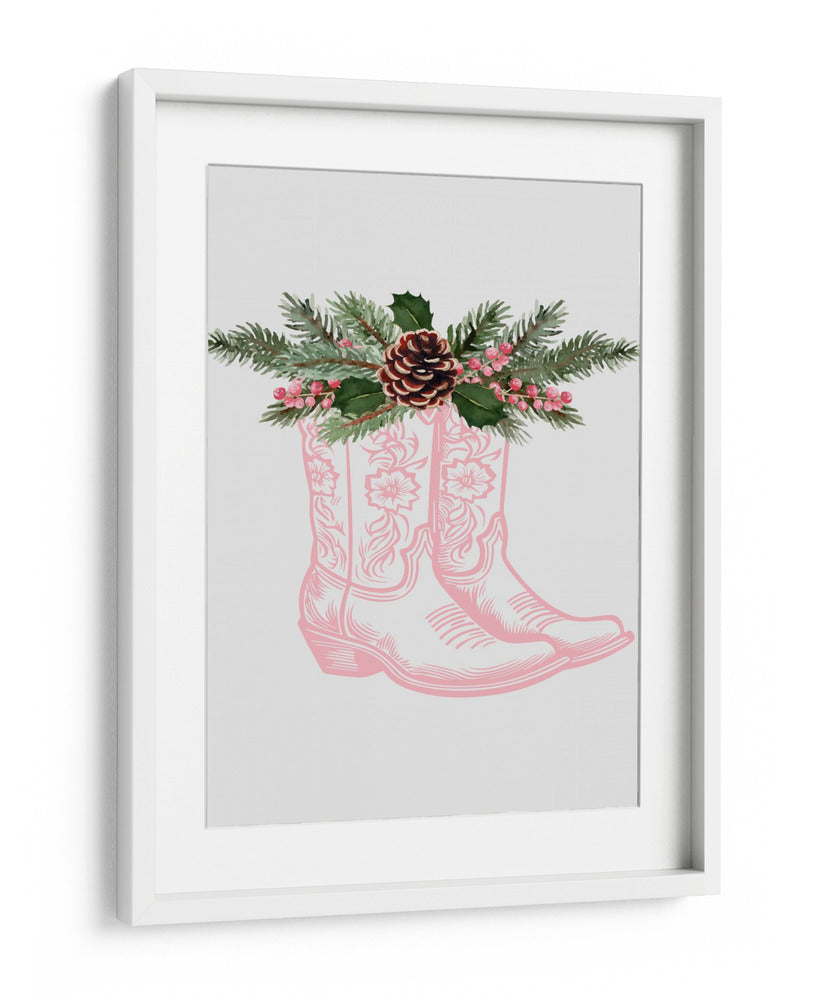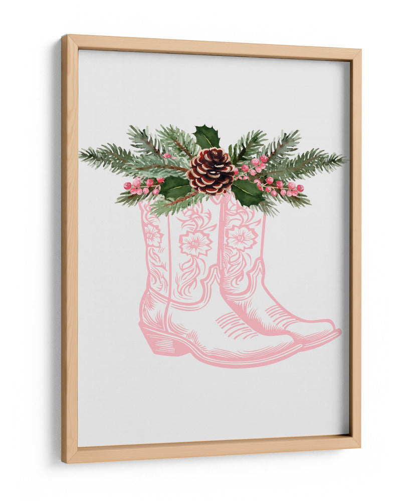 Embárcate en un viaje de estilo y celebración con este encantador cuadro decorativo de "Botas vaqueras festivas - Rosa". Esta obra de arte, creada por el artista Jolly and Dash, captura la esencia juguetona y festiva de unas botas de vaquero adornadas con un toque de naturaleza invernal. Las botas, representadas en un delicado tono rosa y con intrincados detalles florales grabados, evocan una sensación de feminidad y encanto rústico. Coronando esta pieza se encuentra un exuberante arreglo de ramas de pino, bayas rojas vibrantes y una piña robusta, todo ello presentado con una delicada técnica de acuarela que añade profundidad y textura. El fondo blanco nítido permite que los elementos de la obra resalten, creando un contraste visual cautivador. Este cuadro es ideal para infundir alegría y un espíritu festivo en cualquier espacio. Imagina este vibrante cuadro como el punto focal de tu sala de estar, aportando un toque de color y personalidad a tu hogar, o quizás como una adición única y acogedora a una oficina, transmitiendo una vibra amigable y creativa. Su estilo único combina elementos del arte occidental con una estética moderna y festiva, perfecto para quienes buscan una decoración de pared que sea a la vez distintiva y expresiva. Añade un toque de alegría temática y sofisticación a tu decoración con esta pieza que celebra la tradición con un giro contemporáneo y color.