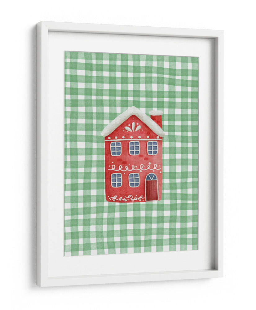 Casa navideña roja linda en cuadros verdes - Jolly and Dash