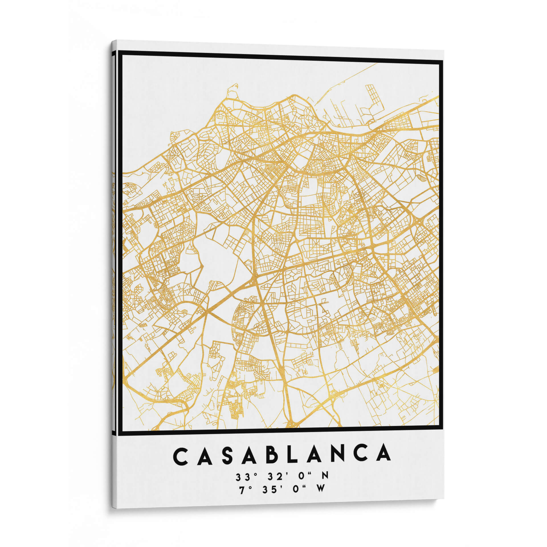 Embárcate en un viaje visual a través de la icónica ciudad de Casablanca con este elegante cuadro decorativo. La obra presenta un detallado mapa de la ciudad, donde las intrincadas calles y avenidas se despliegan en un sofisticado tono dorado sobre un fondo blanco puro. La paleta de colores minimalista, centrada en el contraste del dorado y el blanco, confiere una sensación de lujo y modernidad. La composición, inspirada en los mapas cartográficos, es tanto informativa como estéticamente cautivadora, invitando a la contemplación y al descubrimiento. Este cuadro decorativo es ideal para aquellos que buscan añadir un toque de elegancia urbana y un guiño a la exploración a sus espacios. Perfecto para salas de estar contemporáneas, estudios u oficinas, este mapa de Casablanca no solo embellece, sino que también evoca la sensación de aventura y la conexión con lugares significativos. Su diseño limpio y moderno se integra fácilmente en diversas decoraciones, desde lo minimalista hasta lo más audaz, convirtiéndose en un punto focal que suscita conversación y admiración. Descubre la belleza geométrica de una metrópoli y lleva un pedazo de su esencia a tu hogar u oficina con esta pieza única de arte de pared.