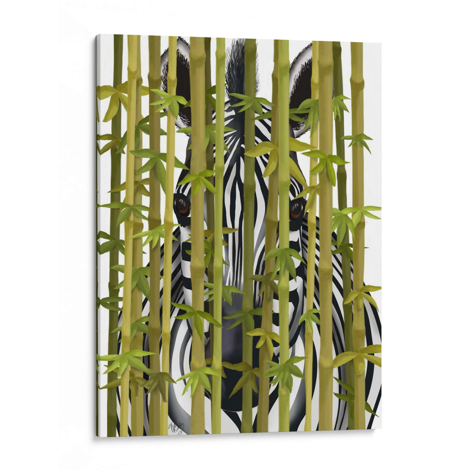 Sumérgete en la serenidad y el misterio con nuestro cuadro decorativo "Cebra de Bambú", una obra maestra del artista Fab Funky que captura la esencia de la naturaleza en un estilo contemporáneo único. Esta pieza visualmente cautivadora presenta el icónico patrón a rayas de una cebra, delicadamente entrelazado con altos tallos de bambú verde vibrante y hojas exuberantes. La composición juega con la yuxtaposición de la fauna salvaje y la flora, creando una sensación de armonía y equilibrio. Los tonos tierra del bambú, que van desde verdes amarillentos hasta tonos más profundos, contrastan maravillosamente con las audaces líneas blancas y negras de la cebra, aportando profundidad y dinamismo a la obra. La mirada penetrante de la cebra, parcialmente oculta entre los estilizados tallos, añade un toque de intriga, invitando al espectador a descubrir más. Este cuadro decorativo es perfecto para añadir un toque de sofisticación y un guiño a la belleza natural a cualquier espacio. Ideal para salones modernos, dormitorios tranquilos, oficinas elegantes o incluso como una declaración audaz en un comedor. Su estilo artístico digital, con toques de ilustración, lo convierte en una pieza versátil que complementará una variedad de esquemas de decoración, desde lo minimalista hasta lo ecléctico, aportando un aire de exotismo y calma.