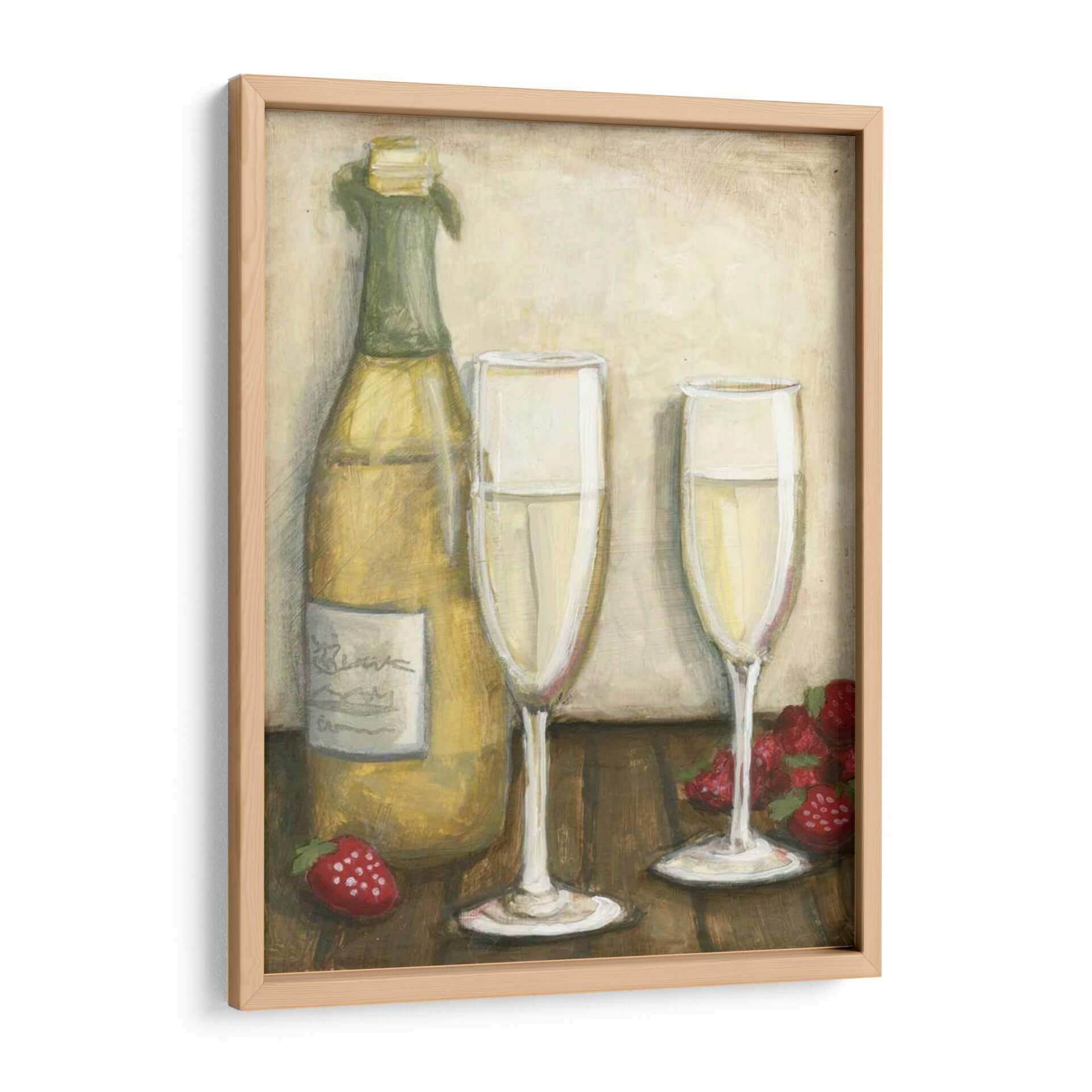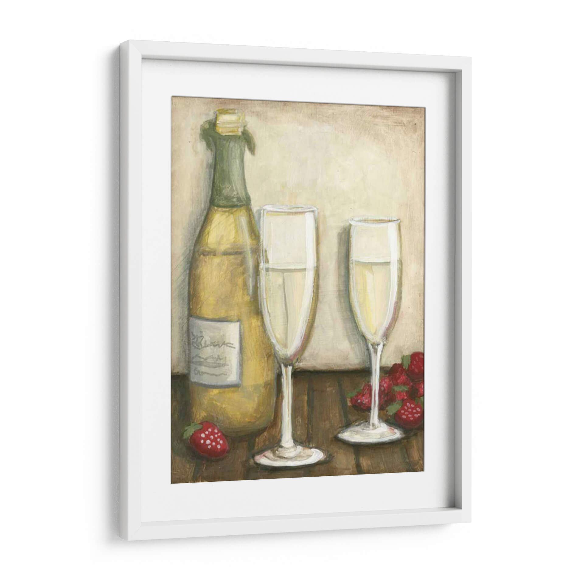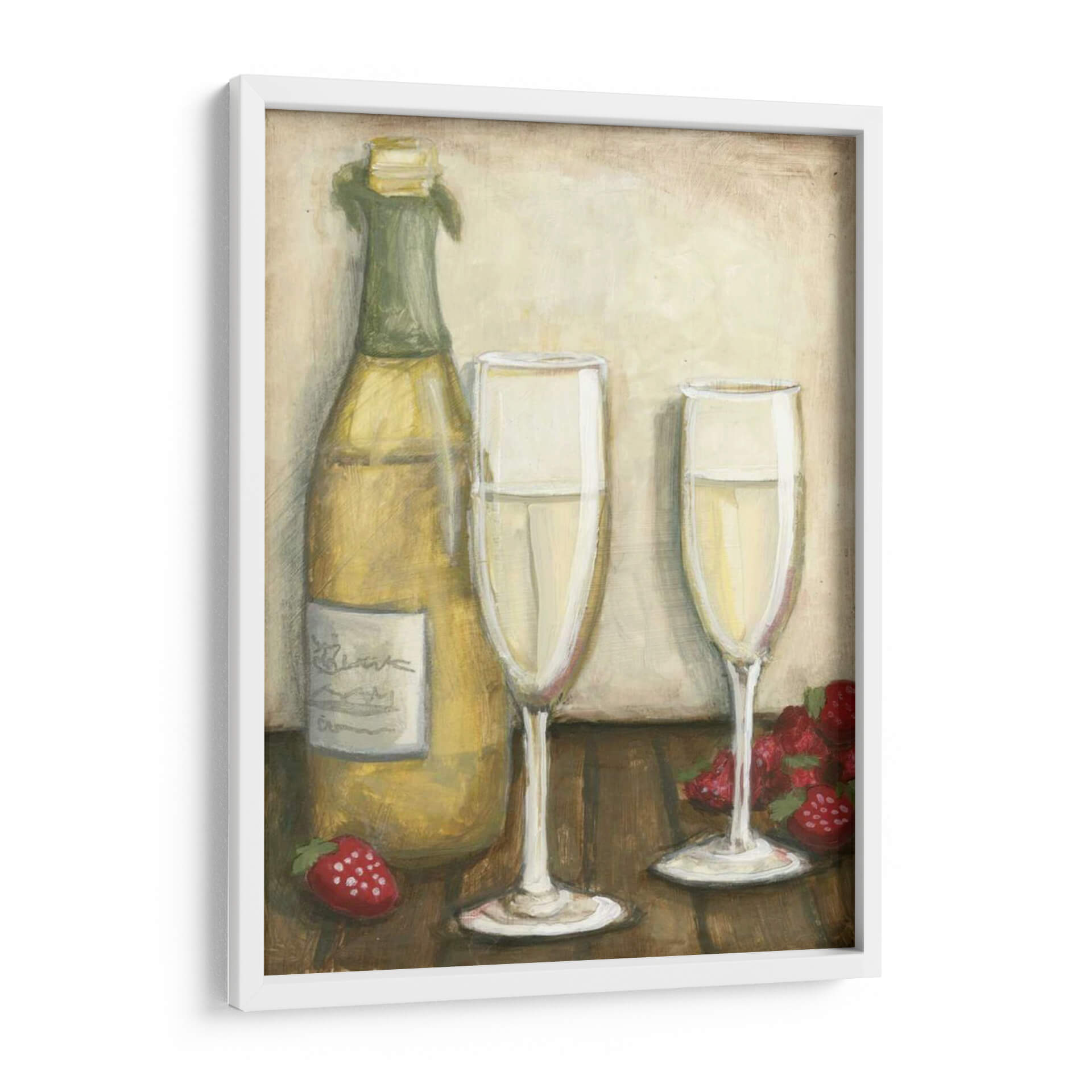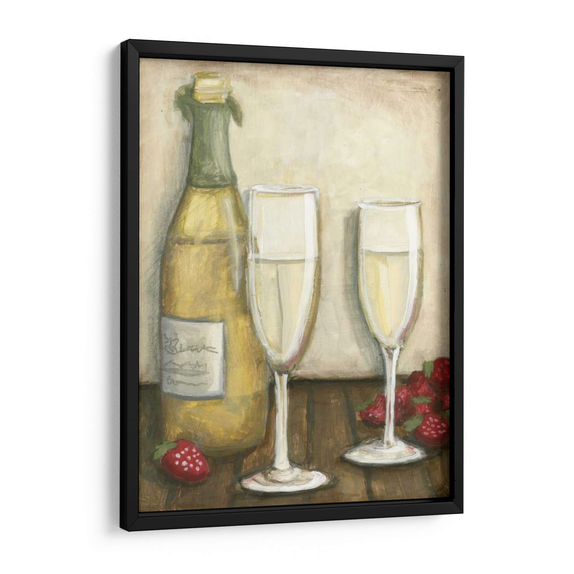 Celebra la vida y el placer con "Champán", una obra de arte que captura la esencia de la sofisticación y la alegría. Esta pieza visualmente cautivadora presenta una botella de champán espumoso junto a dos copas elegantes, listas para brindar. Fresas rojas vibrantes añaden un toque de dulzura y color, creando una composición que invita a la celebración. Los tonos cálidos y terrosos del fondo, combinados con los reflejos dorados del vino espumoso, crean una atmósfera de lujo discreto y calidez. El estilo pictórico de Megan Meagher aporta una textura sutil y un encanto artesanal, haciendo de este cuadro decorativo una adición perfecta para cualquier espacio que busque evocar un sentimiento de ocasión especial. Ideal para comedores, salas de estar o incluso como un punto focal en una cocina gourmet, "Champán" es más que una simple imagen; es una invitación a disfrutar de los buenos momentos. Añade un toque de refinamiento y un recordatorio visual de las alegrías simples de la vida a tu hogar con esta hermosa obra de arte.