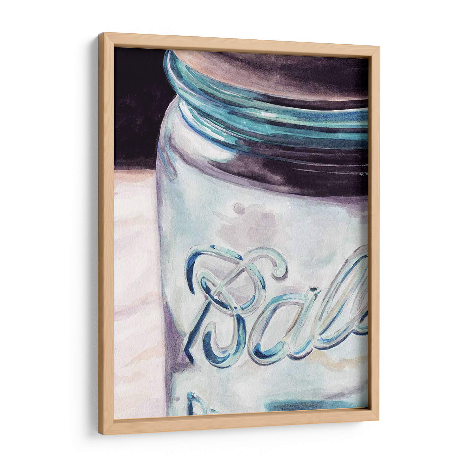 Captura la esencia de la nostalgia y el encanto rústico con este exquisito cuadro decorativo, una reinterpretación artística de un tarro Mason clásico. La obra destaca por su técnica de acuarela, que aporta una suavidad etérea y una delicadeza inigualable a la imagen. Los colores predominantes, una paleta de azules celestes y lavandas sutiles, se funden con toques de morado oscuro y blanco, creando una atmósfera serena y tranquilizadora. La luz juega un papel crucial, resaltando las texturas y el relieve del icónico logotipo 'Ball' grabado en el cristal, confiriéndole una tridimensionalidad sorprendente. La composición, un primer plano detallado, invita al espectador a apreciar la belleza de lo cotidiano. Este cuadro decorativo es perfecto para añadir un toque de calidez y estilo vintage a cocinas, comedores o cualquier rincón del hogar que necesite un acento de dulzura y recuerdo. Su estilo artístico, que roza lo impresionista con un toque contemporáneo, lo convierte en una pieza versátil, capaz de complementar tanto decoraciones rústicas como espacios más modernos que buscan un contraste interesante. Imagina este lienzo como el punto focal de tu pared, evocando momentos de sencillez y placer casero.