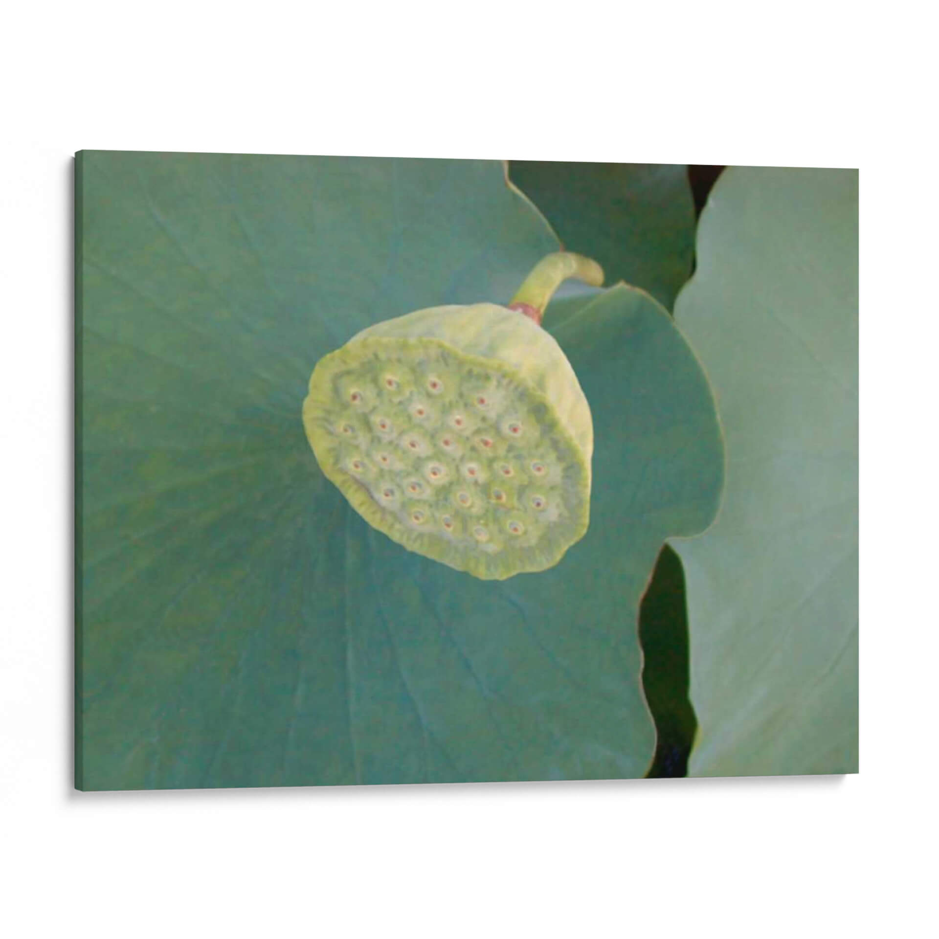 Sumérgete en la serenidad y la belleza natural con 'Detalle De Loto Viii', una obra de arte contemporáneo que captura la esencia delicada de la flor de loto en su etapa de madurez. El artista Jim Christensen nos presenta un primer plano detallado de la cabeza de semillas del loto, rodeada por las amplias y suaves hojas verdes, creando una composición que irradia calma y vitalidad. Los tonos verdes predominantes, desde los profundos y oscuros hasta los más claros y acuosos, se combinan sutilmente para evocar la frescura de un estanque tranquilo y la pureza de la naturaleza. La textura visual, sutilmente sugerida, invita a la contemplación y a la conexión con el ciclo de la vida. Esta pieza es ideal para añadir un toque de paz y elegancia a cualquier espacio, ya sea un dormitorio, un estudio zen o una sala de estar que busque un elemento decorativo que inspire tranquilidad y renovación. 'Detalle De Loto Viii' no es solo un cuadro decorativo, sino una ventana a la introspección y un recordatorio de la belleza intrínseca del mundo natural. Perfecto para quienes buscan arte de pared que combine estética refinada con un profundo sentido de armonía.