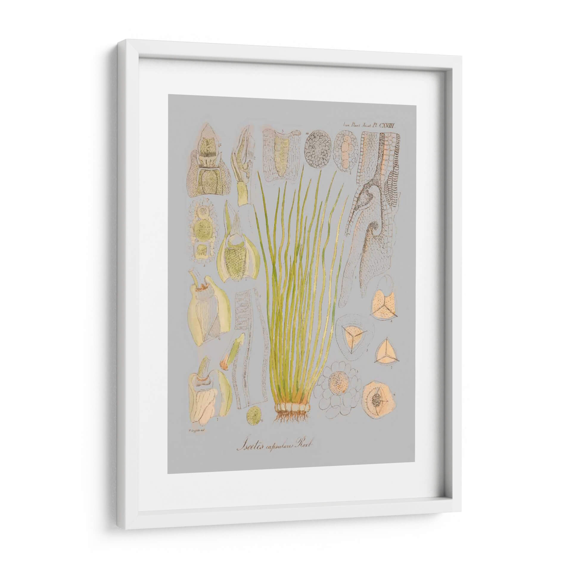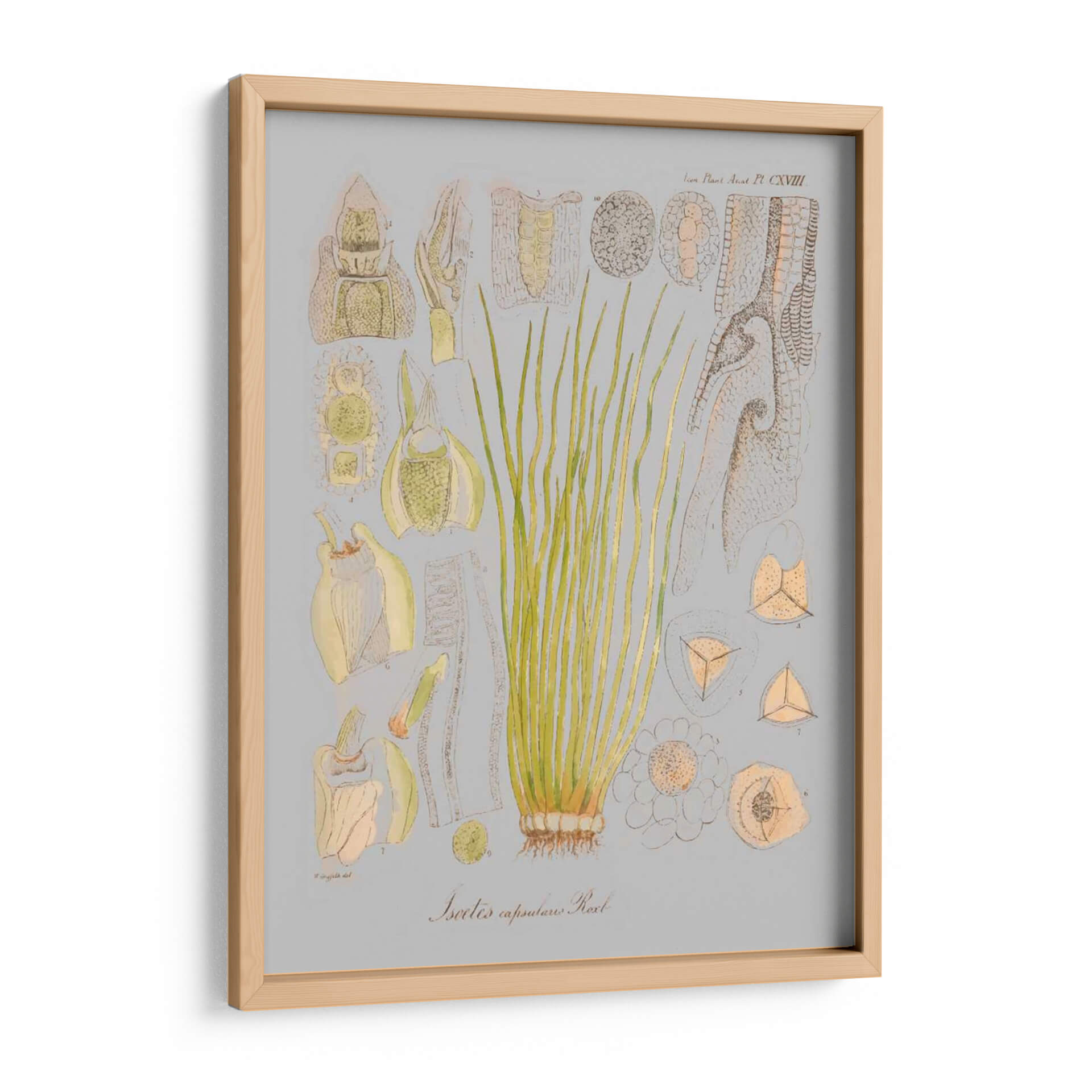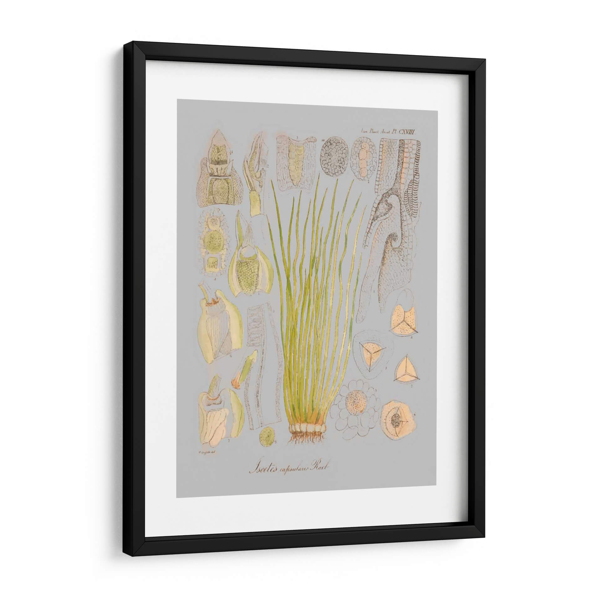 Sumérgete en la fascinante belleza de "Elementos De Mar I", una obra de arte que evoca la delicadeza y complejidad del mundo natural. Este cuadro decorativo, creado por Jennifer Goldberger, presenta un detallado estudio botánico con una paleta de colores suaves y terrosos, dominada por tonos verdes y ocres sobre un fondo grisáceo. La composición se centra en la estructura intrincada de una planta acuática, desplegando sus elementos en un diagrama científico pero estéticamente cautivador. Cada detalle, desde las raíces hasta las partes internas de la flor o espiga, está representado con una precisión que invita a la contemplación y al descubrimiento. La atmósfera que emana es de calma, aprendizaje y una conexión profunda con la naturaleza. Este tipo de arte es perfecto para espacios que buscan un toque de sofisticación orgánica, como estudios, bibliotecas, o un rincón de lectura en el hogar. Ideal para quienes aprecian la ciencia, la botánica o simplemente buscan una pieza de decoración de pared única y con carácter.