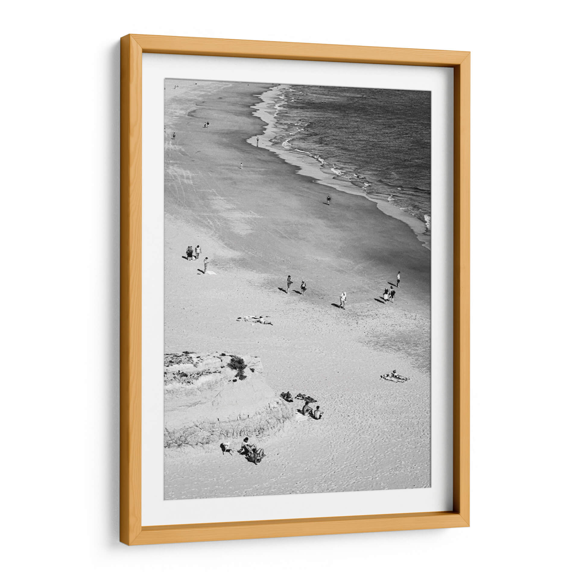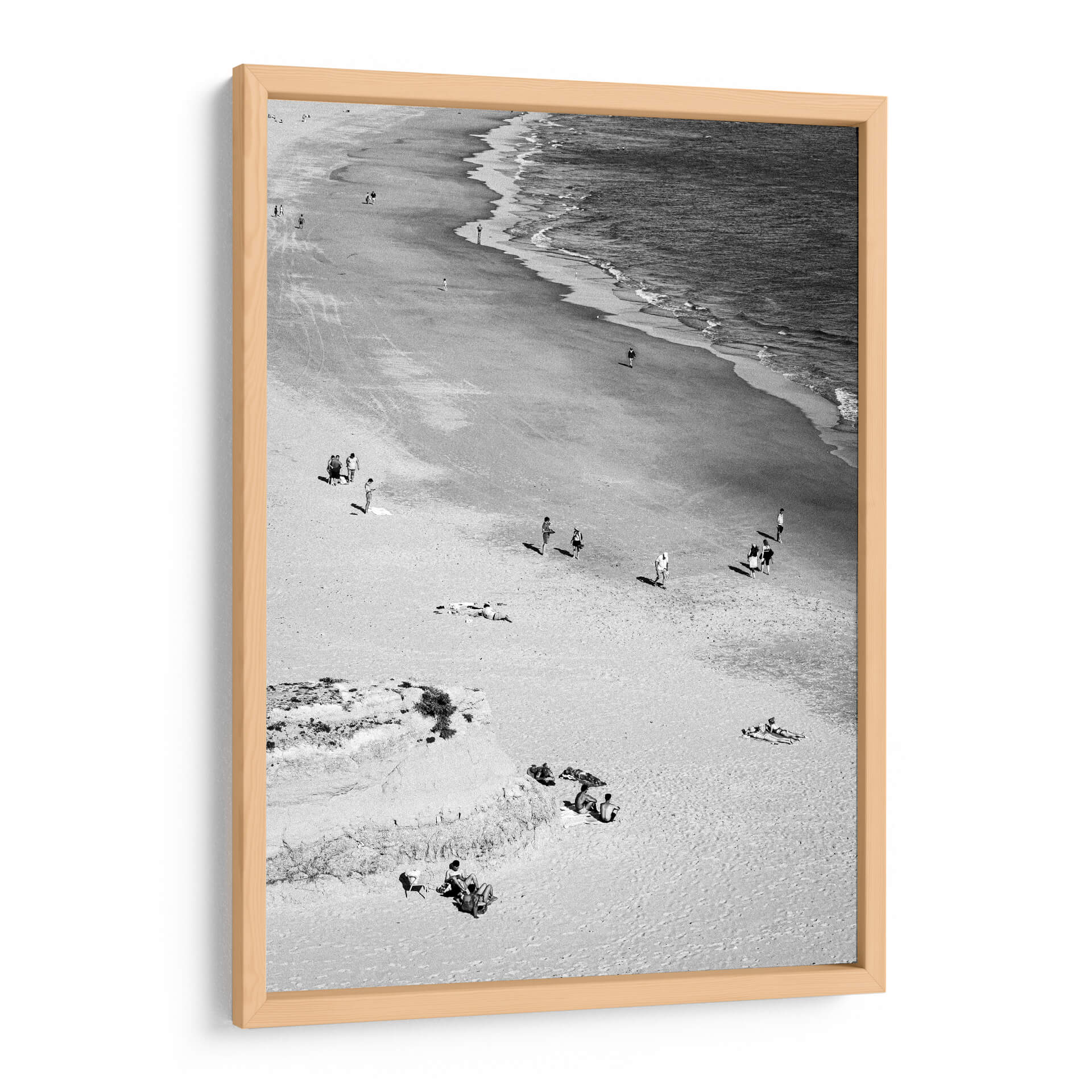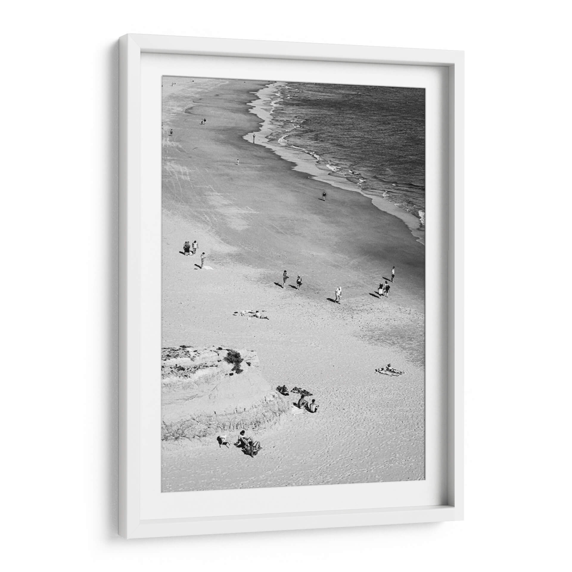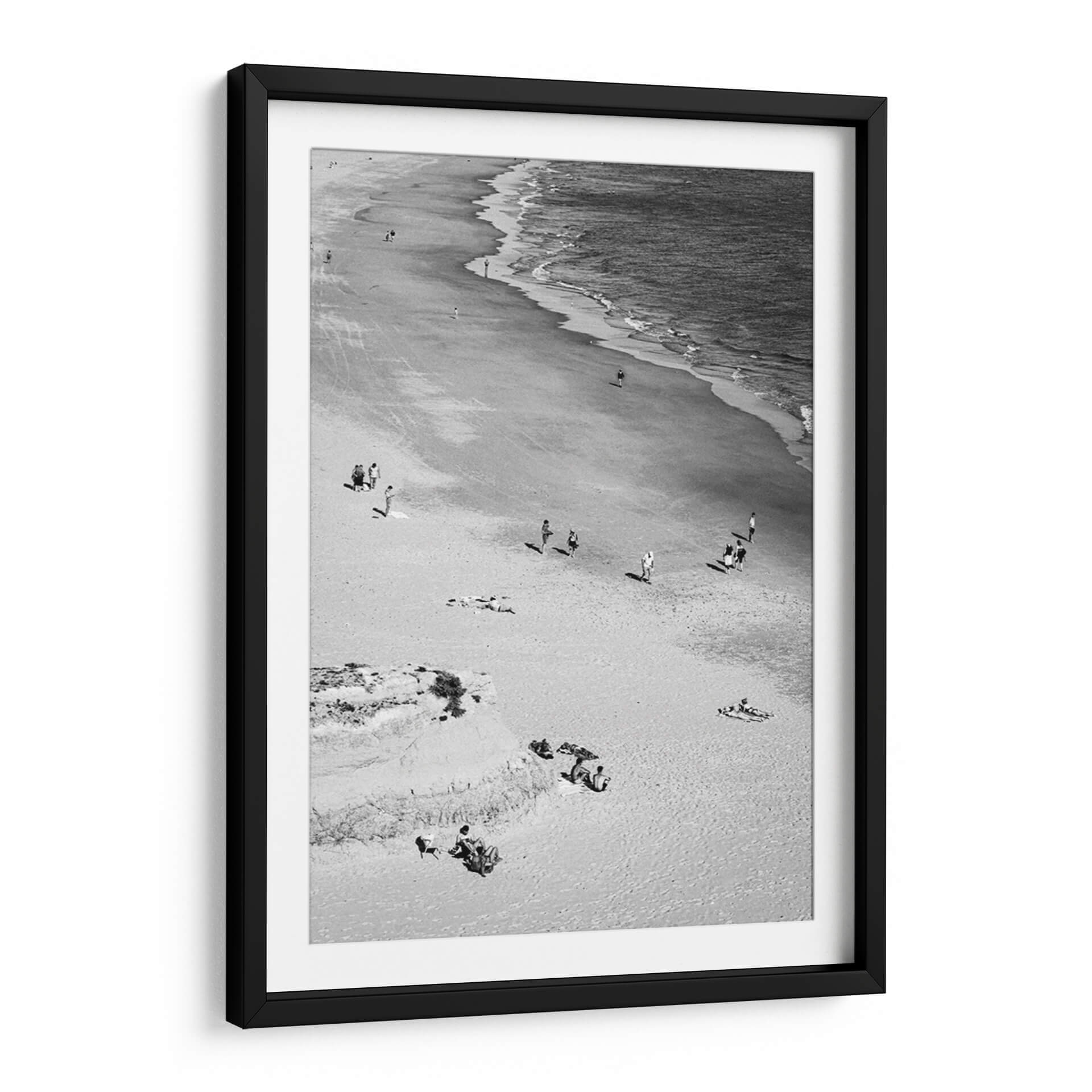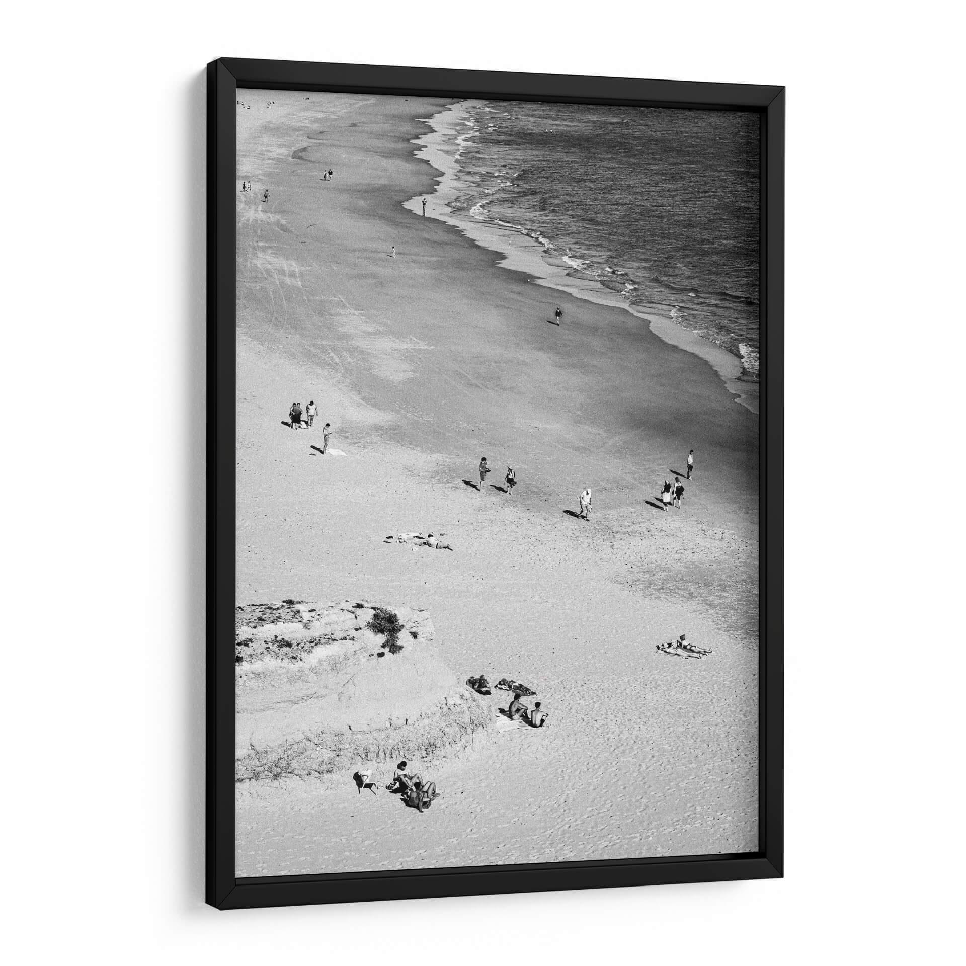 Captura la esencia serena de un día de verano con nuestro cuadro decorativo 'En la playa - Blanco y Negro'. Esta obra maestra fotográfica en blanco y negro transporta al espectador a una costa apacible, donde el mar se encuentra con la arena en un baile eterno de olas y viento. La composición, capturada desde una perspectiva elevada, revela la sutil interacción de pequeñas figuras humanas dispersas por la playa, algunas paseando, otras disfrutando del sol o relajándose sobre la arena. Los tonos monocromáticos realzan la textura del paisaje, desde la suavidad de la arena hasta el dinamismo del agua en movimiento, creando una atmósfera de tranquilidad y contemplación. Ideal para cualquier espacio que busque un toque de calma y elegancia atemporal, este cuadro decorativo en blanco y negro es perfecto para salas de estar, dormitorios o estudios, aportando una sensación de escape y paz. Añade profundidad y sofisticación a tu decoración con esta evocadora escena playera que invita a la reflexión y al descanso visual.