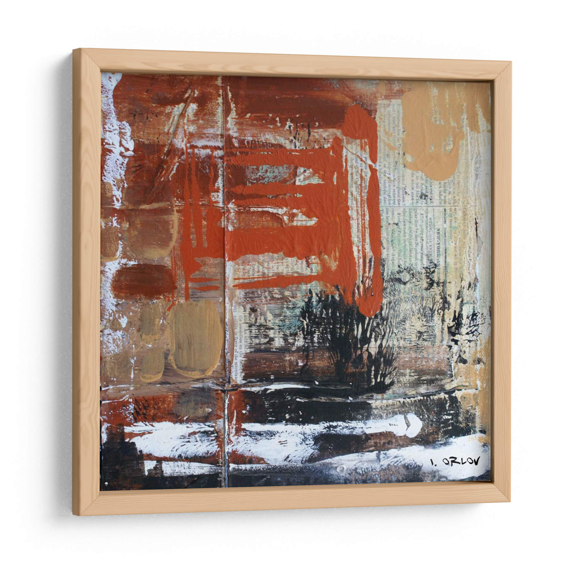 Sumérgete en la vibrante energía de "Espacio Urbano I", una obra abstracta de Irena Orlov que evoca la complejidad y el dinamismo de la vida en la ciudad. Esta pieza cautiva con su audaz paleta de colores, dominada por tonos tierra, ocres cálidos y vibrantes toques de naranja, contrastando con profundos negros y blancos puros. La técnica mixta, que incorpora texturas y elementos que recuerdan a collages de periódico, añade una profundidad intrigante y un carácter único. Las pinceladas enérgicas y la composición fragmentada sugieren un paisaje urbano en constante movimiento, lleno de historias y posibilidades. "Espacio Urbano I" es ideal para infundir carácter y sofisticación en cualquier estancia, desde una sala de estar moderna hasta un estudio creativo u oficina, transformándola en un punto focal que inspira conversación y reflexión. Su naturaleza abstracta permite una interpretación personal, resonando con aquellos que aprecian el arte contemporáneo que desafía lo convencional y estimula los sentidos. Permite que esta obra aporte una dosis de arte moderno y audacia a tu decoración, creando un ambiente lleno de personalidad y estilo.