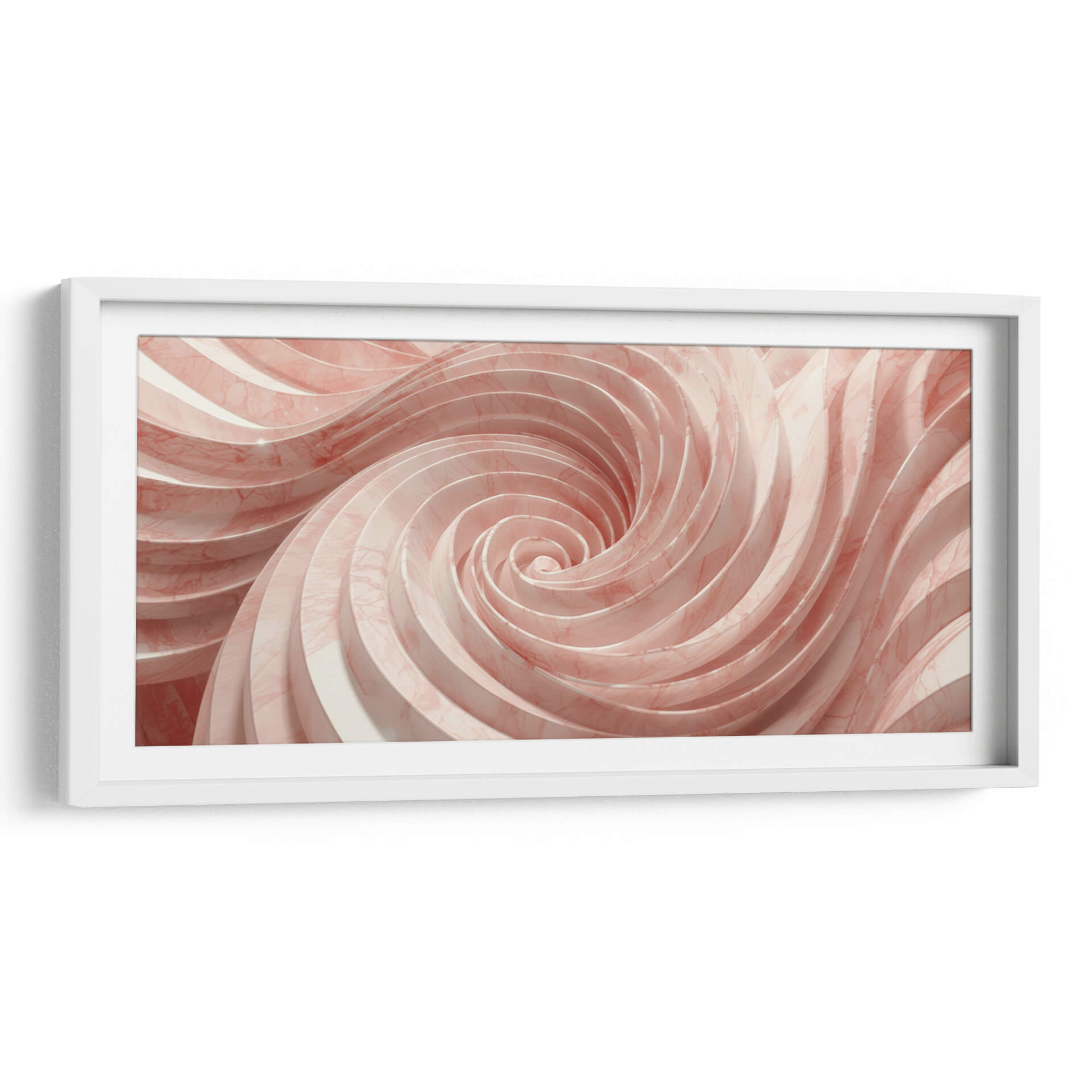 Sumérgete en el hipnótico vórtice de "Espirales de la Mente - 20", una obra de arte contemporáneo que cautiva con su dinámica tridimensional y su delicada paleta de colores. Este cuadro decorativo abstracto presenta una serie de espirales concéntricas que parecen girar hacia un centro enigmático, creando una sensación de movimiento perpetuo y profundidad infinita. La superficie, con vetas que evocan el mármol rosado y blanco, añade una textura sutil y un toque de elegancia sofisticada. Los tonos pastel, predominantemente rosas suaves y blancos cremosos, infunden una atmósfera de calma y serenidad, contrastando sutilmente con la energía del movimiento espiral. El estilo es decididamente abstracto y moderno, perfecto para quienes buscan añadir un toque de originalidad y un punto focal intrigante a su decoración. Ideal para salones, dormitorios o estudios, este cuadro decorativo invita a la contemplación y a la introspección, transformando cualquier espacio en una galería personal. Su diseño versátil se adapta a interiores contemporáneos, minimalistas o incluso eclécticos, aportando un elemento de sorpresa visual y una sensación de flujo orgánico. "Espirales de la Mente - 20" no es solo una pieza decorativa, es una invitación a explorar las profundidades de la creatividad y la percepción.