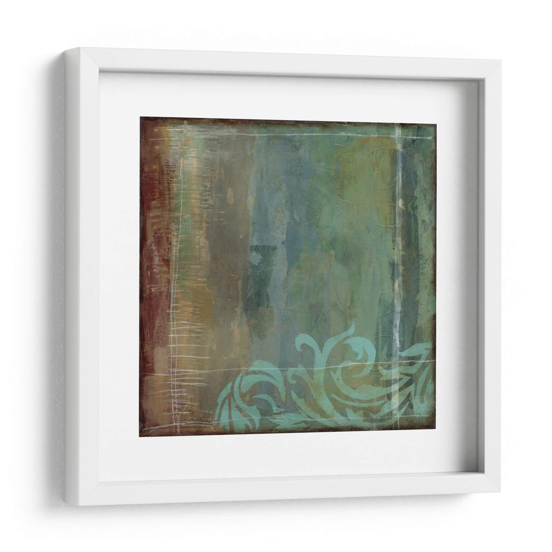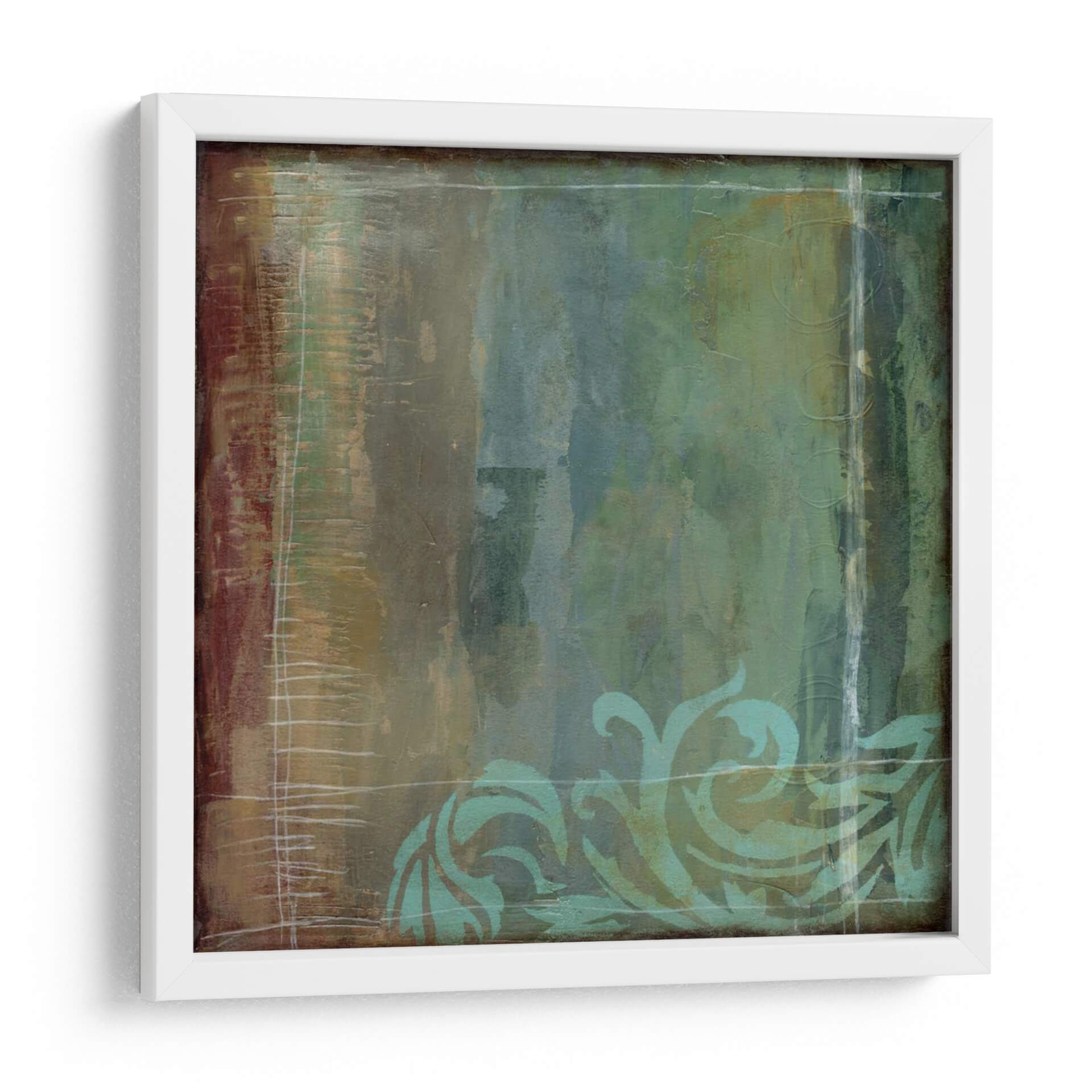 Sumérgete en la elegancia orgánica de "Exuberante Filigrana Iv", una cautivadora obra de arte que combina texturas ricas y una paleta de colores terrosos y acuáticos. La pieza presenta un fondo abstracto con pinceladas verticales y horizontales que evocan profundidad y movimiento, mientras que en la parte inferior, delicados motivos de filigrana en un tono verde azulado vibrante añaden un toque de sofisticación y encanto natural. La atmósfera general es serena pero intrigante, invitando a la contemplación. Las sutiles líneas blancas que cruzan la composición aportan un elemento de estructura y contraste, creando un equilibrio visual armonioso. Este cuadro decorativo es perfecto para añadir un toque de refinamiento y personalidad a cualquier espacio, ya sea una sala de estar moderna, un comedor acogedor o una oficina que busque inspiración. "Exuberante Filigrana Iv" es ideal para quienes aprecian el arte contemporáneo con un toque clásico y buscan piezas que aporten calma y belleza a su entorno. Transforma tu hogar en una galería personal con esta exquisita pieza de Jennifer Goldberger.