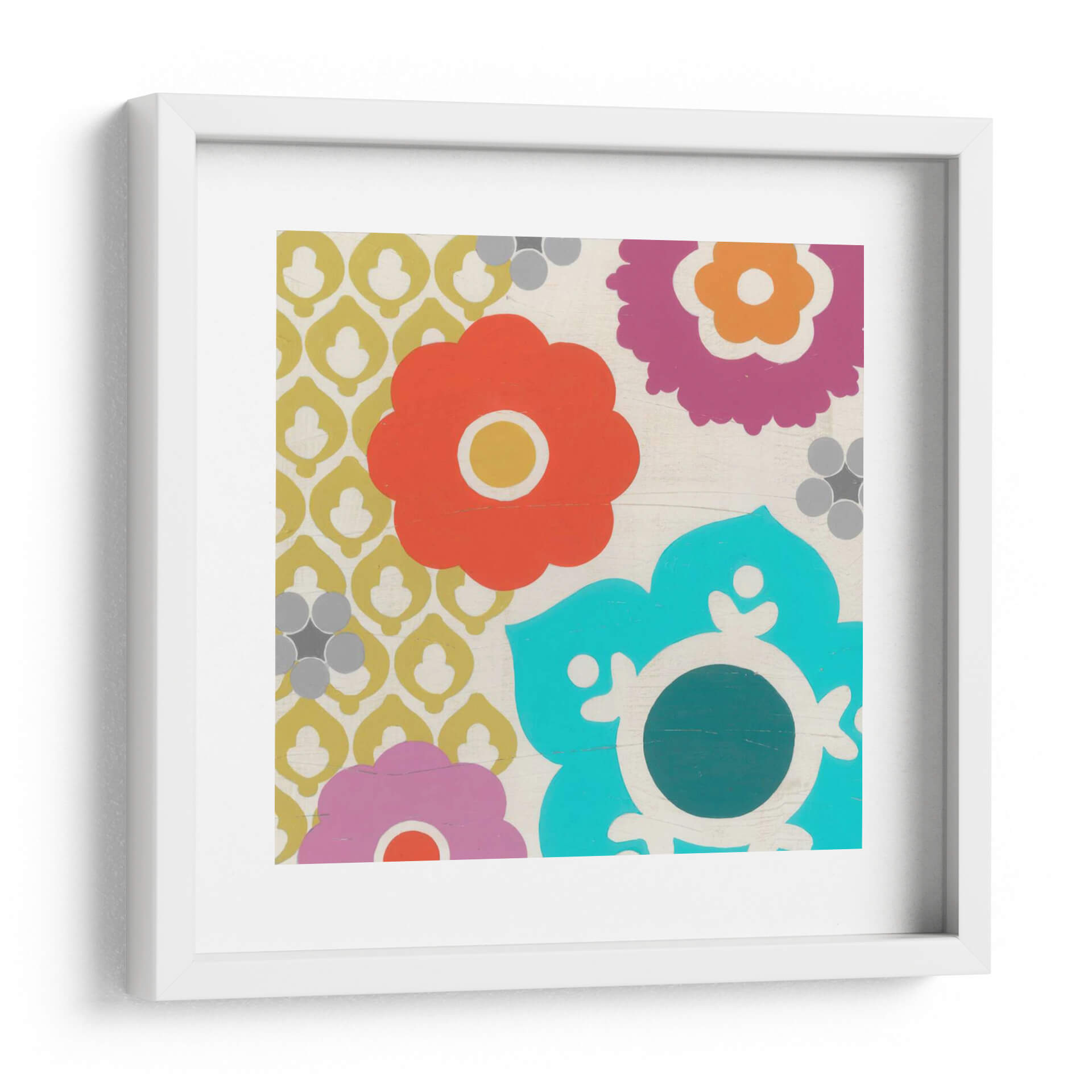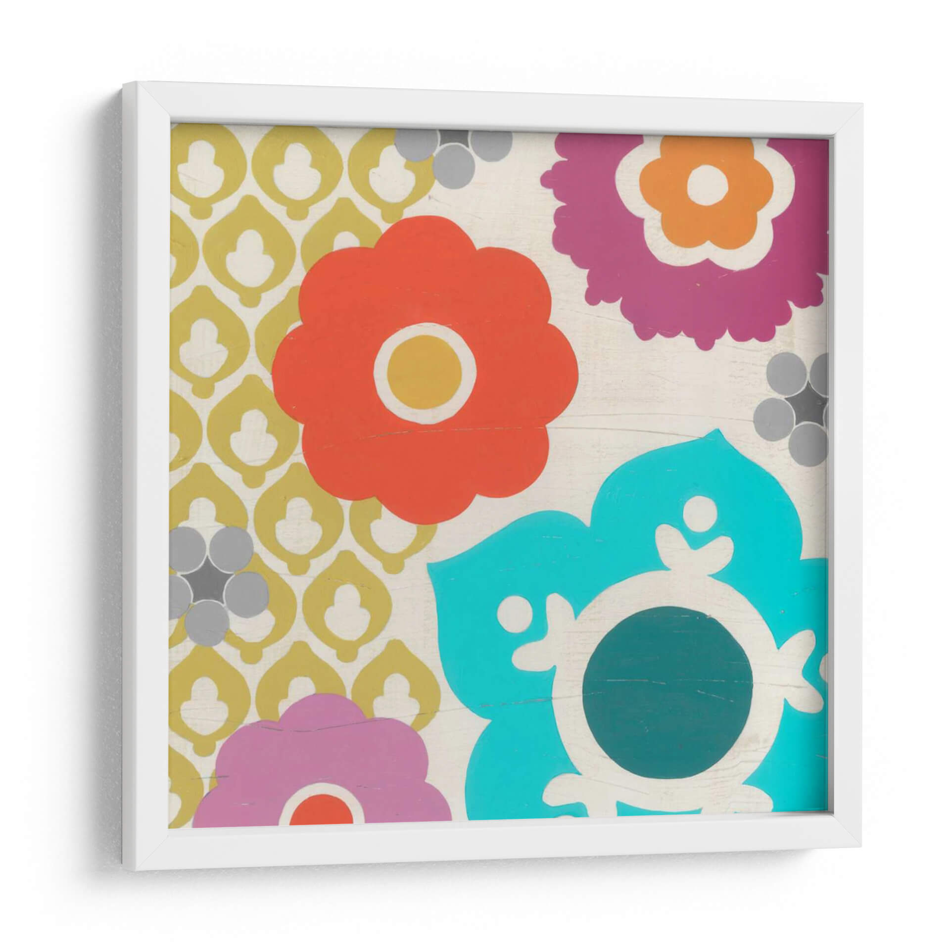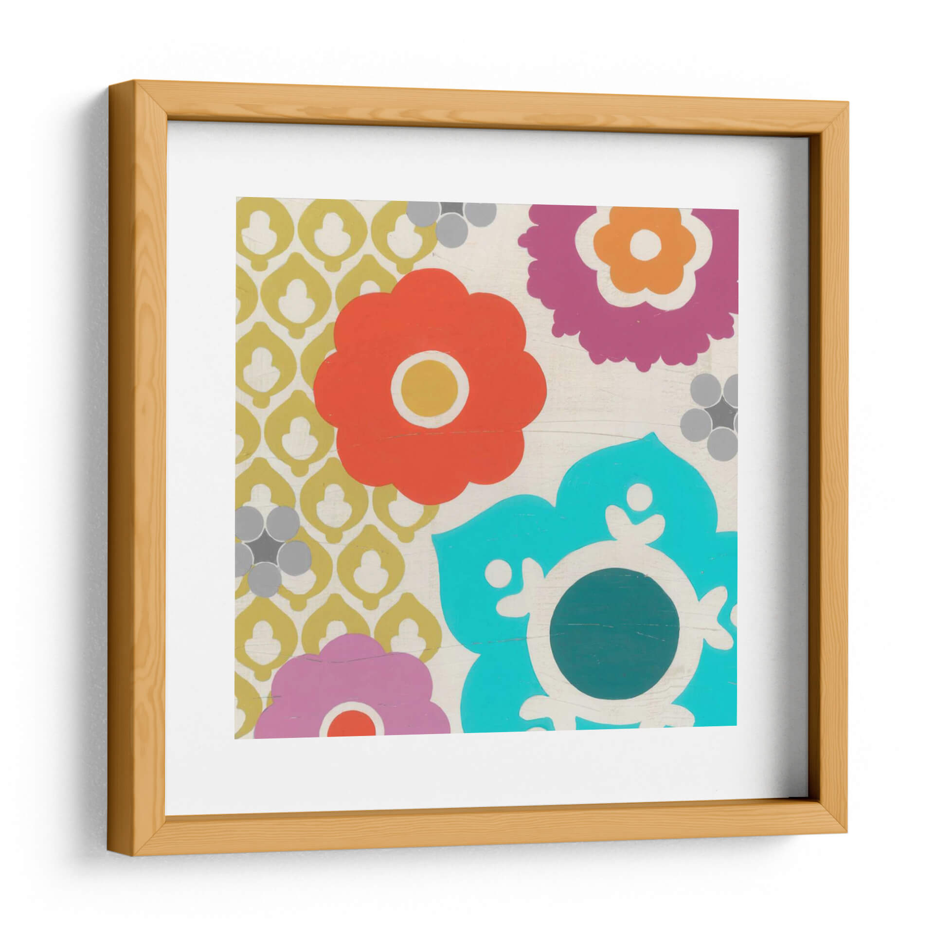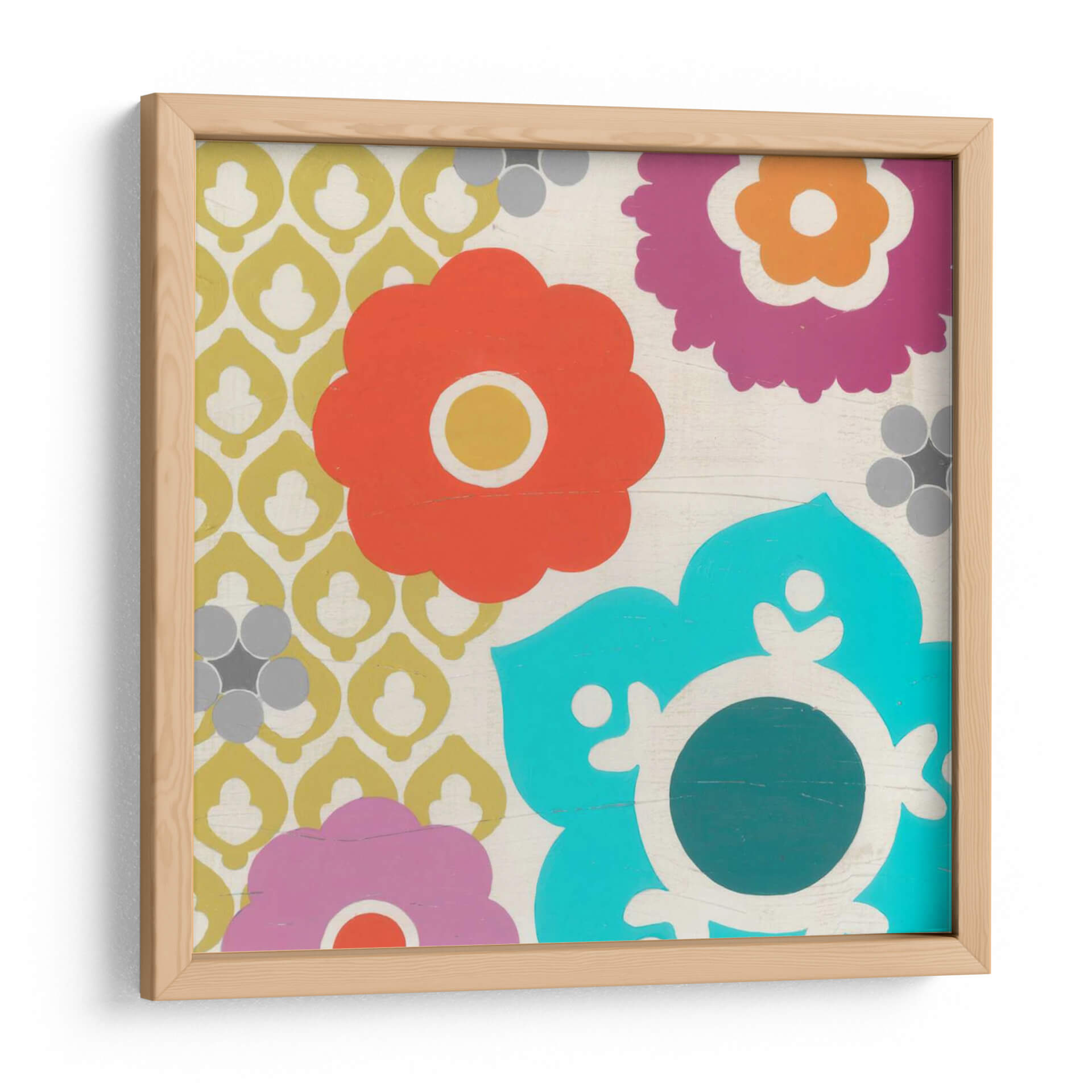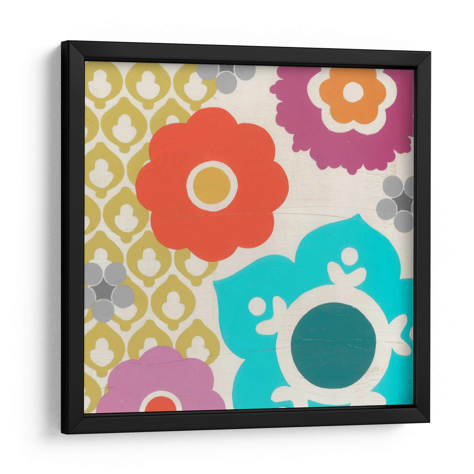 Inyecta vitalidad y un toque moderno a tu hogar con el cuadro decorativo "Flores De Caramelo III" de June Erica Vess. Esta obra cautivadora presenta un vibrante despliegue de formas florales estilizadas, ejecutadas con una paleta de colores audaz y juguetona que incluye naranjas intensos, rosas fucsias, turquesas eléctricos y toques de amarillo mostaza y gris sutil. La composición se equilibra magistralmente entre un patrón de fondo geométrico y formas orgánicas de flores, creando una dinámica visual única que atrae la mirada. El estilo, reminiscente del arte pop o del diseño gráfico contemporáneo, aporta una energía contemporánea y optimista. Ideal para espacios que buscan un acento de color y personalidad, este cuadro decorativo es perfecto para salas de estar modernas, comedores o incluso oficinas que desean infundir alegría y un aire artístico. Su diseño permite integrarse en decoraciones eclécticas o minimalistas, aportando siempre un punto focal distintivo. Descubre cómo "Flores De Caramelo III" puede transformar tu ambiente, añadiendo carácter y una explosión de color que celebra la belleza de la naturaleza a través de una lente artística contemporánea. Una pieza que no solo decora, sino que inspira y evoca sensaciones de felicidad y frescura.