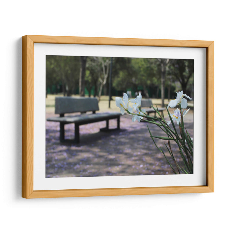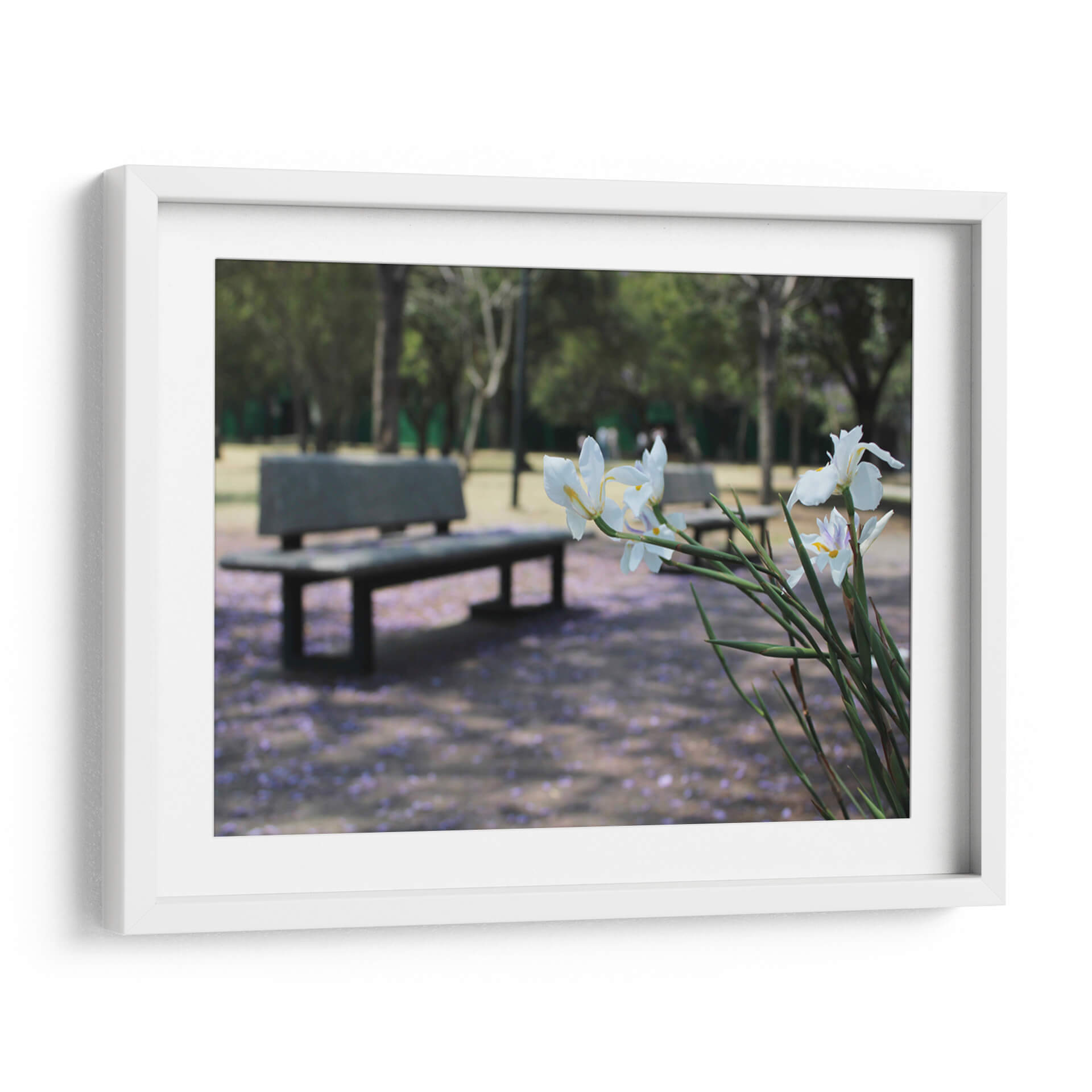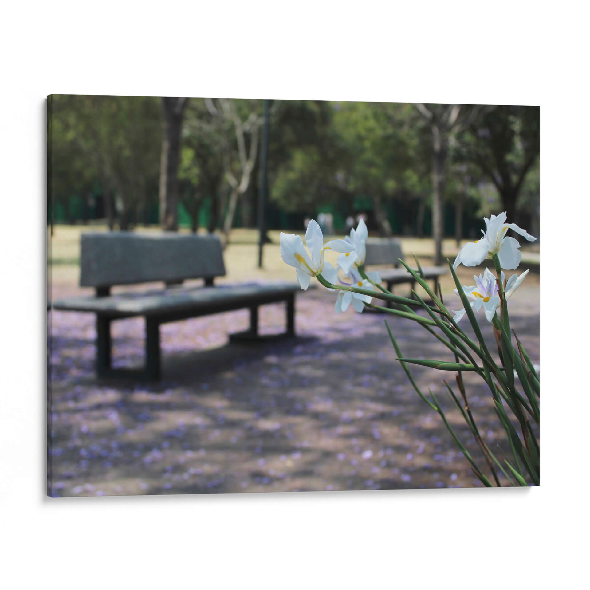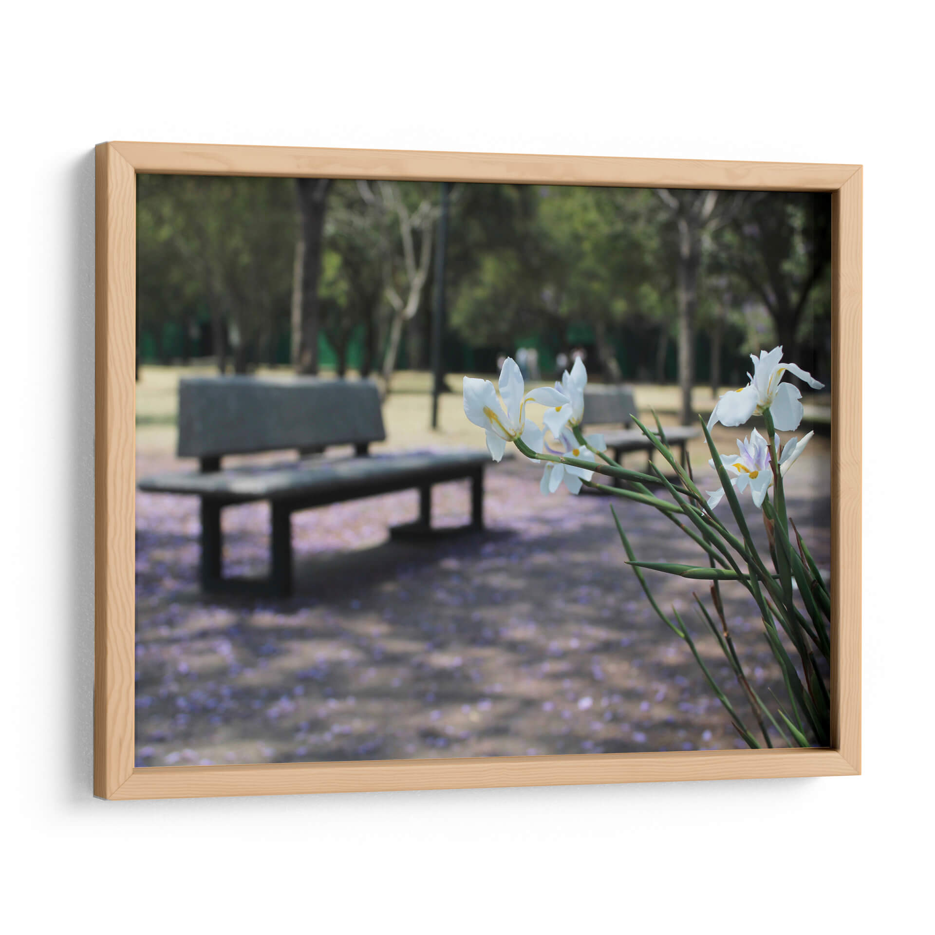 Capta la serenidad y el encanto de un día en el parque con "Flores y jacarandas en Chapultepec, CDMX", una obra de arte que evoca la belleza efímera de la naturaleza en un entorno urbano. Este cuadro decorativo presenta un enfoque delicado en unas flores blancas vibrantes, cuyos pétalos parecen danzar con la brisa, contrastando sutilmente con los tonos verdes de sus tallos y hojas. Al fondo, se vislumbran bancos de concreto en un parque, salpicado por el característico tono violeta de las jacarandas caídas, creando una atmósfera de tranquilidad y contemplación. La composición, con un ligero desenfoque en el fondo, dirige la mirada del espectador hacia la frescura y pureza de las flores en primer plano, invitando a un momento de pausa y apreciación. Ideal para añadir un toque de calma y color natural a tu hogar u oficina, este cuadro decorativo es perfecto para quienes buscan conectar con la naturaleza y evocar recuerdos de paseos al aire libre. Su estilo fotográfico y su paleta de colores suaves pero definidos, lo convierten en una pieza versátil que aportará serenidad y un aire de sofisticación a cualquier espacio.