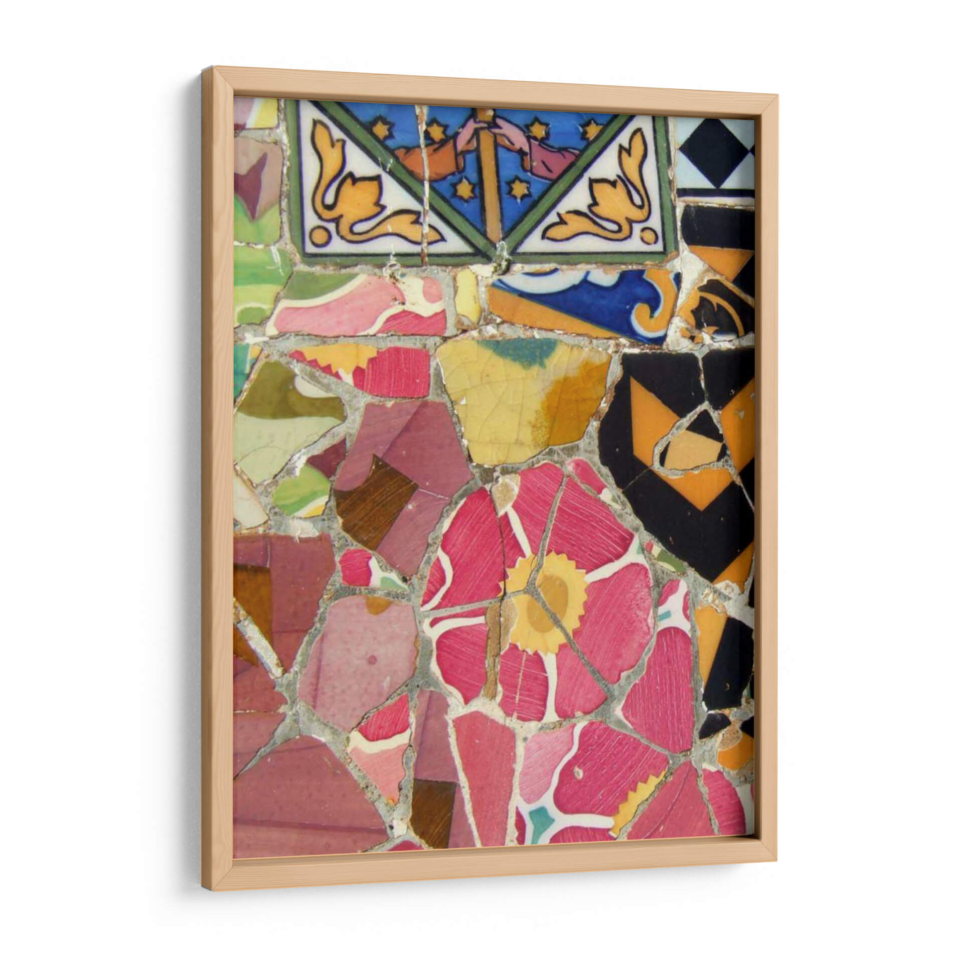 Sumérgete en la vibrante y detallada obra 'Fragmentos De Mosaico III' de Vision Studio, una pieza que celebra la belleza de la fragmentación y la reconstrucción. Este cuadro decorativo captura la esencia de un mosaico de azulejos rotos, donde cada fragmento, de forma irregular y texturizada, contribuye a una composición general armoniosa y llena de color. La paleta de colores es rica y variada, predominando los tonos rosados, amarillos, verdes y azules, con toques de negro y naranja que aportan contraste y profundidad. Observamos patrones geométricos y florales que se entrelazan, evocando una sensación de arte tradicional revisitado con una sensibilidad contemporánea. La técnica, que simula la trencadís o mosaico de cerámica rota, es ejecutada con maestría, creando una textura visual que invita a la contemplación. Esta obra es ideal para añadir un toque de color y carácter a cualquier espacio, ya sea una sala de estar moderna, un comedor acogedor o un estudio creativo. 'Fragmentos De Mosaico III' no es solo una decoración de pared, sino una ventana a la complejidad y la belleza que reside en lo imperfecto, transformando lo fragmentado en una obra de arte cohesiva y cautivadora que inspira y embellece tu hogar.