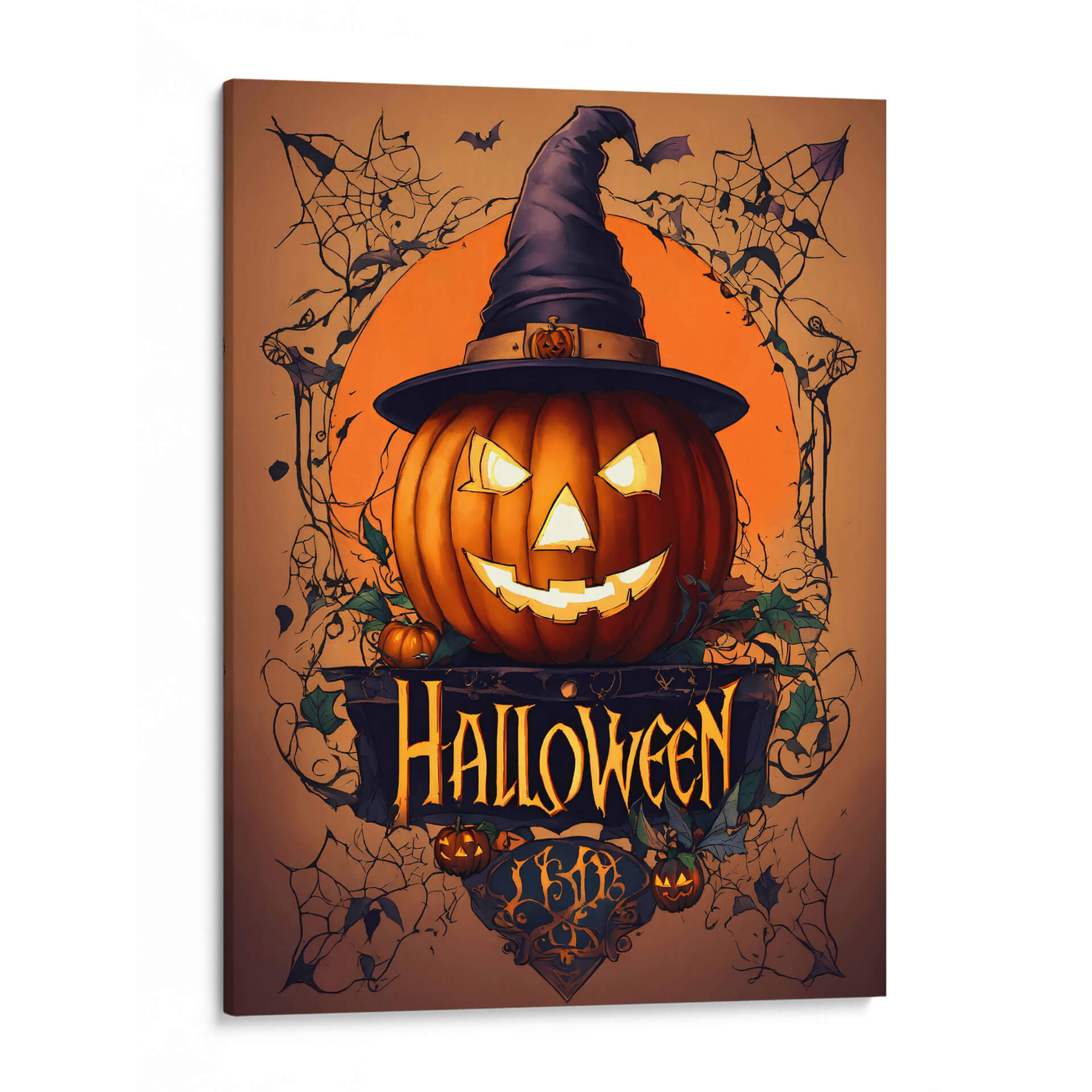 Sumérgete en el espíritu festivo de Halloween con este cautivador cuadro decorativo, una pieza de arte digital que captura la esencia mística y juguetona de la temporada. La obra presenta una calabaza de Halloween icónica, adornada con un sombrero de bruja morado y una expresión traviesa que irradia una energía espeluznante pero amigable. Detrás, una luna anaranjada ilumina una escena adornada con telarañas intrincadas y murciélagos revoloteando, creando una atmósfera de misterio y anticipación. La paleta de colores cálidos, dominada por naranjas, marrones y toques de negro y morado, evoca la estética otoñal y la magia de la noche de brujas. El estilo artístico, que combina elementos de ilustración digital con un aire esotérico, añade profundidad y carácter a la composición. Este cuadro es ideal para quienes buscan añadir un toque de diversión temática y un punto focal intrigante a su decoración de otoño, perfecto para salones, entradas o incluso para espacios de entretenimiento. Transforma tu hogar en un escenario encantado con esta obra única que celebra la festividad de manera artística y memorable, invitando a la conversación y al espíritu de la temporada.