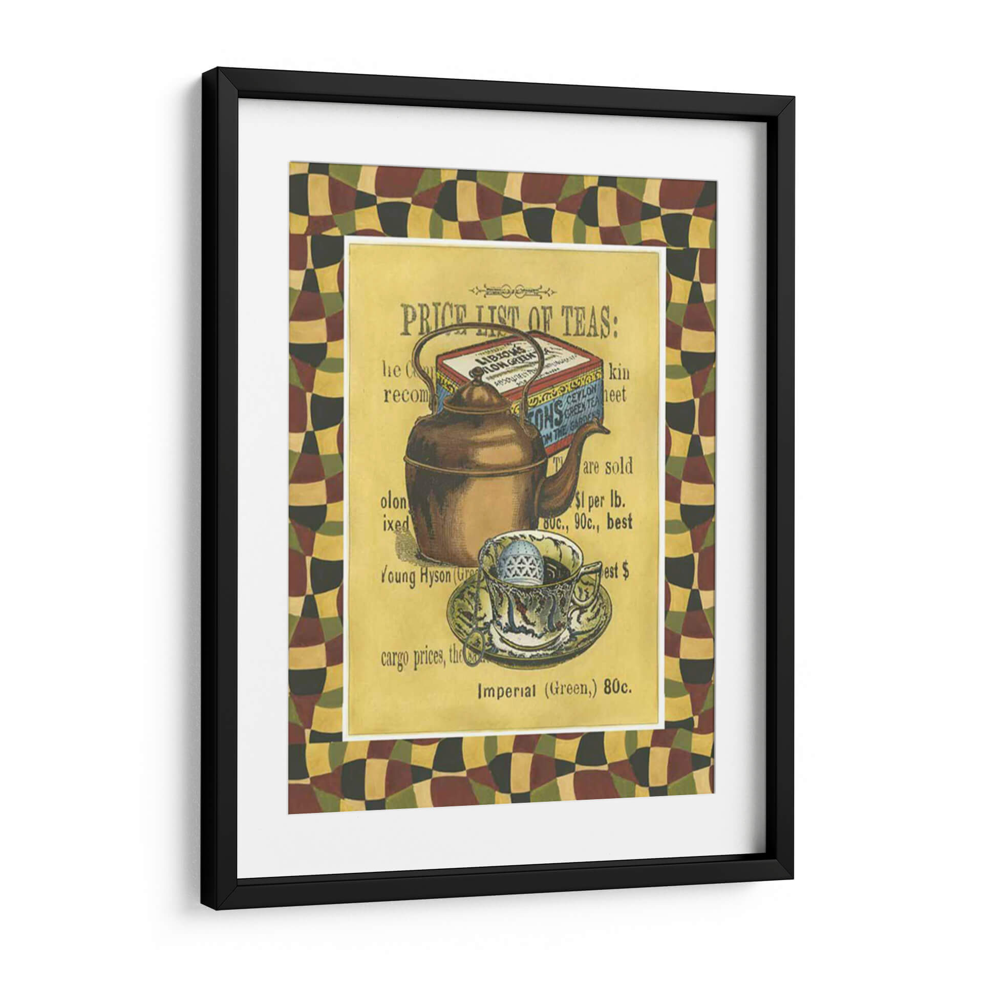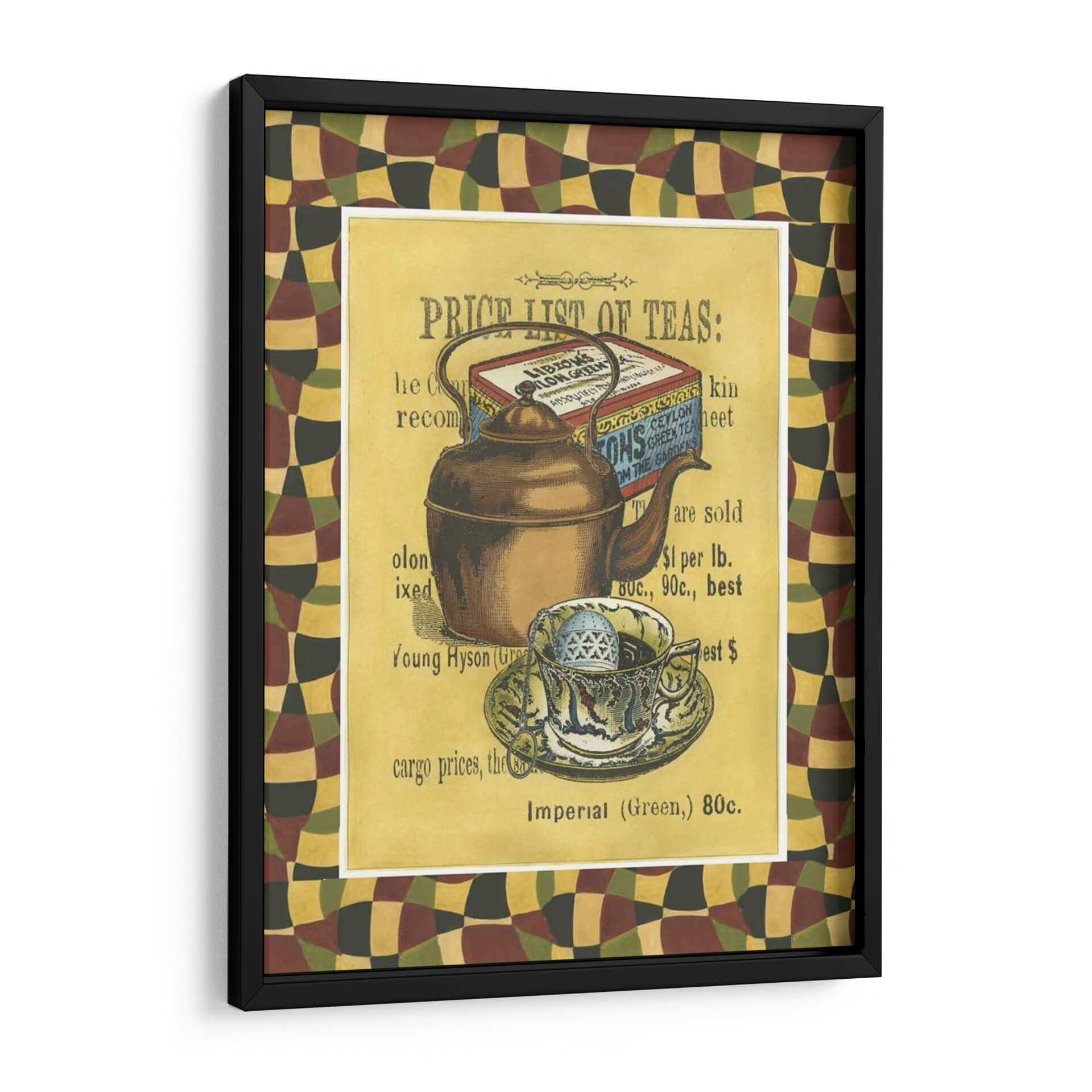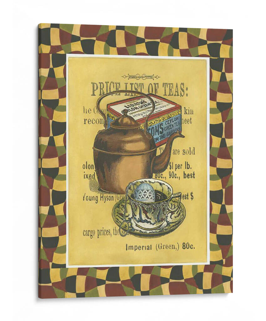 Sumérgete en la nostalgia y el encanto de "Hojas de Té", un cuadro decorativo que evoca la calidez de una ceremonia del té. Esta obra de arte presenta una tetera de cobre vintage junto a una delicada taza de té decorada, todo sobre un fondo que simula una lista de precios de tés antiguos. La paleta de colores, dominada por tonos tierra, ocres y sutiles toques de verde y burdeos en el borde, crea una atmósfera acogedora y rústica. El estilo, que combina elementos de collage y tipografía vintage, le confiere un aire de autenticidad y atemporalidad. Es la pieza perfecta para añadir un toque de sofisticación y calidez a tu cocina, comedor u oficina, evocando momentos de tranquilidad y disfrute. Este cuadro decorativo es ideal para aquellos que aprecian los detalles finos y buscan infundir a su hogar un sentimiento de confort y tradición.