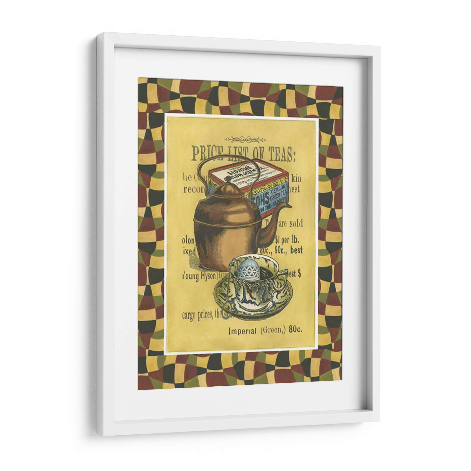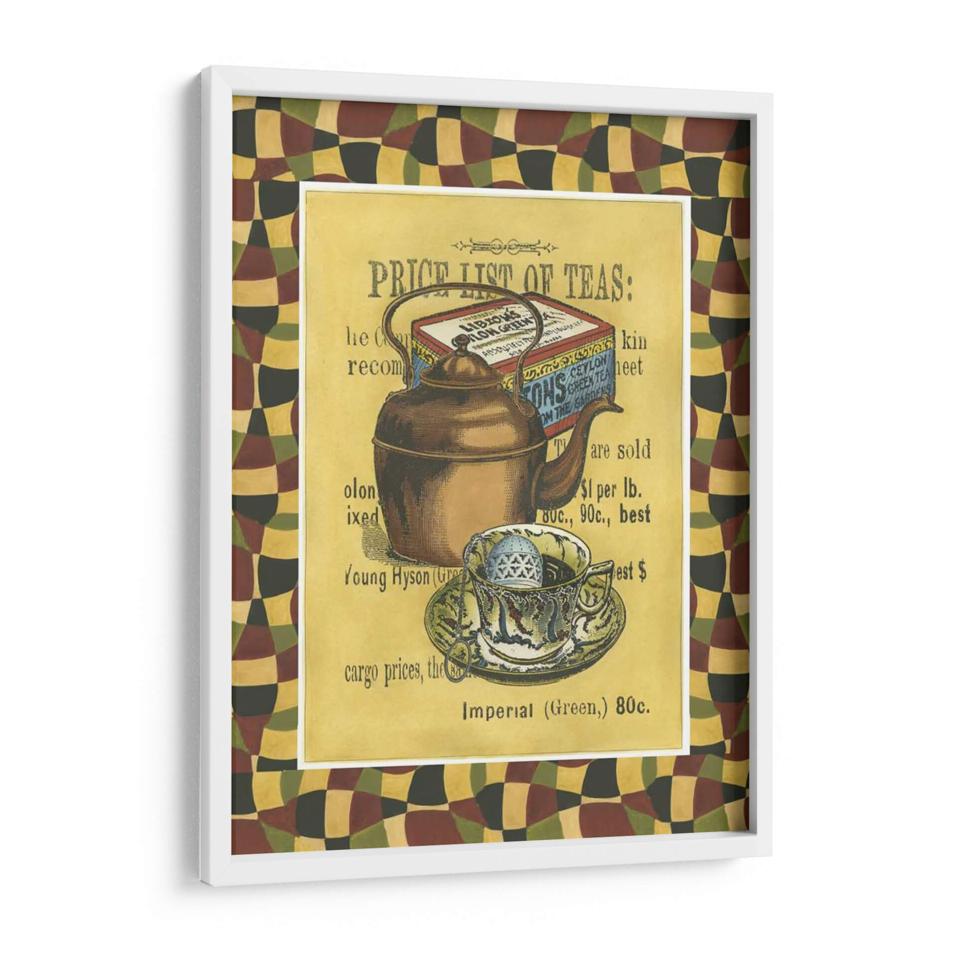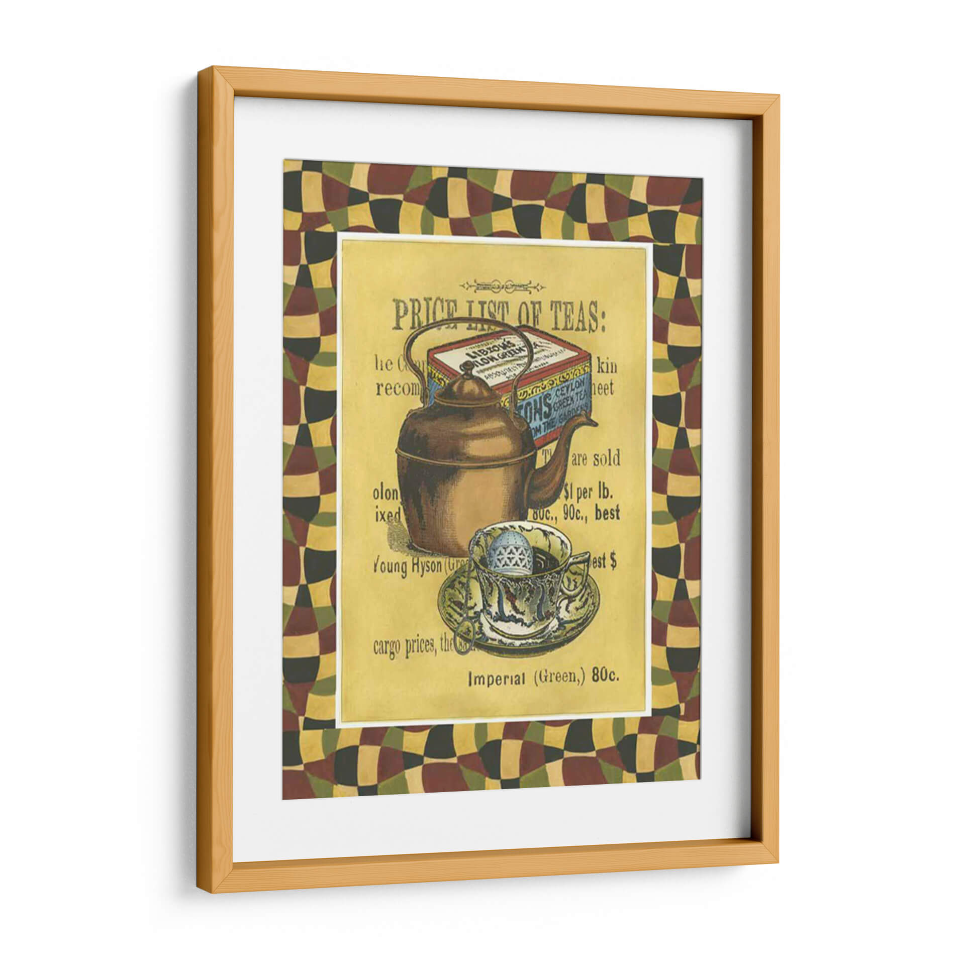 Sumérgete en la nostalgia y el encanto de "Hojas de Té", un cuadro decorativo que evoca la calidez de una ceremonia del té. Esta obra de arte presenta una tetera de cobre vintage junto a una delicada taza de té decorada, todo sobre un fondo que simula una lista de precios de tés antiguos. La paleta de colores, dominada por tonos tierra, ocres y sutiles toques de verde y burdeos en el borde, crea una atmósfera acogedora y rústica. El estilo, que combina elementos de collage y tipografía vintage, le confiere un aire de autenticidad y atemporalidad. Es la pieza perfecta para añadir un toque de sofisticación y calidez a tu cocina, comedor u oficina, evocando momentos de tranquilidad y disfrute. Este cuadro decorativo es ideal para aquellos que aprecian los detalles finos y buscan infundir a su hogar un sentimiento de confort y tradición.