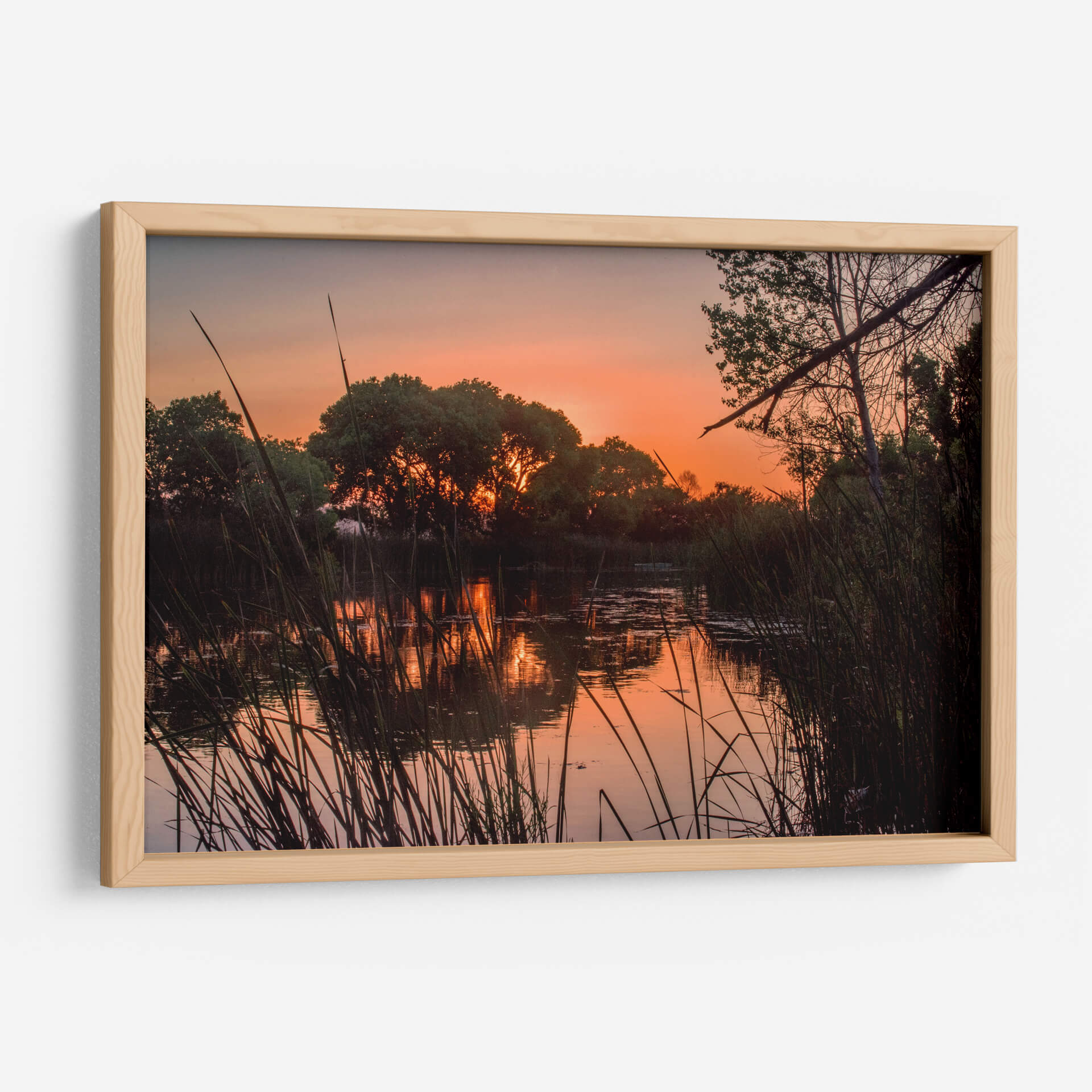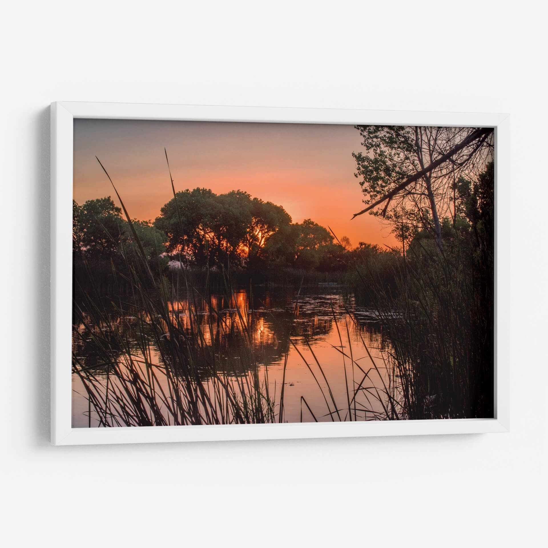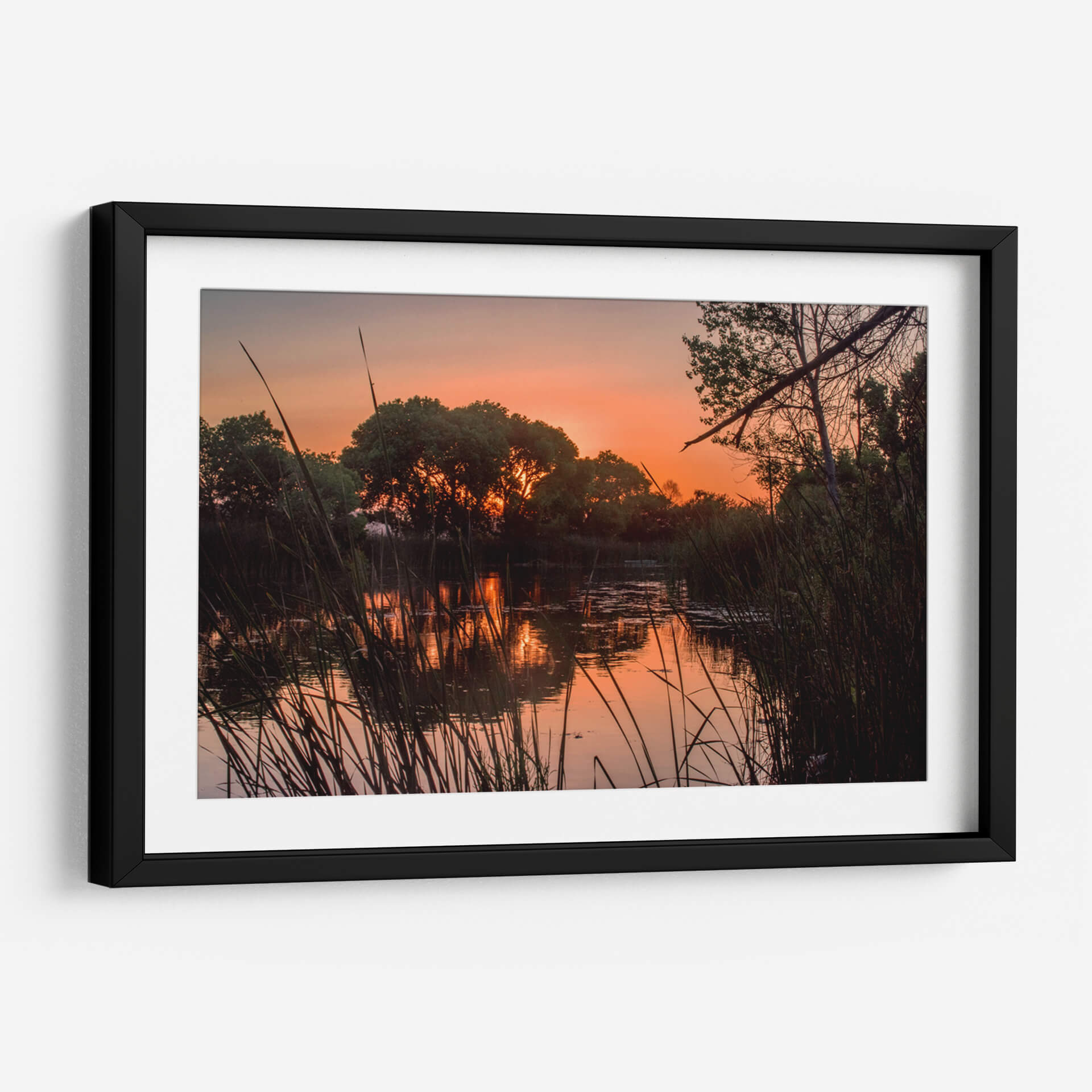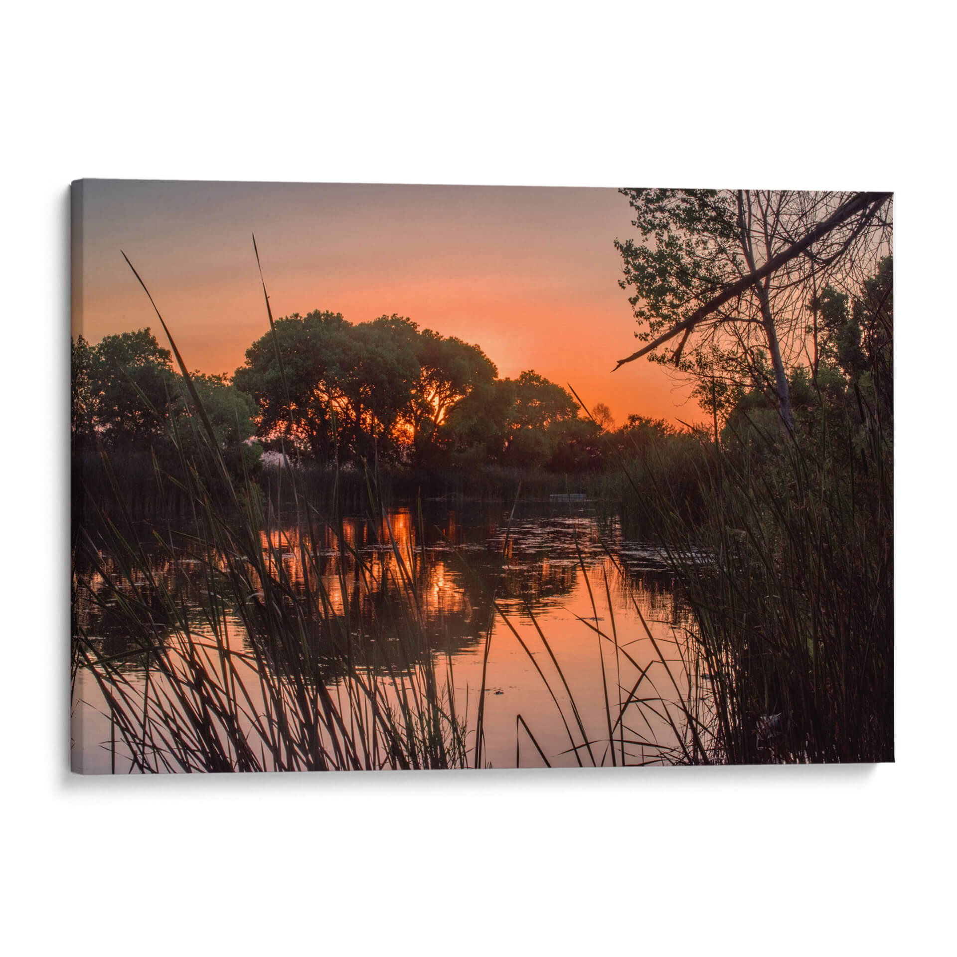 Captura la serenidad y el cálido abrazo del atardecer con nuestro exclusivo cuadro decorativo 'Hora Dorada en el Lago', una obra maestra del artista Alvaro Martinz. Esta pieza evoca la magia de los últimos rayos de sol filtrándose a través de frondosos árboles, reflejándose en las tranquilas aguas de un lago sereno. La paleta de colores se centra en tonos anaranjados, dorados y cálidos crepúsculos, creando una atmósfera de paz y contemplación. Las cañas altas en primer plano añaden profundidad y textura, enmarcando la escena con un toque natural y orgánico. La composición simétrica del reflejo en el agua, junto con la silueta de los árboles contra el cielo vibrante, genera una sensación de armonía y equilibrio. Este cuadro decorativo es perfecto para transformar cualquier espacio en un santuario de calma. Imagina este lienzo aportando una calidez envolvente a tu sala de estar, un punto focal de tranquilidad en tu oficina o un susurro de naturaleza en tu dormitorio. Es una invitación a detenerse, respirar y disfrutar de la belleza efímera de un atardecer perfecto. Añade 'Hora Dorada en el Lago' a tu colección y deja que su luz dorada ilumine tus días.