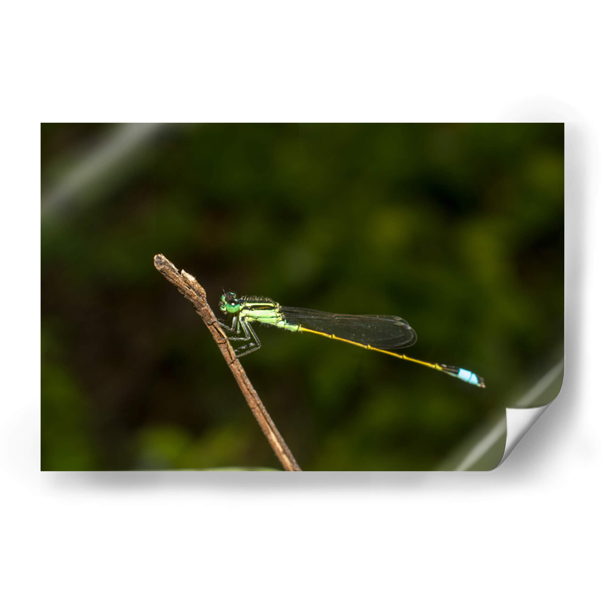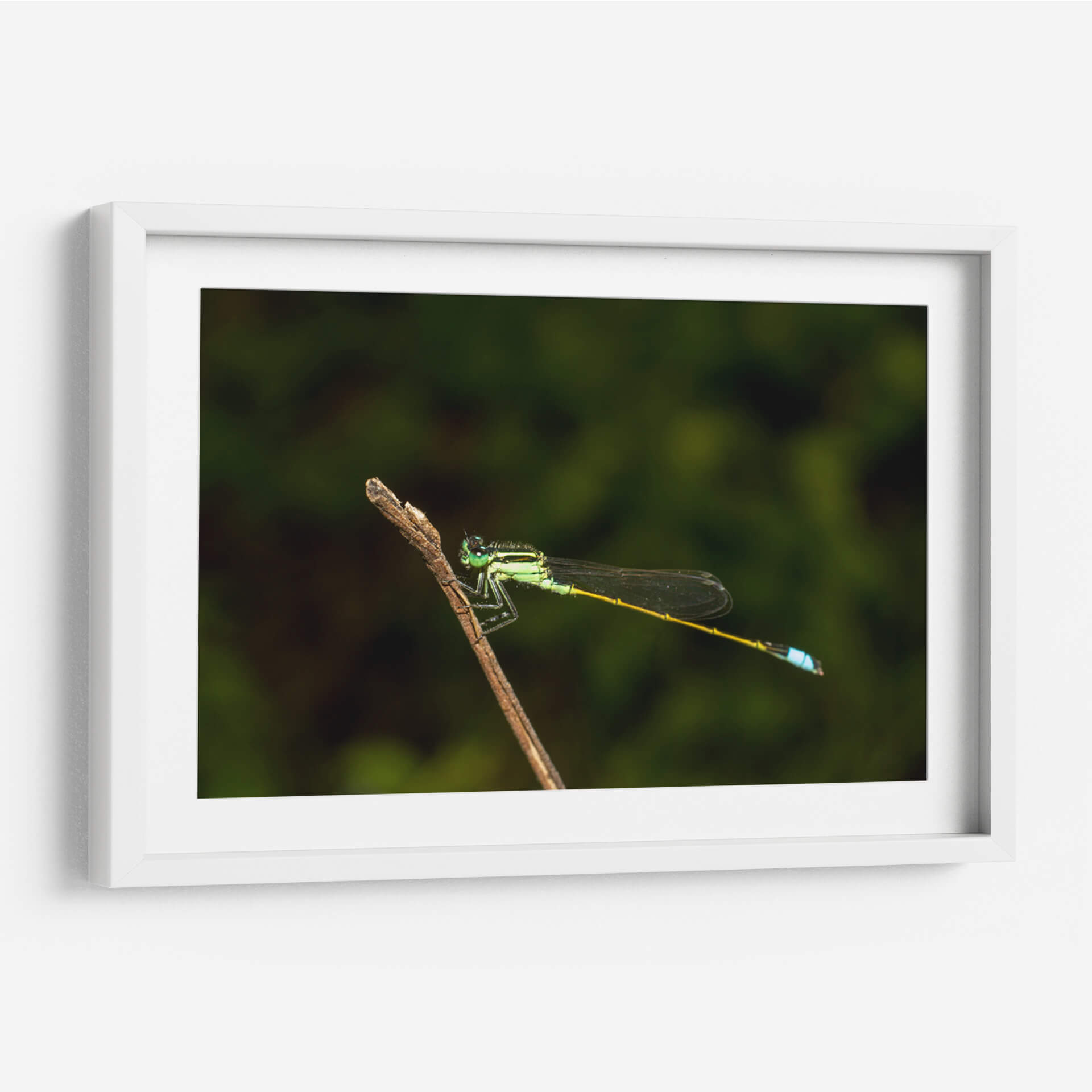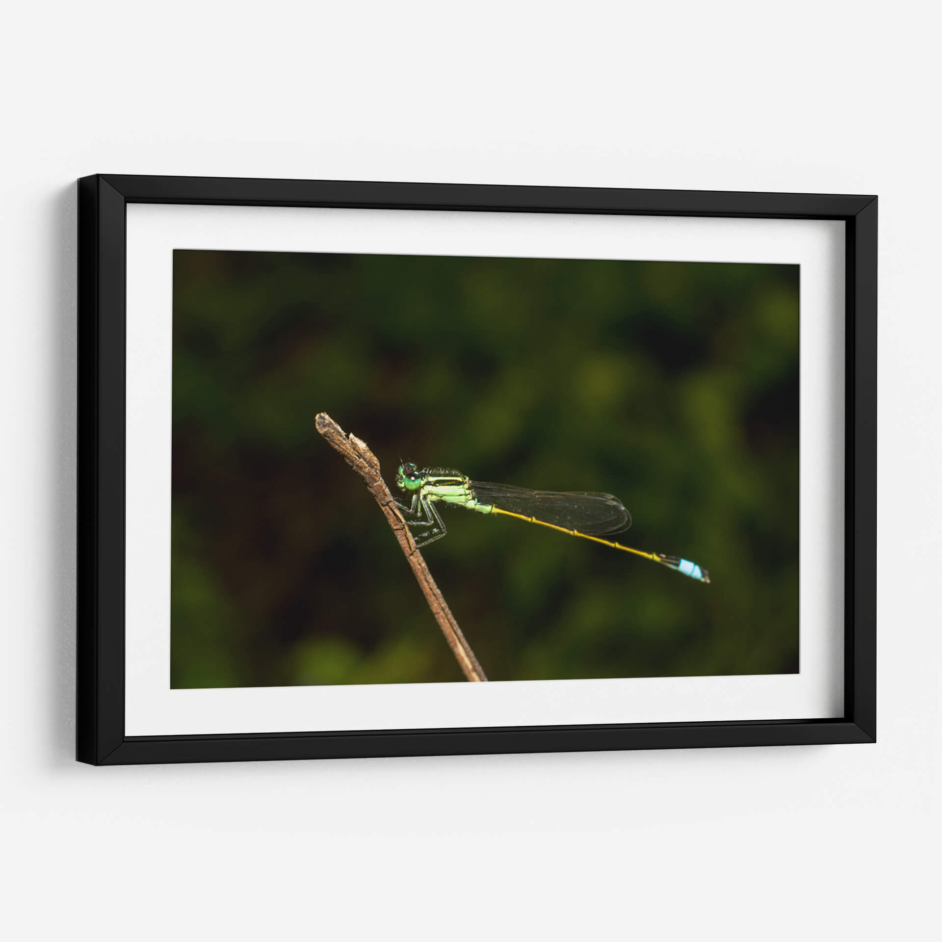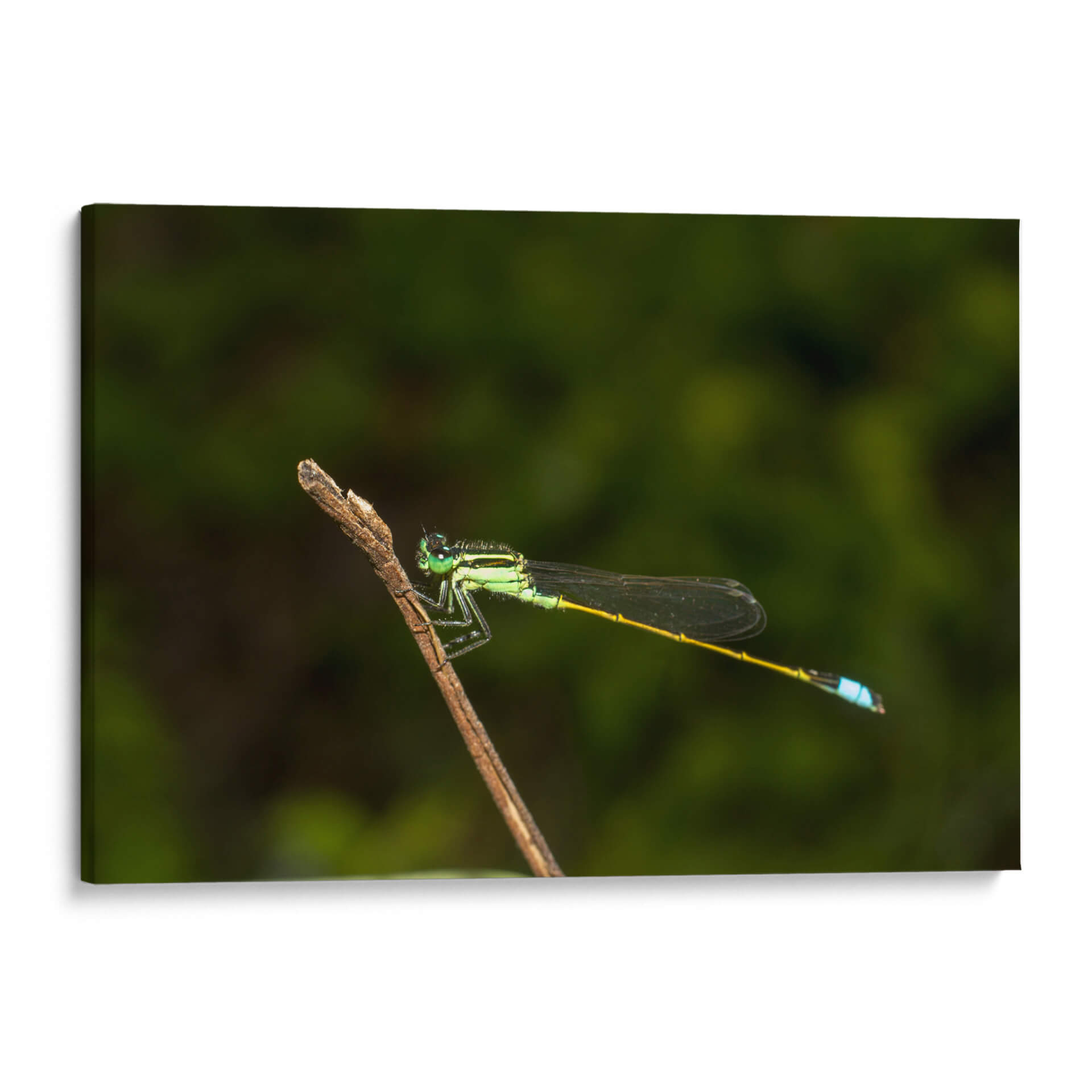 Captura la esencia de la naturaleza con este exquisito cuadro decorativo que presenta una libélula posada delicadamente sobre una rama. La obra destaca por su impresionante nivel de detalle, resaltando la vibrante tonalidad verde esmeralda del cuerpo del insecto, sus delicadas alas translúcidas y el toque de azul eléctrico en su abdomen, creando un contraste fascinante contra el fondo oscuro y desenfocado. La composición centra la atención en la maravilla biológica, invitando a la contemplación de la belleza intrínseca del mundo natural. Este cuadro abstracto moderno, aunque inspirado en la realidad, evoca una sensación de calma, serenidad y asombro ante las pequeñas maravillas que nos rodean. Su paleta de colores, dominada por verdes profundos y acentos brillantes, lo convierte en una pieza versátil, ideal para añadir un toque de vida y sofisticación a cualquier espacio. Perfecto para salones, dormitorios u oficinas, este cuadro decorativo es una ventana a la tranquilidad y la elegancia de la fauna. Transforma tu hogar en un santuario de paz y belleza natural con esta impactante obra de arte que celebra la delicadeza y el detalle del mundo insecto, aportando una atmósfera de conexión con la naturaleza.