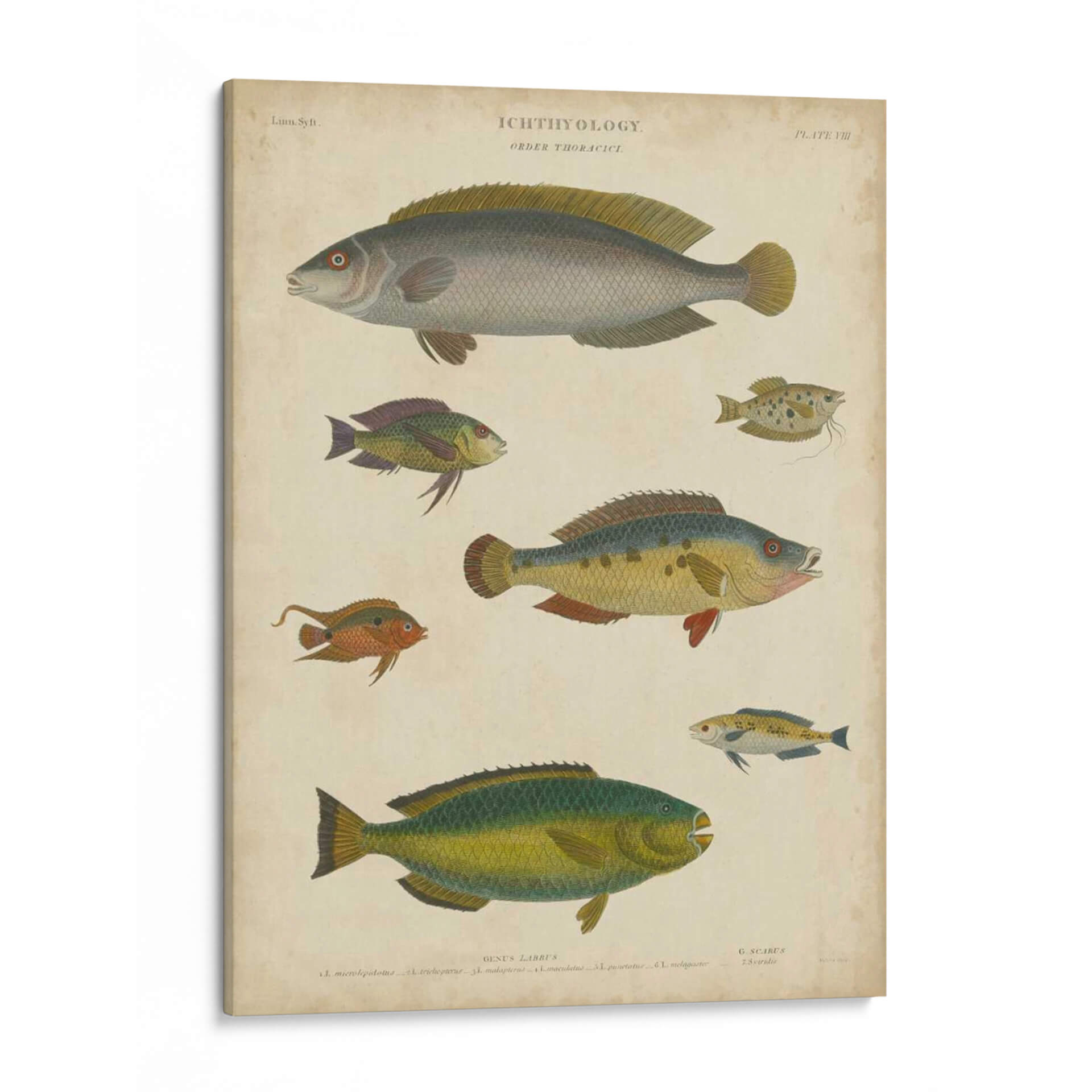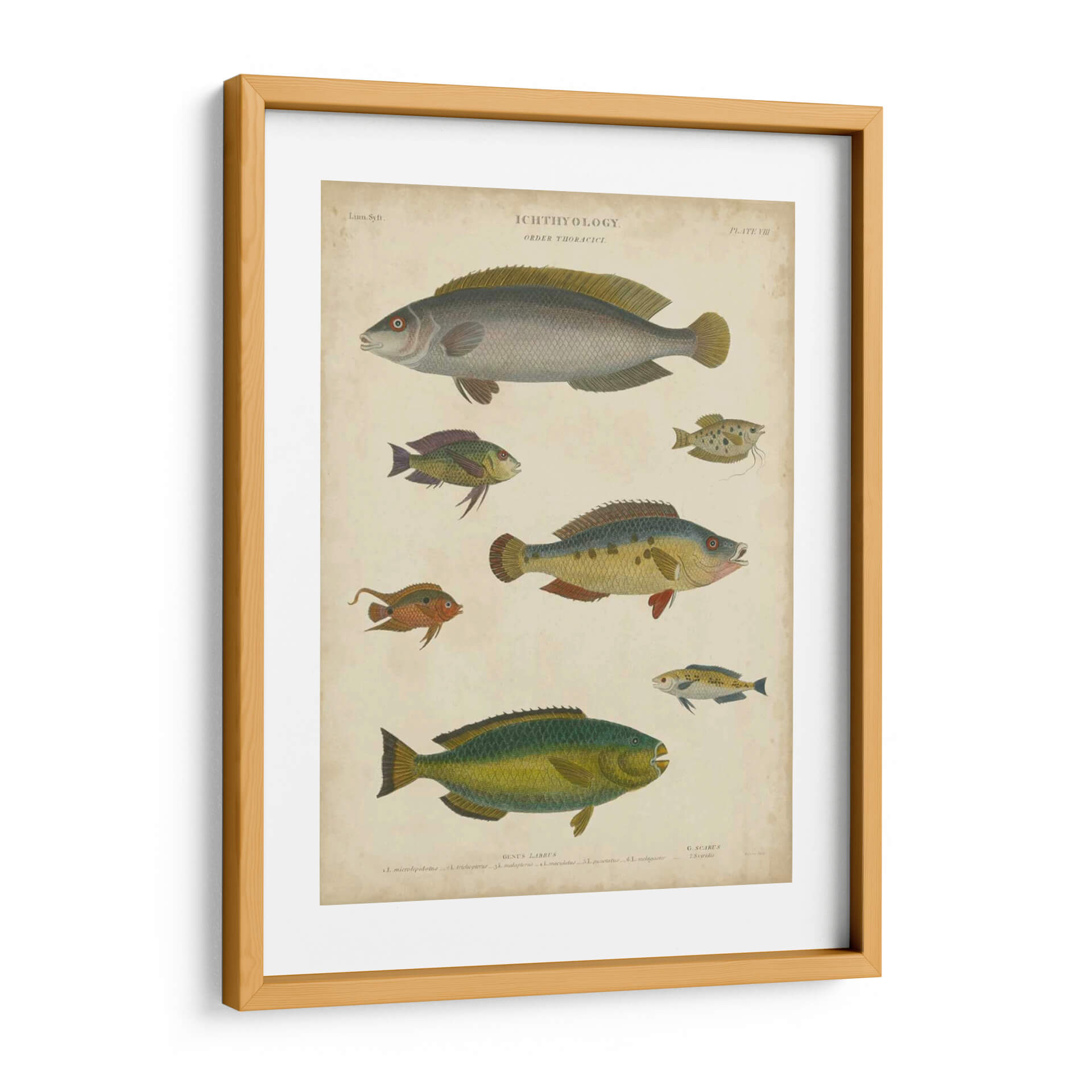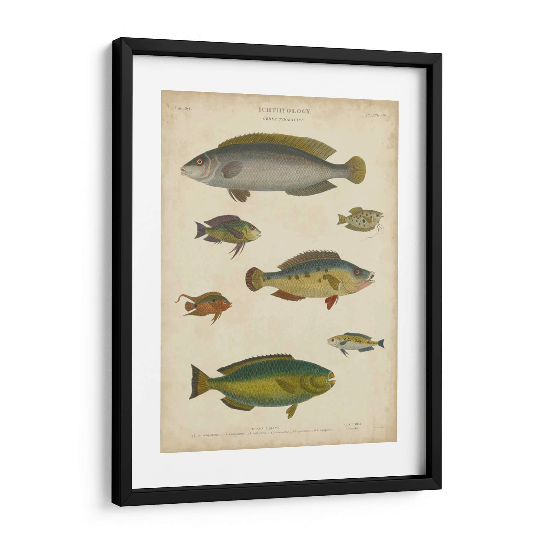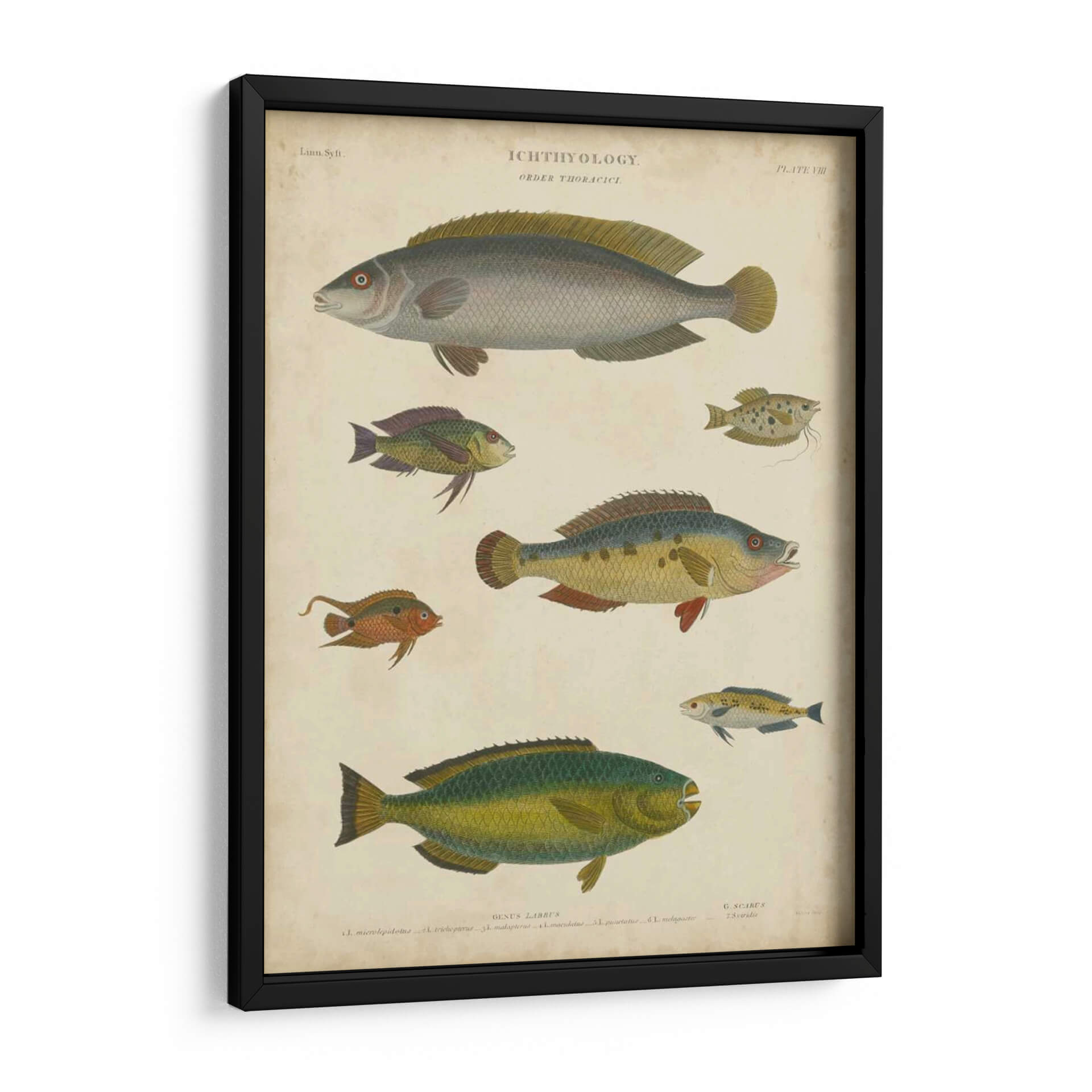 Sumérgete en el fascinante mundo de la ictiología con esta exquisita obra de arte, "Ictiología No Adornada II" del artista Abraham Rees. Este cuadro decorativo presenta una detallada y precisa ilustración de diversas especies de peces, capturando la majestuosidad y diversidad del reino acuático. La paleta de colores, dominada por tonos naturales y sutiles matices que van desde el plateado y azul profundo hasta el verde esmeralda y toques de naranja vibrante, evoca una sensación de calma y admiración por la naturaleza. La composición, organizada de manera clásica y educativa, presenta a cada pez con una claridad que resalta sus características únicas, desde las escamas detalladas hasta las aletas delicadas. Ideal para los amantes de la vida marina, biólogos, o cualquier persona que busque añadir un toque de elegancia y conocimiento científico a su hogar u oficina. Este cuadro decorativo es perfecto para crear un punto focal sereno en un estudio, un comedor con temática náutica, o incluso para inspirar en un consultorio médico o despacho. Su estilo atemporal y su ejecución detallada lo convierten en una pieza versátil que complementa tanto decoraciones clásicas como contemporáneas, aportando una atmósfera de estudio y descubrimiento.