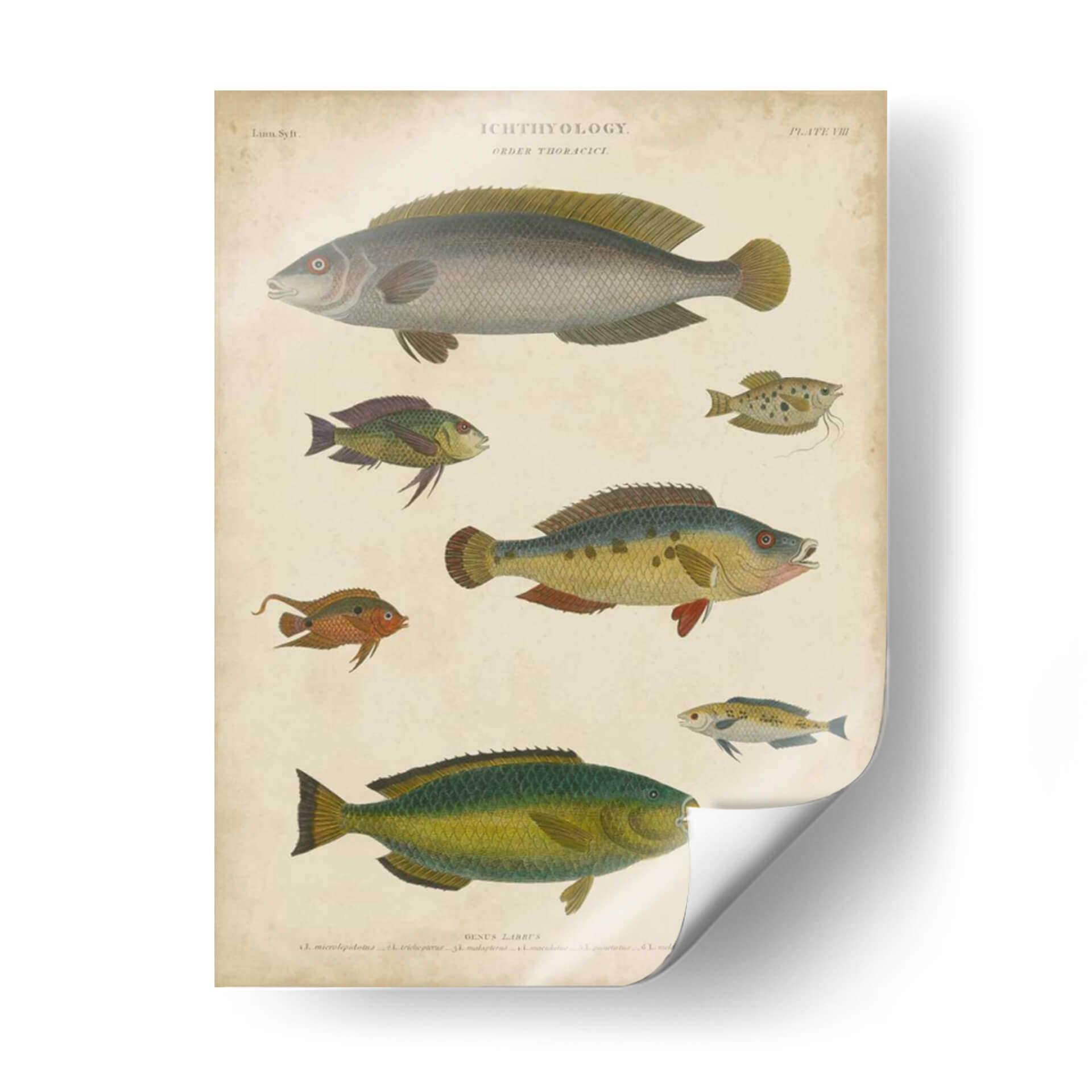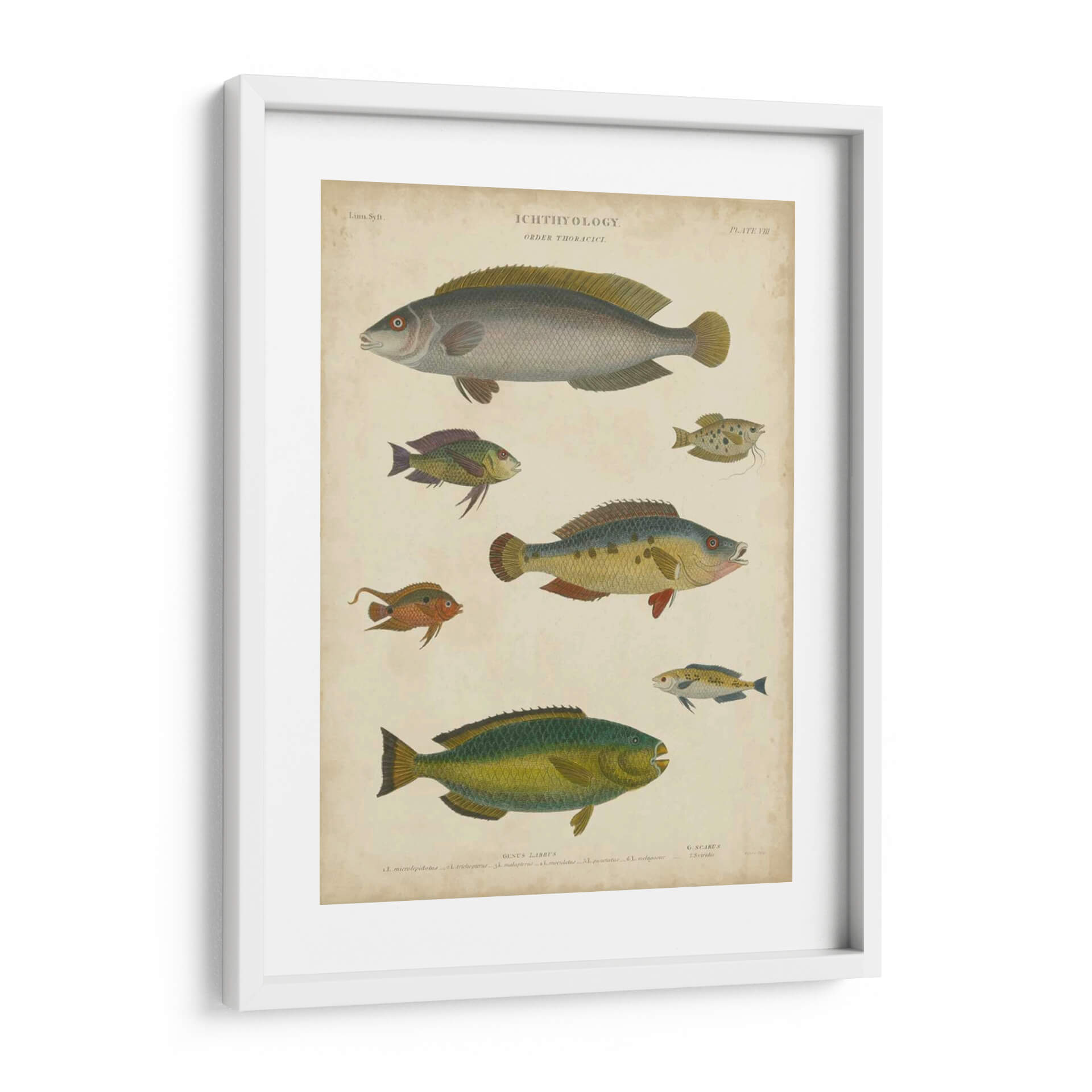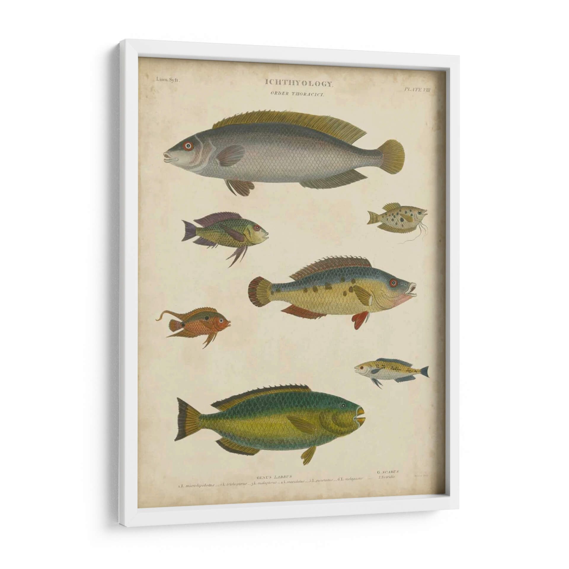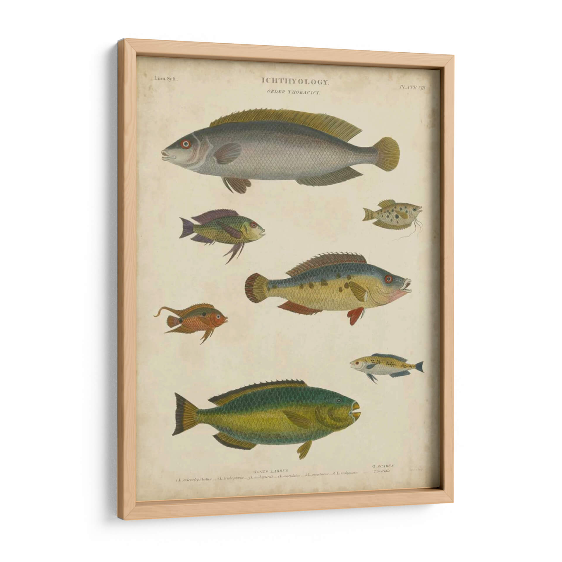 Sumérgete en el fascinante mundo de la ictiología con esta exquisita obra de arte, "Ictiología No Adornada II" del artista Abraham Rees. Este cuadro decorativo presenta una detallada y precisa ilustración de diversas especies de peces, capturando la majestuosidad y diversidad del reino acuático. La paleta de colores, dominada por tonos naturales y sutiles matices que van desde el plateado y azul profundo hasta el verde esmeralda y toques de naranja vibrante, evoca una sensación de calma y admiración por la naturaleza. La composición, organizada de manera clásica y educativa, presenta a cada pez con una claridad que resalta sus características únicas, desde las escamas detalladas hasta las aletas delicadas. Ideal para los amantes de la vida marina, biólogos, o cualquier persona que busque añadir un toque de elegancia y conocimiento científico a su hogar u oficina. Este cuadro decorativo es perfecto para crear un punto focal sereno en un estudio, un comedor con temática náutica, o incluso para inspirar en un consultorio médico o despacho. Su estilo atemporal y su ejecución detallada lo convierten en una pieza versátil que complementa tanto decoraciones clásicas como contemporáneas, aportando una atmósfera de estudio y descubrimiento.