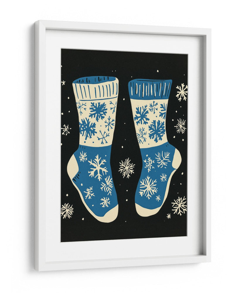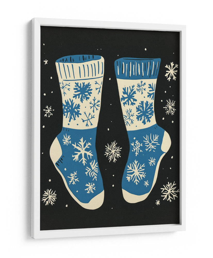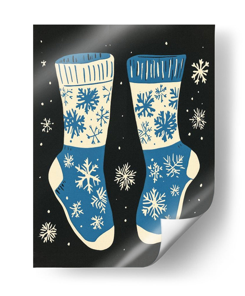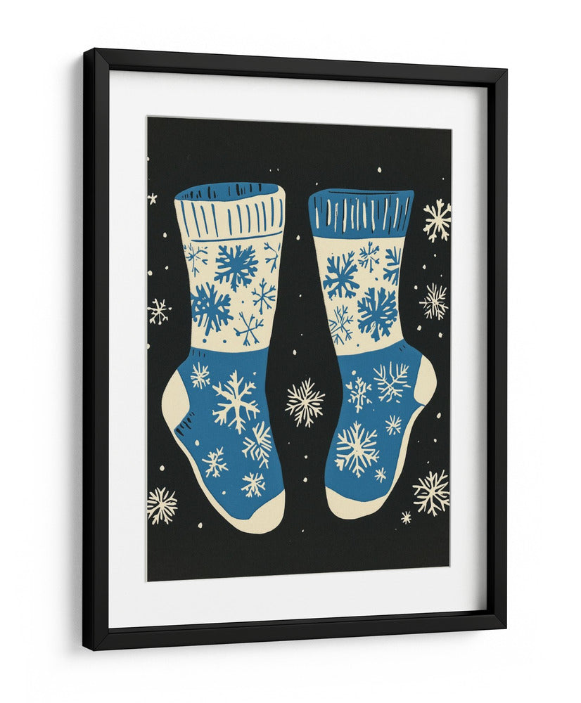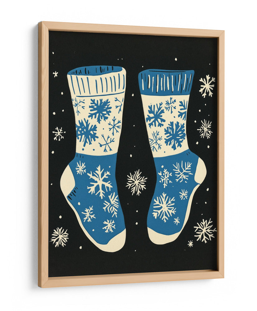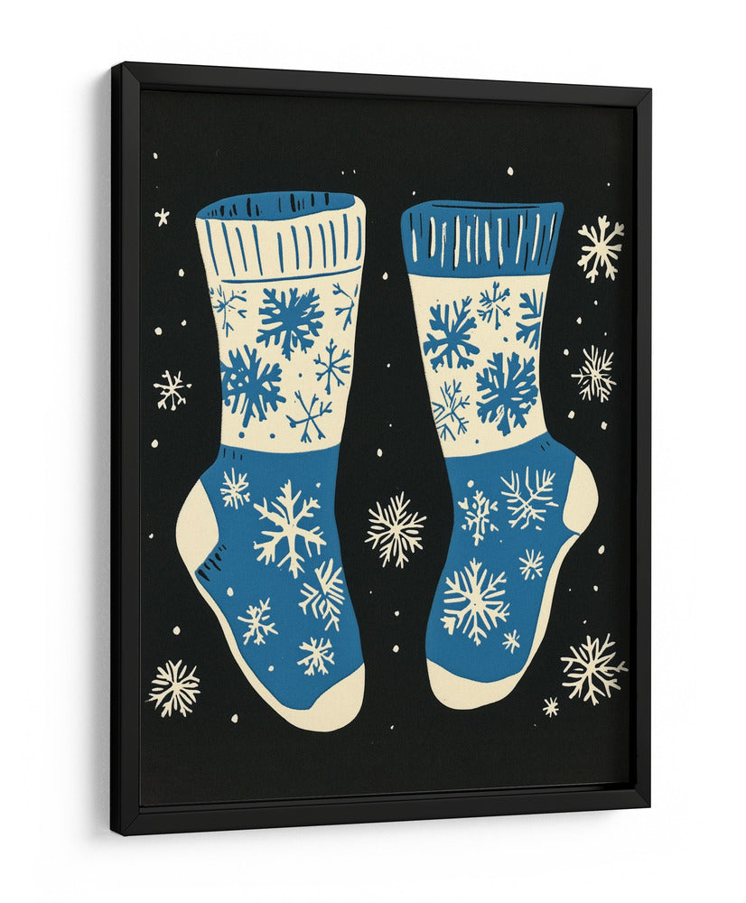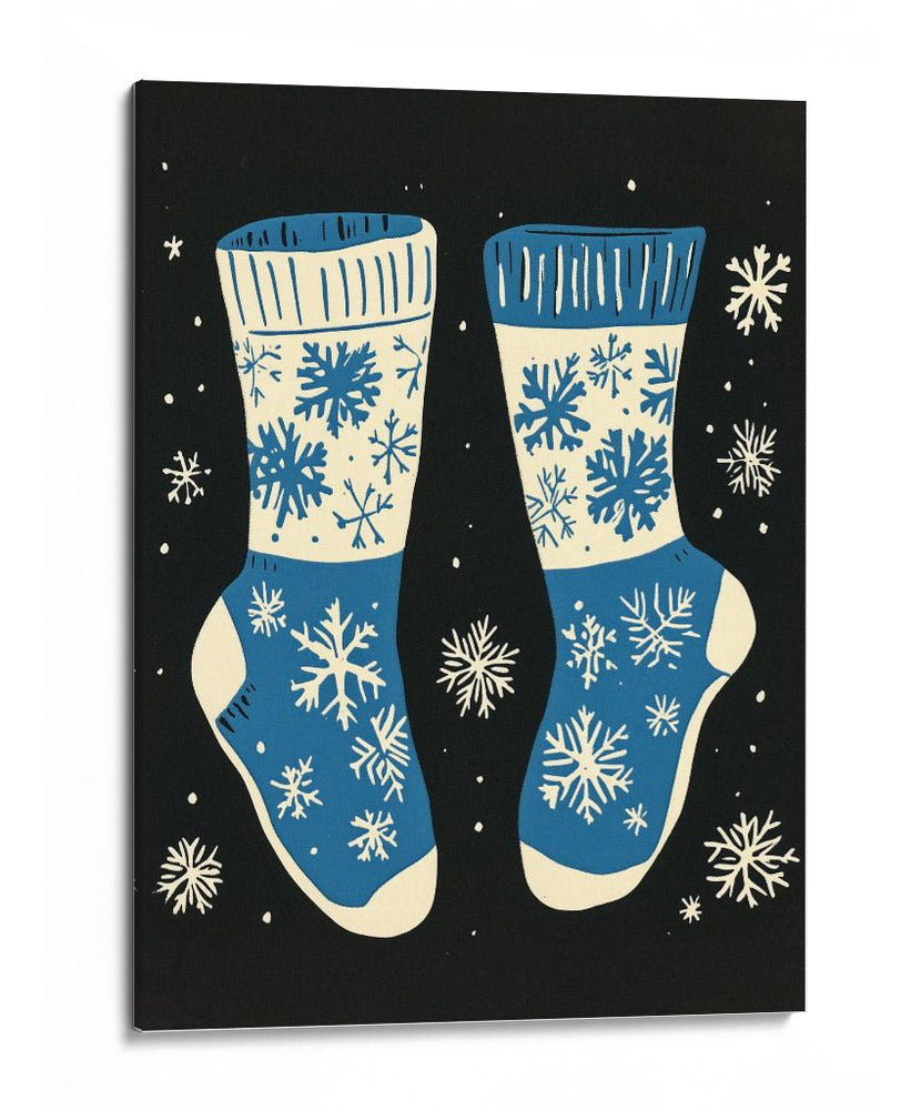 Sumérgete en la calidez y el espíritu festivo con este encantador cuadro decorativo que presenta un diseño de calcetines navideños adornados con copos de nieve. La obra, con su paleta de colores vibrantes en azul y crema sobre un fondo negro profundo, evoca la magia de la temporada invernal y la comodidad de un hogar acogedor. Los intrincados diseños de copos de nieve, distribuidos de manera artística, añaden un toque de fantasía y detalle a la composición, creando un ambiente lúdico y a la vez elegante. Ideal para quienes buscan añadir un acento festivo a su decoración, este cuadro es perfecto para salones, dormitorios o cualquier espacio que desee un toque de alegría y estilo invernal. Su estilo gráfico y moderno lo convierte en una pieza versátil, capaz de complementar tanto decoraciones contemporáneas como más tradicionales. Transforma tu hogar en un refugio invernal con esta pieza única de arte de pared.
