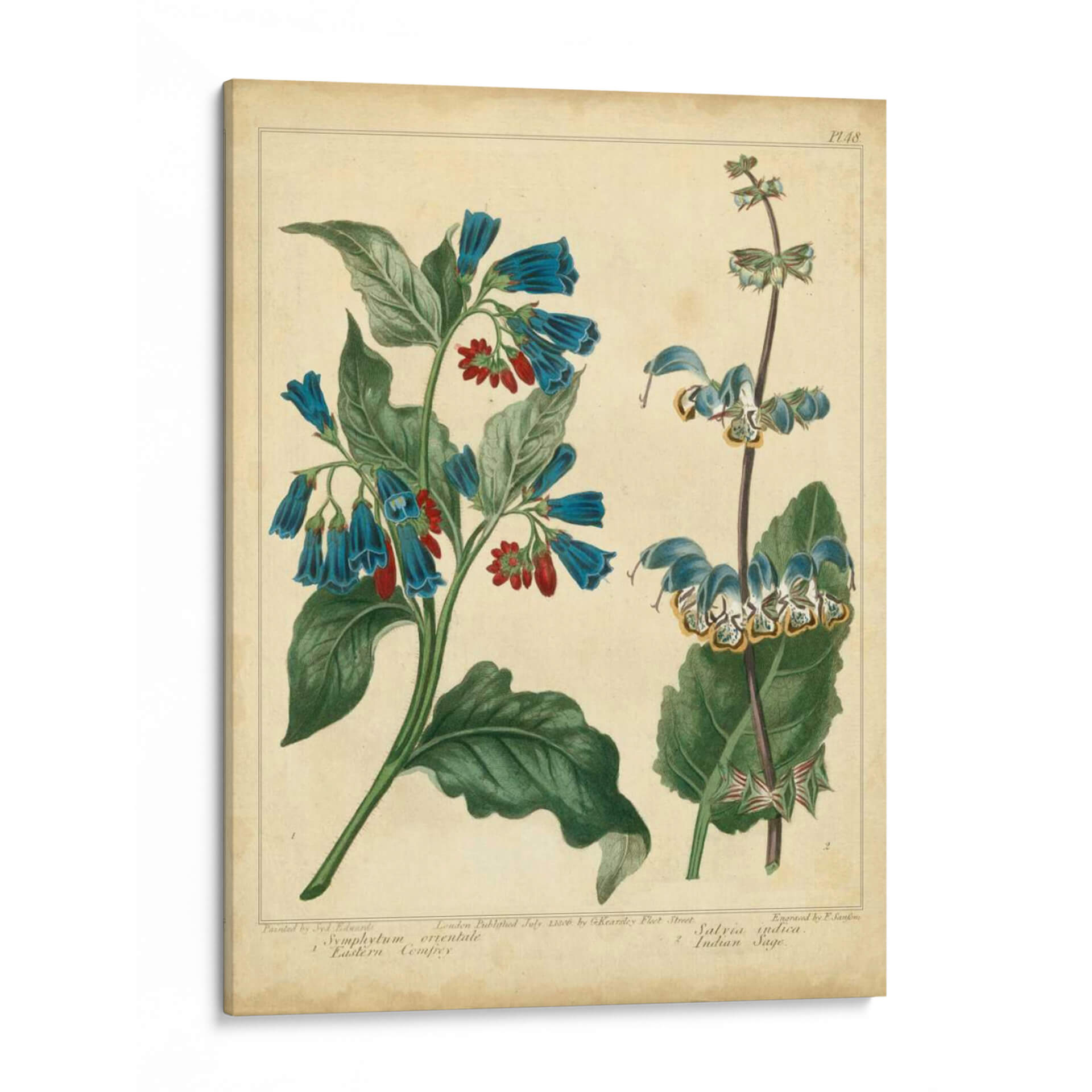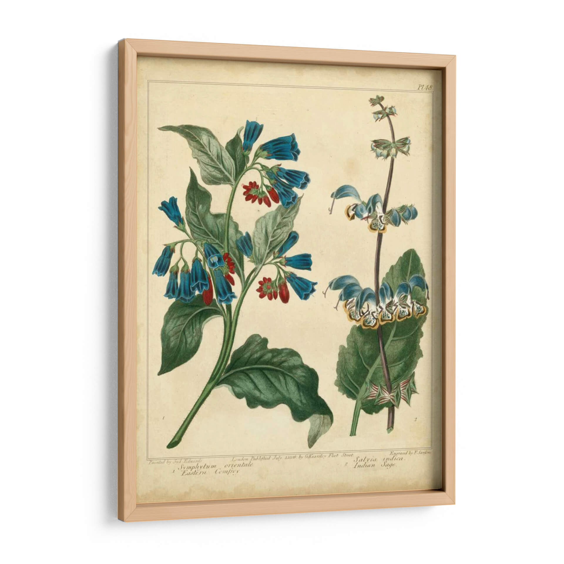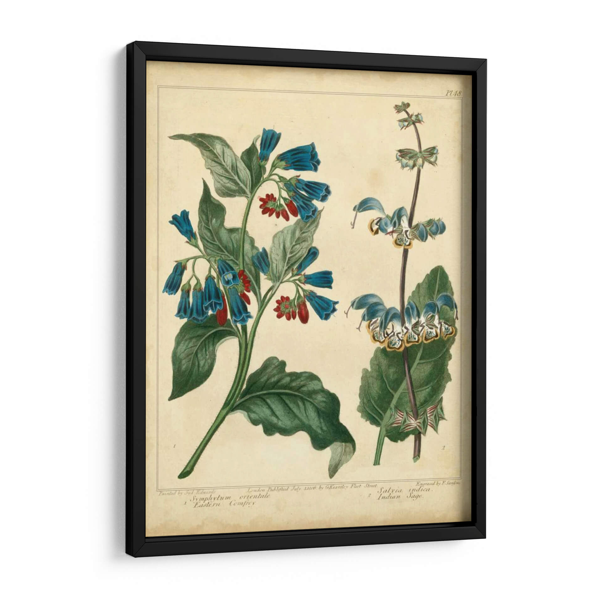 Embellezca su hogar u oficina con este exquisito cuadro decorativo botánico, 'Jardín Flora V', del artista Sydenham Edwards. Esta obra maestra captura la delicadeza de la naturaleza a través de representaciones detalladas de flores en tonos azules vibrantes y toques de rojo, sobre un fondo de inspiración vintage en tono crema. La composición presenta dos especies botánicas distintas, una con racimos de flores acampanadas y otra con espigas florales más complejas, ambas rodeadas de exuberantes hojas verdes. El estilo de ilustración botánica clásica, con sus líneas precisas y colores sutiles, evoca una sensación de calma, elegancia y aprecio por la historia natural. Este cuadro decorativo es ideal para espacios que buscan un toque de sofisticación y conexión con la naturaleza. Quedará perfecto en una sala de estar, un estudio, o incluso como una pieza central serena en un dormitorio. Su diseño atemporal se integra armoniosamente en decoraciones clásicas, rústicas o incluso en contraste con ambientes modernos, aportando un aire de refinamiento y cultura. Añada esta pieza botánica a su colección y transforme cualquier pared en una ventana a la belleza del mundo natural.