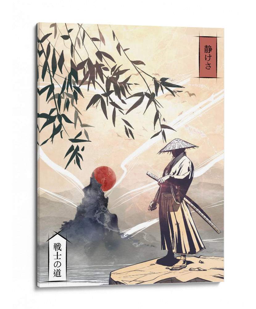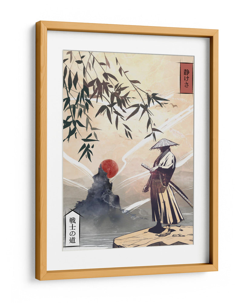Sumérgete en la serena majestuosidad de "Kodoku", una obra de arte digital que captura la esencia del guerrero solitario en un paisaje etéreo. Esta pieza, inspirada en la estética japonesa tradicional, presenta a un samurái de pie sobre un acantilado rocoso, contemplando un sol carmesí ascendente sobre un mar brumoso. Las ramas de bambú, dibujadas con trazos audaces, enmarcan la escena, añadiendo un toque de naturaleza orgánica a la composición. La paleta de colores, dominada por tonos tierra, ocres y toques de rojo vibrante, evoca una atmósfera de tranquilidad y introspección. El estilo distintivo del artista Fadil Roze combina elementos de arte ukiyo-e con una sensibilidad moderna, creando una pieza visualmente cautivadora. Este cuadro decorativo es perfecto para aquellos que buscan infundir sus espacios con un sentido de paz, disciplina y la belleza de la contemplación solitaria. Ideal para salones, oficinas o cualquier rincón que necesite un toque de refinamiento cultural y serenidad profunda. "Kodoku" no es solo una decoración, es una invitación a la reflexión.