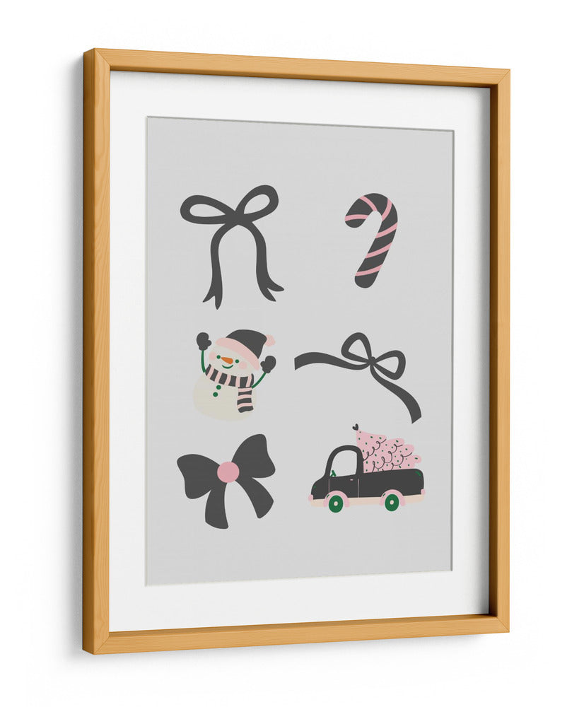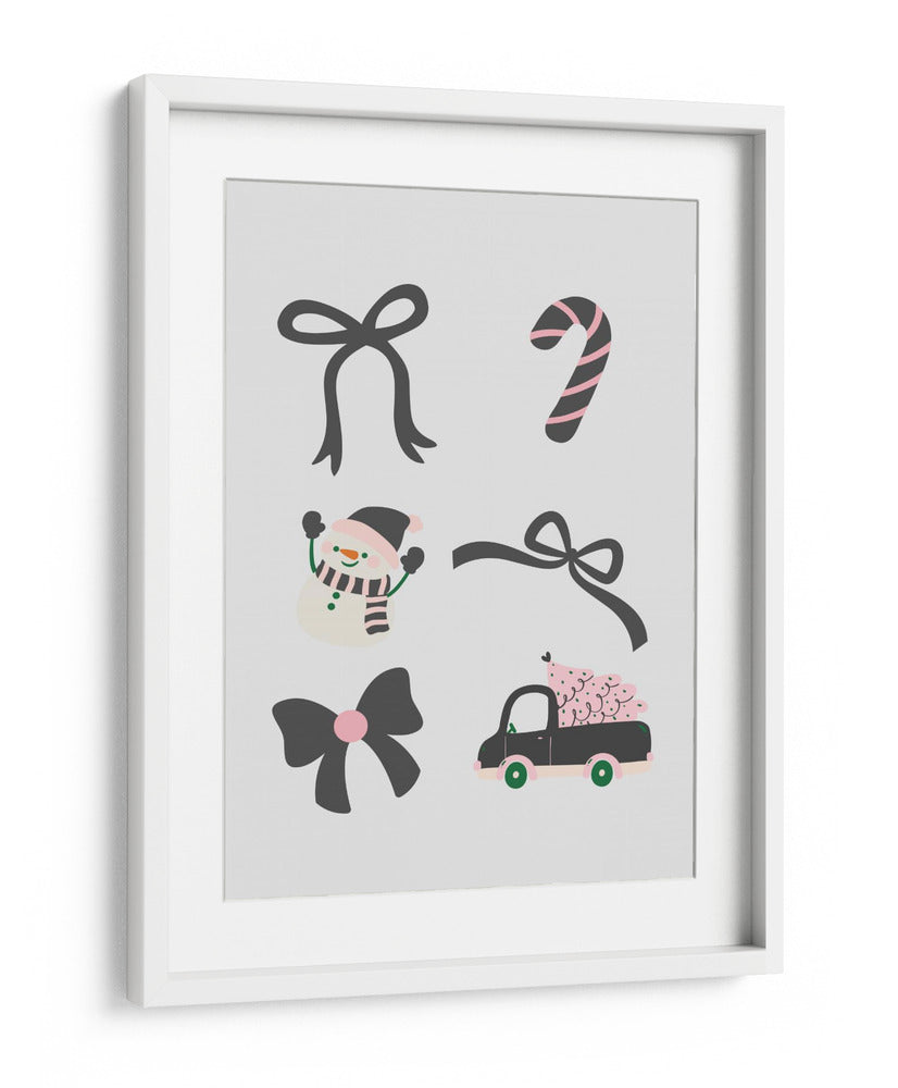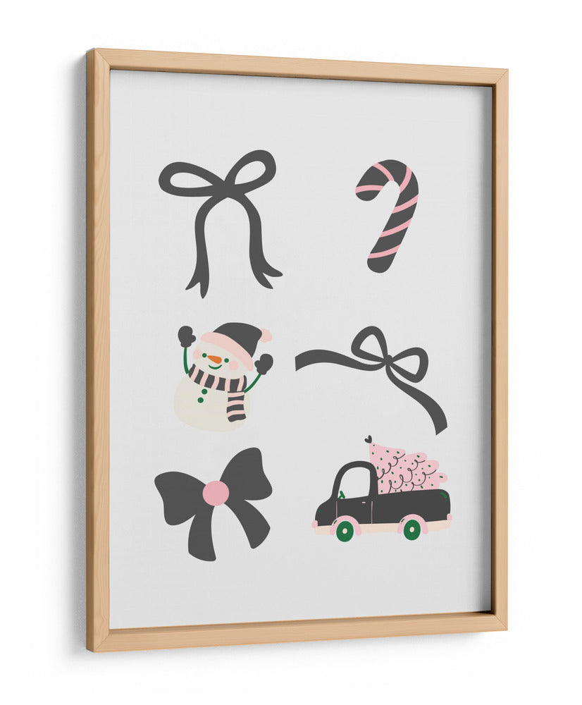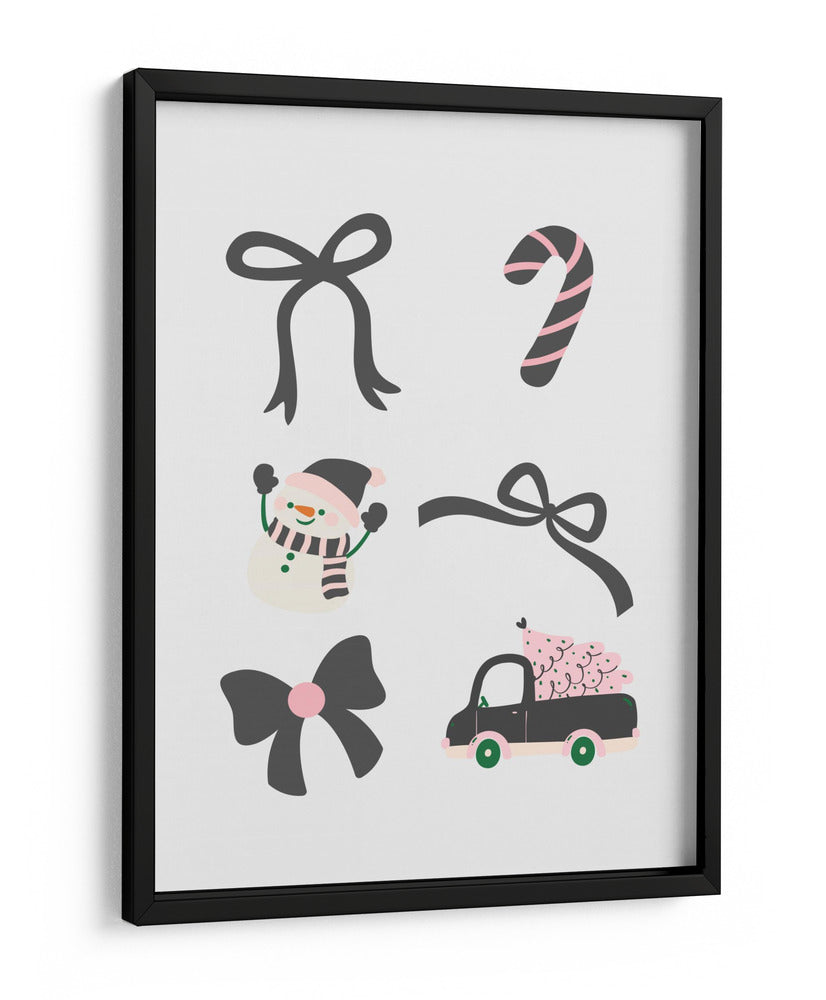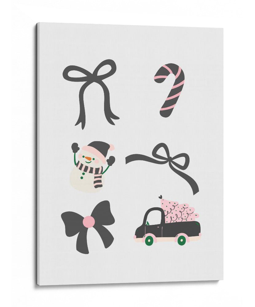Celebra la temporada festiva con este encantador cuadro decorativo que captura la esencia de la Navidad con un toque moderno y minimalista. La obra presenta una adorable composición de elementos icónicos: un muñeco de nieve sonriente con bufanda a rayas, un bastón de caramelo clásico, delicados lazos y un camión negro cargado con un árbol de Navidad rosa. La paleta de colores, dominada por el negro, el rosa suave y el blanco roto, crea una atmósfera alegre pero sofisticada, perfecta para añadir un toque festivo a cualquier espacio sin ser abrumadora. El estilo de ilustración digital es limpio y estilizado, con contornos definidos y formas sencillas que resaltan la simpatía de cada elemento. Este cuadro es ideal para decorar salones, habitaciones infantiles, cocinas o cualquier rincón que necesite un soplo de alegría navideña. Su diseño versátil se adapta a decoraciones modernas, escandinavas o contemporáneas, aportando calidez y un espíritu festivo. Transforma tu hogar en un refugio acogedor durante las fiestas con esta pieza única que evoca la magia y la ilusión de la Navidad, creando un ambiente lleno de sonrisas y buenos deseos.