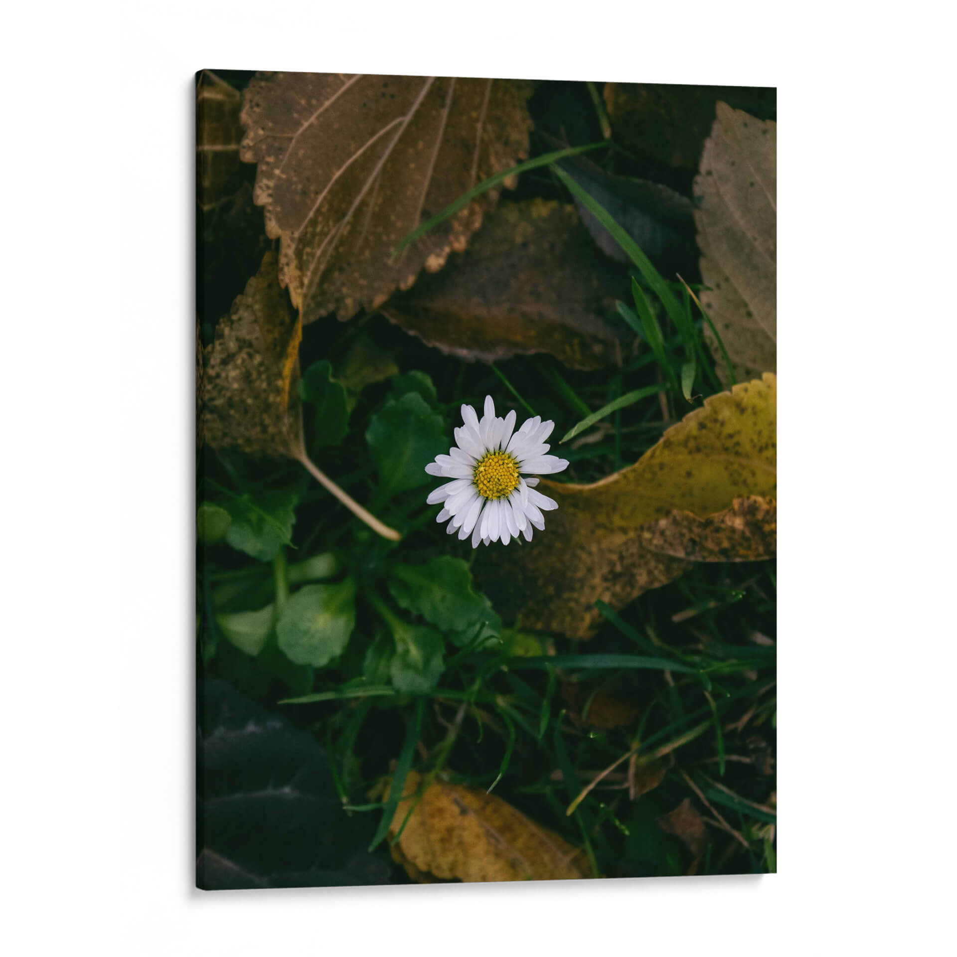 Captura la esencia delicada de la naturaleza con "Margarita Común", una obra de arte fotográfica que te invita a contemplar la belleza en los detalles más simples. Esta pieza muestra una solitaria margarita blanca, con sus pétalos nítidos y un vibrante centro amarillo, emergiendo entre hojas secas y hierba verde. La composición, realizada por ALEJANDRE PHOTOGRAPHY, utiliza un enfoque cercano que resalta la fragilidad y la resiliencia de esta flor, un símbolo universal de inocencia y pureza. La paleta de colores, dominada por verdes profundos, marrones otoñales y el contraste luminoso de la flor, crea una atmósfera de calma y serenidad. Es ideal para añadir un toque de elegancia natural a cualquier espacio, ya sea un dormitorio acogedor, un rincón de lectura tranquilo o una sala de estar que busca una conexión con la naturaleza. Este cuadro decorativo es perfecto para quienes aprecian la fotografía de flora y desean incorporar elementos orgánicos y sutiles en su decoración interior. "Margarita Común" no es solo una imagen, es una invitación a encontrar la paz y la armonía en los pequeños milagros que nos rodean, transformando tu hogar en un santuario de tranquilidad y estilo.