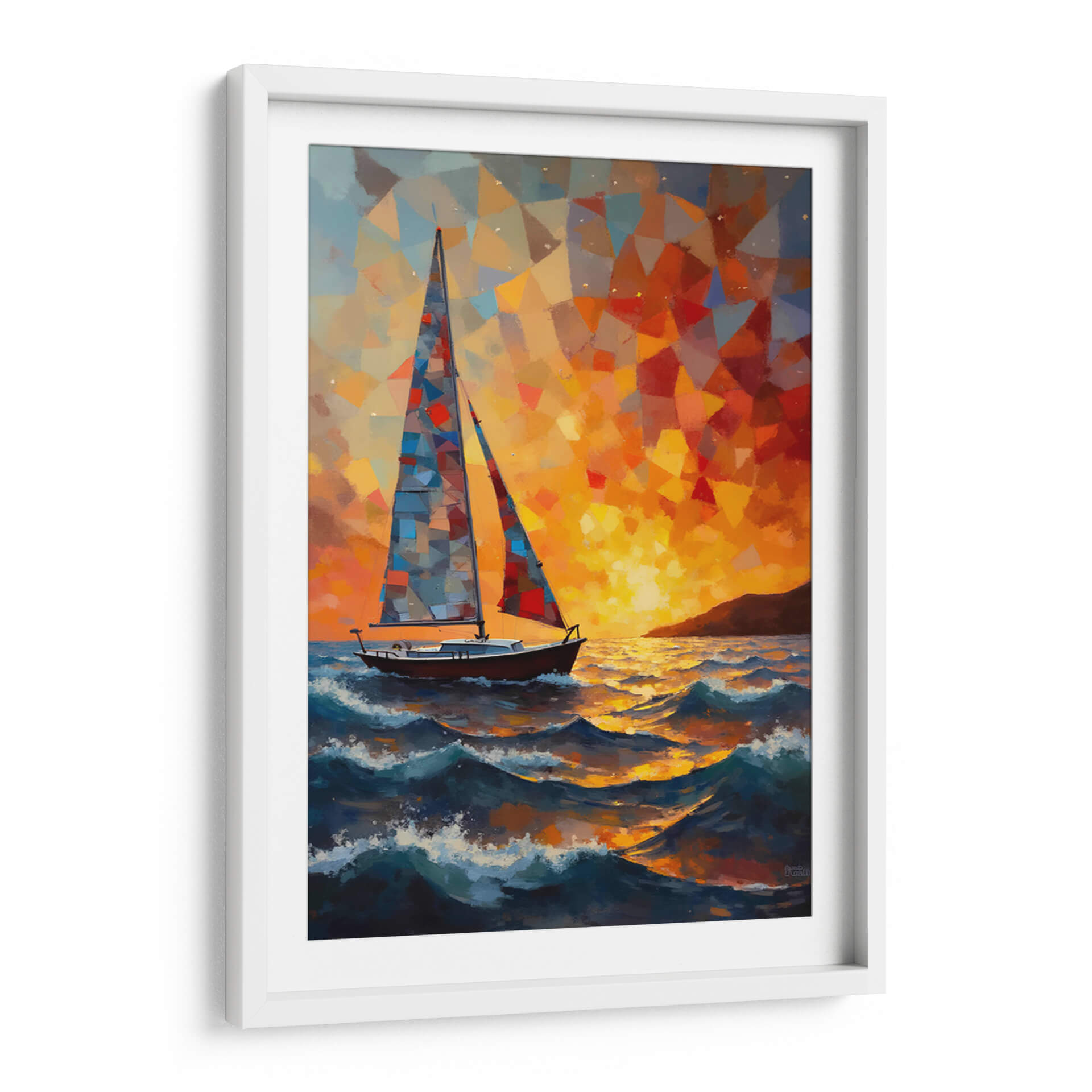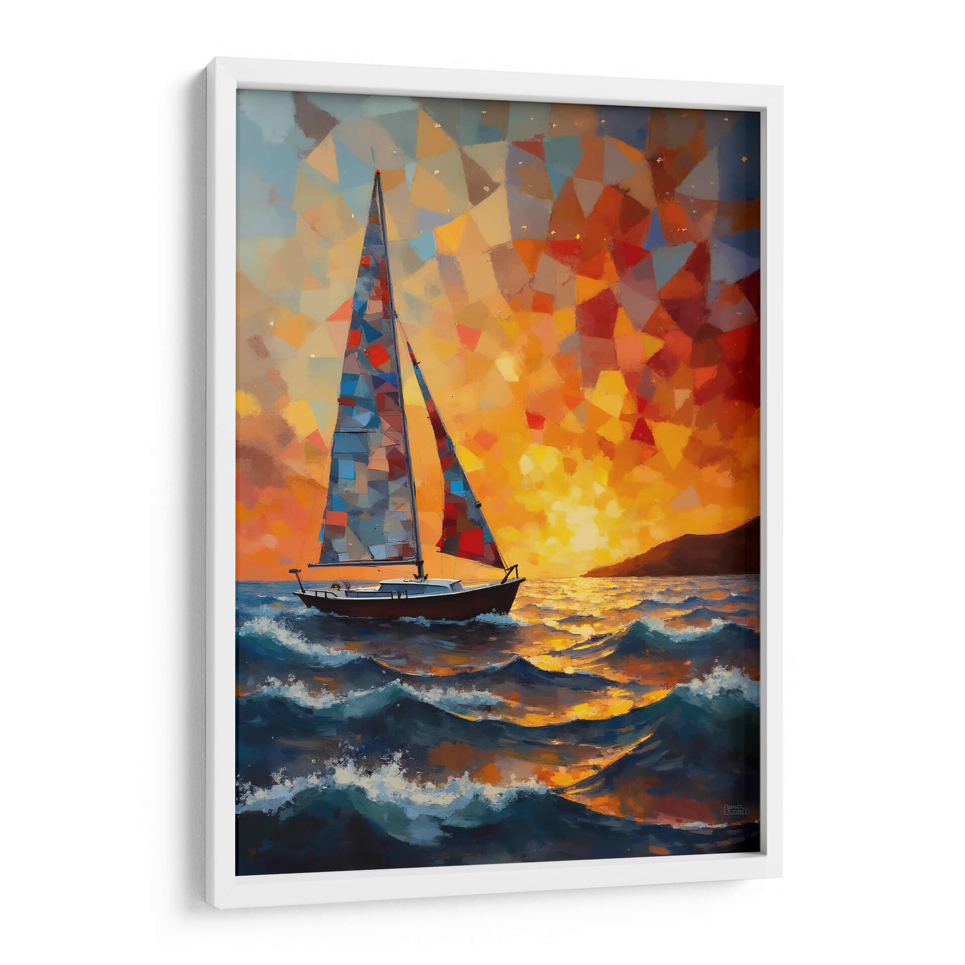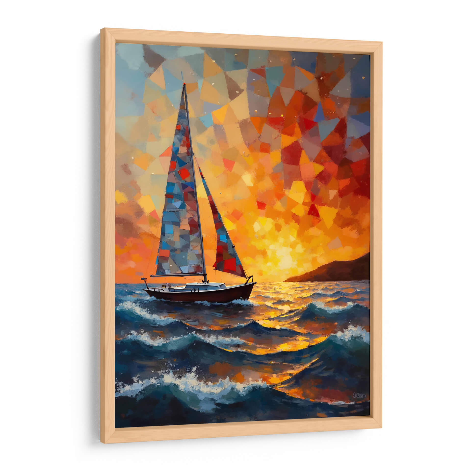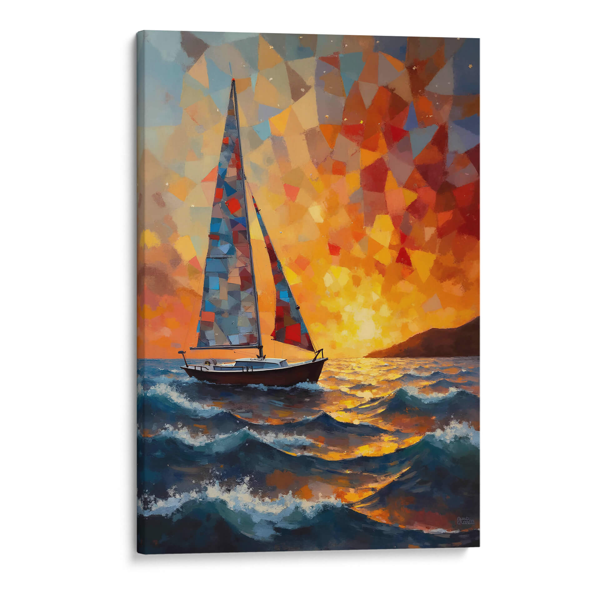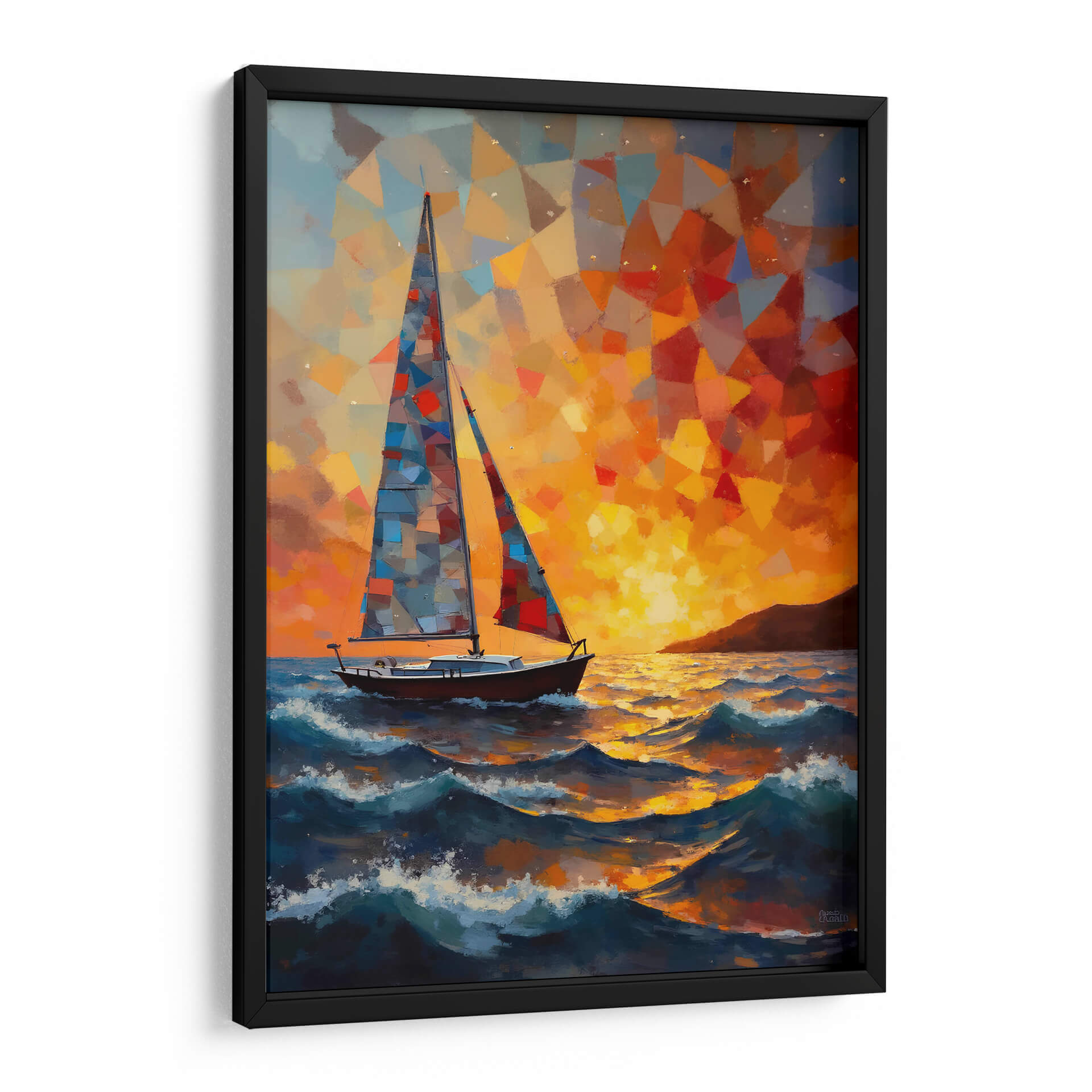 Sumérgete en la serenidad y la fuerza del océano con este cautivador cuadro decorativo. La obra "Marina Turner Cubista" de DEA Digital Esoteric Art es una explosión de color y movimiento que captura la esencia de una navegación al atardecer. Las vibrantes tonalidades anaranjadas y doradas del cielo se reflejan en las olas dinámicas, creando una atmósfera cálida y enérgica. El velero, con sus velas fragmentadas en un estilo cubista, navega con determinación a través del mar agitado, transmitiendo una sensación de aventura y libertad. Cada pincelada digital evoca la textura y la profundidad, invitando al espectador a perderse en la escena. Este cuadro decorativo es ideal para añadir un toque de dramatismo y color a cualquier sala de estar, comedor o estudio. Su composición audaz y su paleta de colores cálidos lo convierten en un punto focal perfecto para espacios que buscan inspiración marina y un toque de arte contemporáneo. Decora tu hogar con esta pieza única que evoca la emoción de un viaje por mar y la belleza atemporal del horizonte.