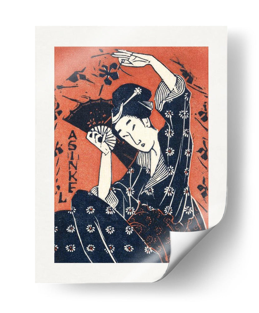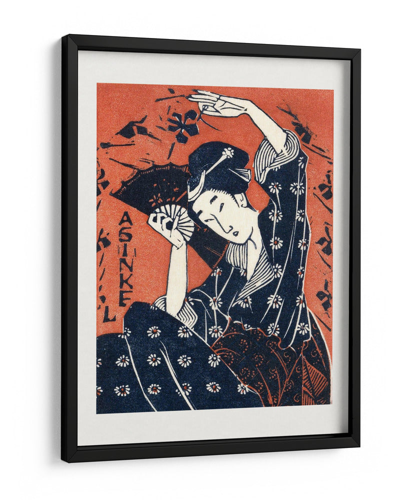 Sumérgete en la delicada elegancia del arte japonés con este cautivador cuadro decorativo 'Mujer japonesa (1935) con inquilino' de Utagawa Hiroshige. La obra maestra presenta a una mujer con un kimono oscuro, adornado con delicadas flores blancas, sosteniendo un abanico negro. El vibrante fondo naranja crea un contraste audaz, realzando la figura central y los motivos florales en tonos azul marino y blanco. La composición, con la figura en una pose grácil y la mirada introspectiva, evoca una sensación de serenidad y misterio, transportando al espectador a una época de refinada tradición. Este cuadro decorativo es ideal para añadir un toque de sofisticación y encanto cultural a cualquier espacio, ya sea un salón moderno, un sereno dormitorio o un estudio tranquilo. La técnica de Utagawa Hiroshige, evidente en las líneas precisas y la aplicación de color, ofrece una pieza de arte mural que no solo embellece, sino que también cuenta una historia. Transforma tu hogar con la belleza atemporal de este arte oriental, una adición perfecta para quienes aprecian la estética japonesa y el arte clásico.