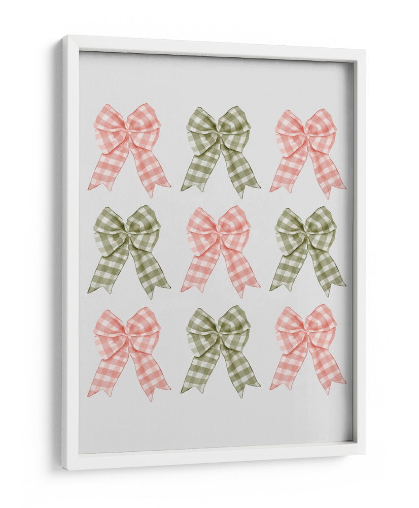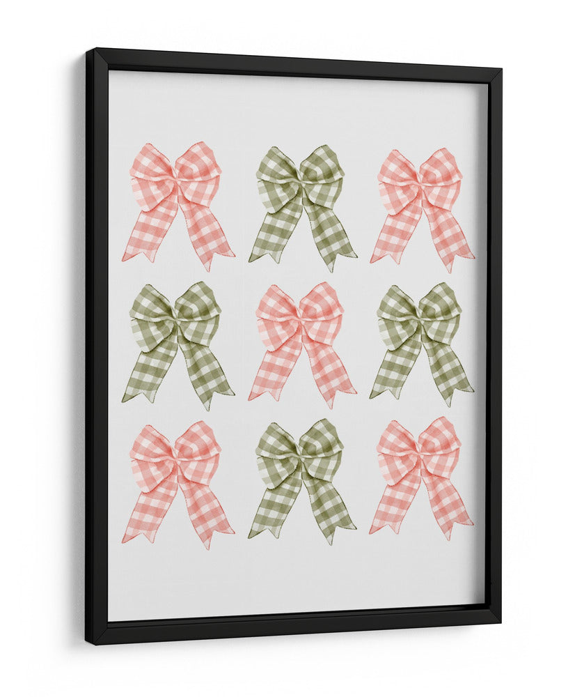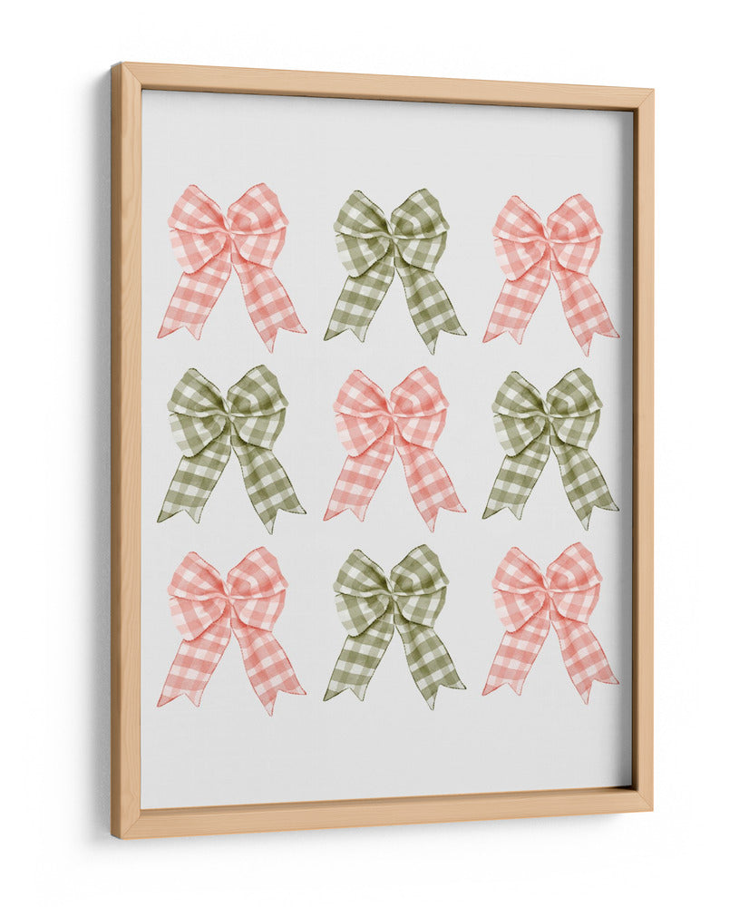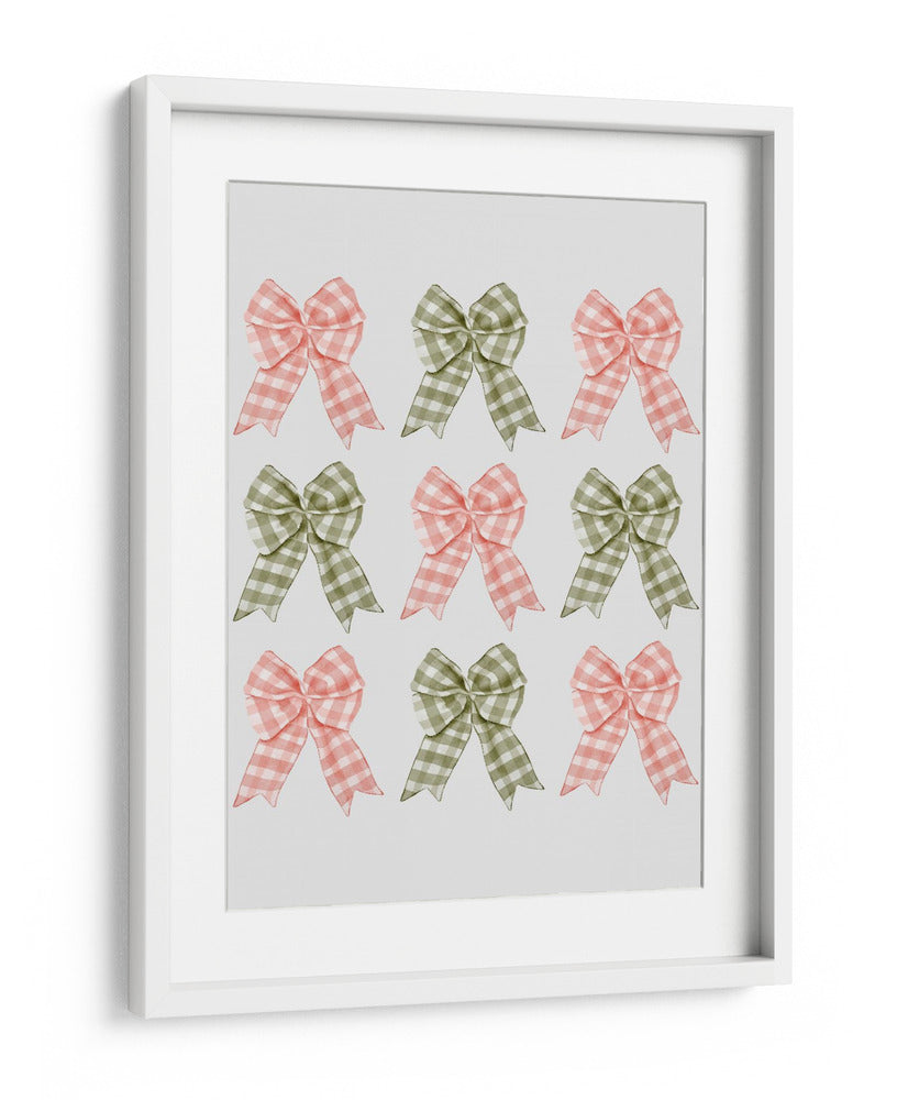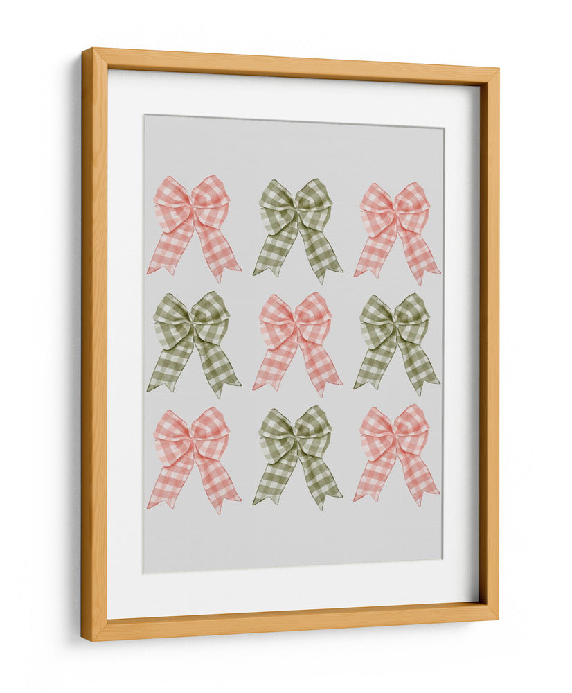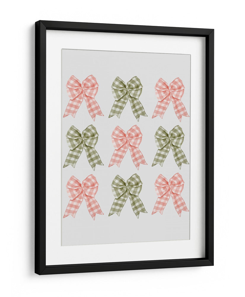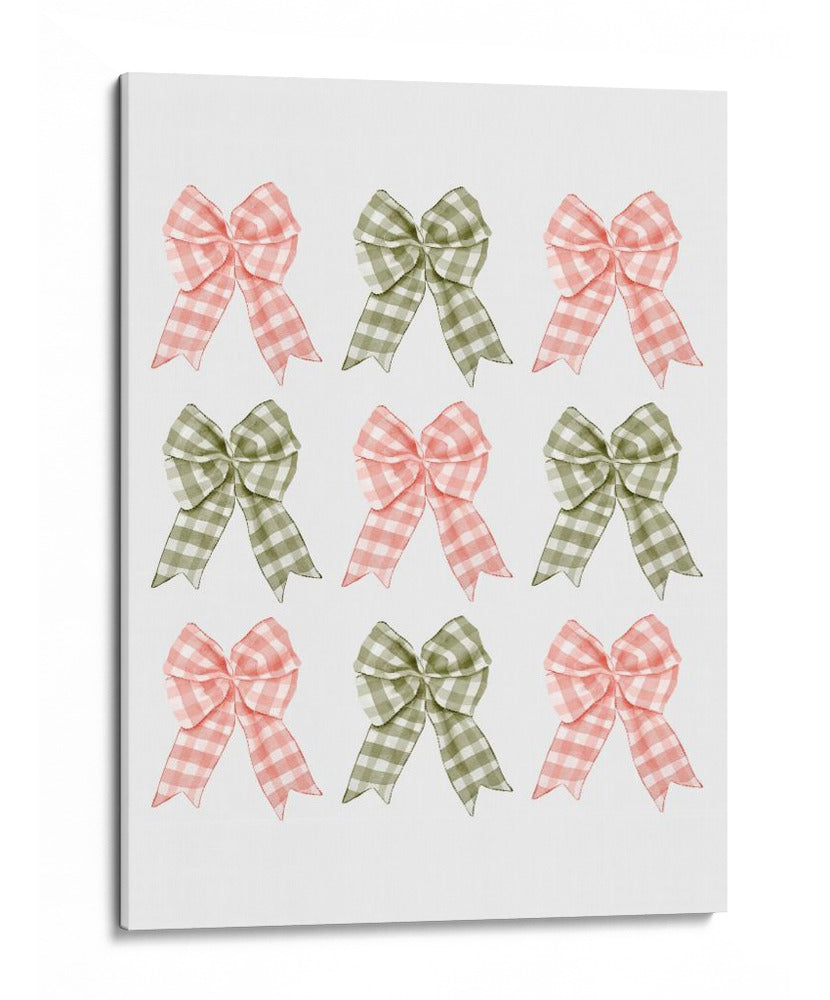 Este encantador cuadro decorativo, titulado 'Nueve Lazos Festivos - Verde y Rosa' por Jolly and Dash, es una celebración visual de la sencillez y la alegría. La obra presenta una repetición armoniosa de lazos con un patrón de cuadros vichy, alternando entre tonos suaves de rosa y verde oliva. La técnica de acuarela aporta una delicadeza etérea, con bordes ligeramente difuminados que confieren una sensación de suavidad y ligereza. La composición está organizada en una cuadrícula ordenada de tres por tres, creando un ritmo visual equilibrado y agradable. El fondo blanco puro realza la vivacidad de los lazos, permitiendo que cada detalle resalte. Esta pieza irradia una atmósfera de calidez, festividad y un toque nostálgico, evocando la dulzura de las celebraciones y la inocencia. Es ideal para añadir un acento de color y personalidad a espacios como habitaciones infantiles, cocinas rústicas, o para aportar un toque festivo y acogedor a cualquier sala de estar o comedor. Su estilo contemporáneo con un guiño a lo clásico la convierte en una adición versátil para una variedad de decoraciones, desde las más modernas hasta las más tradicionales, invitando a la contemplación y a la sonrisa.
