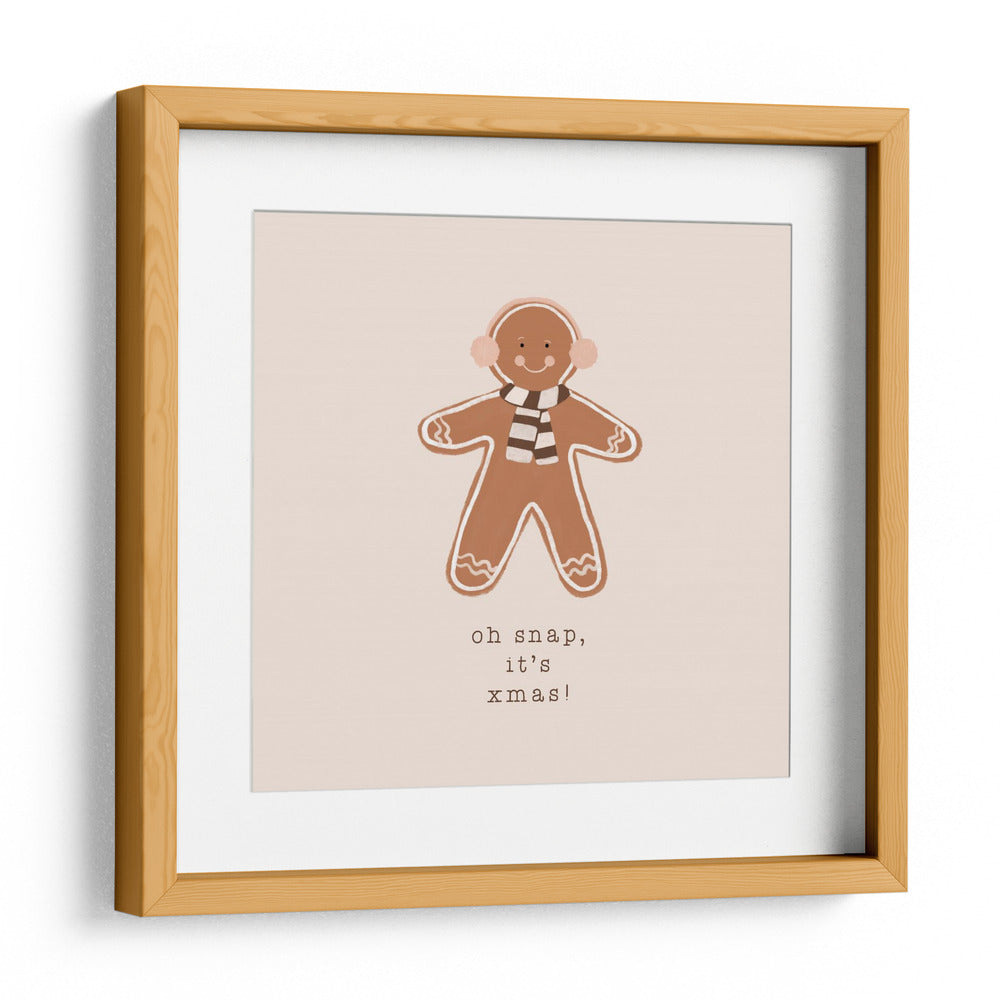Celebra la temporada festiva con nuestro encantador cuadro decorativo 'Oh Snap, It's Xmas'. Esta obra de arte digital presenta una adorable figura de hombre de jengibre, vestida con un acogedor bufanda y orejeras, lista para la Navidad. Con una paleta de colores cálidos y neutros, incluyendo tonos tierra y un suave fondo beige, esta pieza emana una atmósfera alegre y acogedora. El estilo es deliberadamente simple y encantador, con contornos blancos definidos que resaltan la figura del hombre de jengibre. La frase "Oh snap, it's xmas!" añade un toque juguetón y moderno, perfecto para quienes buscan decorar su hogar con un espíritu navideño divertido y con estilo. Este cuadro decorativo es ideal para añadir un toque festivo a cualquier estancia, desde la sala de estar hasta una cocina o incluso un espacio de trabajo, creando un ambiente cálido y lleno de alegría navideña. Su diseño minimalista pero expresivo lo convierte en una adición versátil a diversas decoraciones, aportando un aire de celebración y dulzura a tu hogar durante las fiestas.