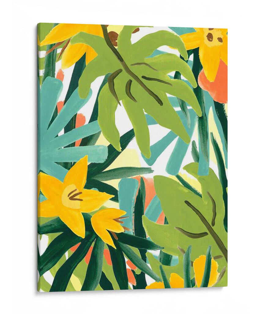 Sumérgete en la exuberancia tropical con "Palm Thitch II", una obra de arte vibrante y llena de vida del artista June Erica Vess. Este cuadro decorativo captura la esencia de un paraíso botánico a través de audaces pinceladas y una paleta de colores que evoca calidez y vitalidad. Las grandes hojas verdes, en diversos tonos y texturas, se entrelazan con delicadas flores amarillas y toques de naranja y turquesa, creando una composición dinámica y refrescante. El estilo, que combina la soltura del impresionismo con toques modernos, invita a la contemplación y a la evasión, transportando al espectador a un entorno natural exuberante. Ideal para añadir un toque de energía y naturaleza a salones, comedores o incluso oficinas, este lienzo es una celebración de la belleza orgánica y el arte contemporáneo. Su diseño vertical y su estilo llamativo lo convierten en el punto focal perfecto para cualquier pared, transformando cualquier espacio en un oasis de color y serenidad, perfecto para amantes de la naturaleza y el arte moderno que buscan piezas únicas y expresivas.