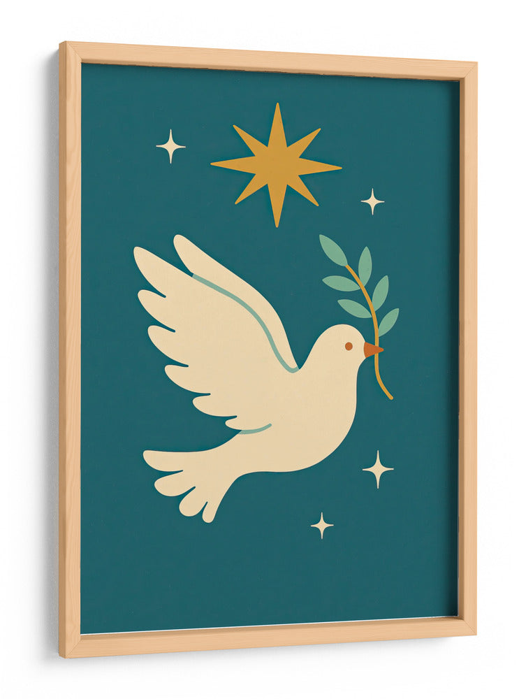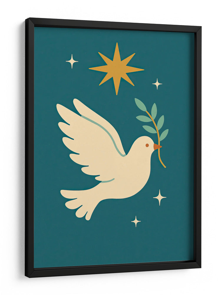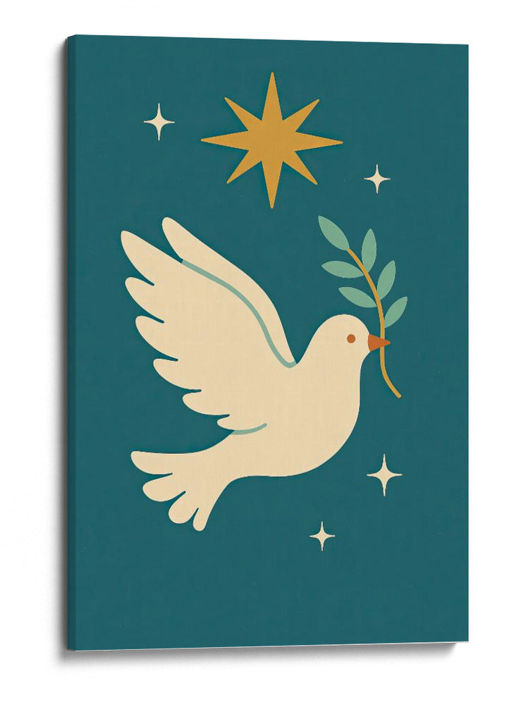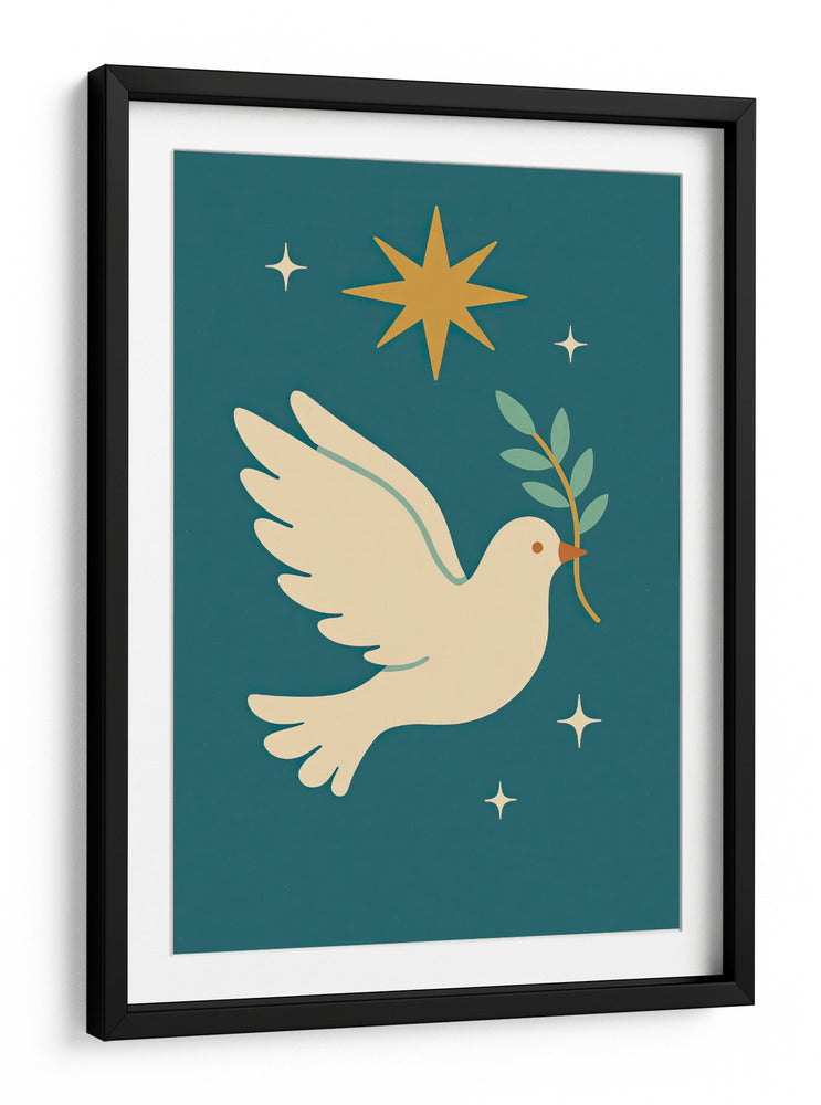 Inunda tu hogar con un aura de serenidad y esperanza con este cautivador cuadro decorativo 'Paloma de la paz' del artista Treechild. La obra presenta una paloma estilizada en vuelo, portando una rama de olivo, un símbolo universalmente reconocido de paz y reconciliación. Los colores, dominados por un profundo azul verdoso que evoca tranquilidad y profundidad, contrastan armoniosamente con el suave tono crema de la paloma y el brillante dorado de una estrella que ilumina la escena. Las pequeñas estrellas dispersas añaden un toque celestial, sugiriendo un mensaje de armonía universal. La composición minimalista y el estilo gráfico limpio hacen que esta pieza sea increíblemente versátil, ideal para cualquier espacio que busque infundir calma y un sentido de unidad. Imagina este cuadro decorativo como el punto focal de tu sala de estar, aportando un toque de elegancia serena a tus reuniones, o como un recordatorio constante de paz en tu dormitorio o estudio. Es una elección perfecta para quienes valoran la simbología profunda y la estética contemporánea en su decoración. Este cuadro decorativo no es solo una pieza de arte, sino una declaración de intenciones, un soplo de aire fresco y un faro de optimismo para tu espacio vital.