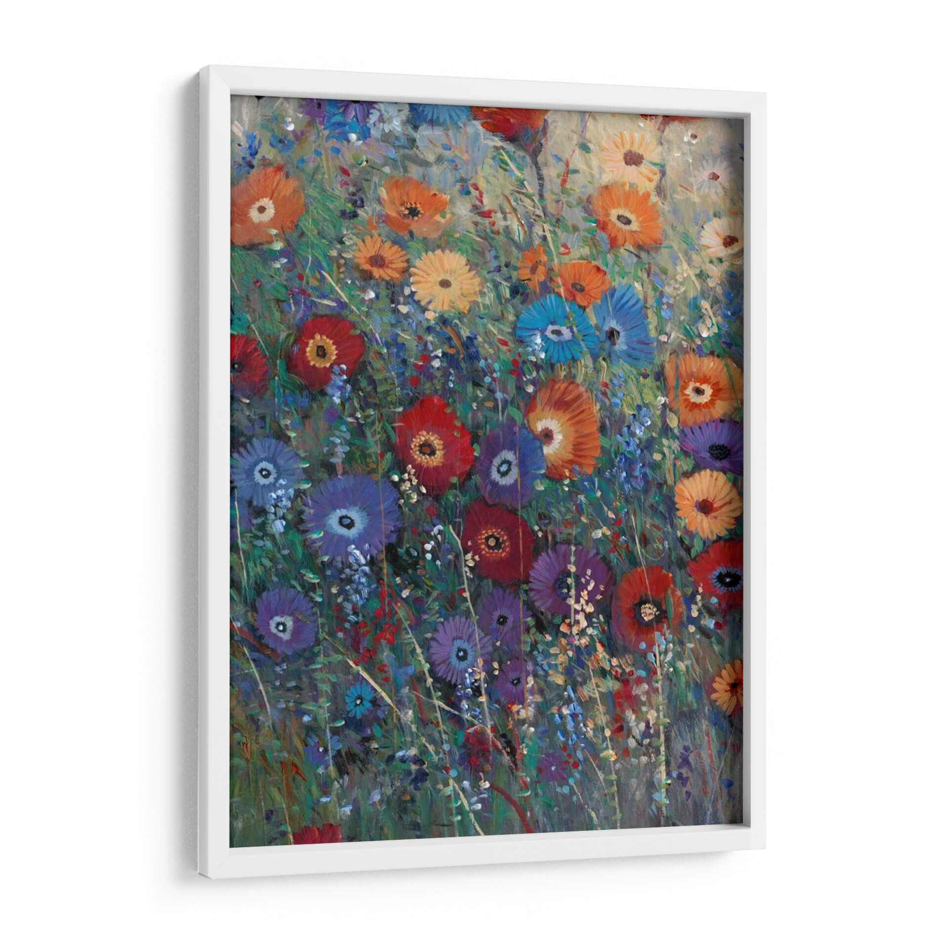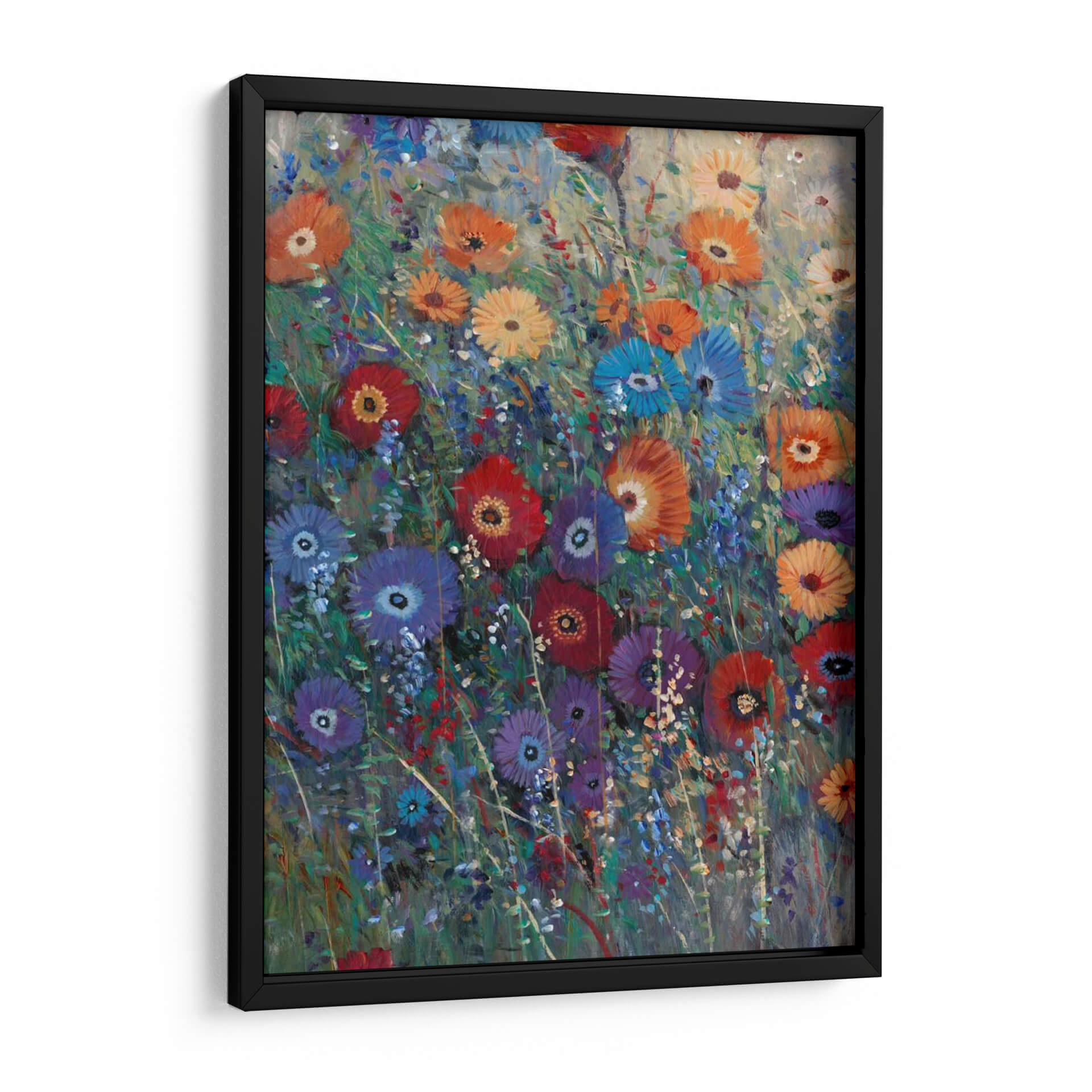 Embellece tu hogar con el vibrante cuadro decorativo "Parche De Flores I" de Tim O'Toole. Esta obra maestra captura la esencia de un prado florido con una explosión de colores vivos y texturas ricas. Las pinceladas audaces y expresivas dan vida a una variedad de flores, desde rojos intensos y naranjas vibrantes hasta azules profundos y púrpuras sutiles, creando una composición dinámica y alegre. El fondo, con sus tonos grises y verdes suaves, permite que el follaje y las flores roben todo el protagonismo, aportando profundidad y un toque de misterio. La atmósfera general es de exuberancia y vitalidad, evocando la belleza efímera de la naturaleza en plena floración. Este cuadro decorativo es ideal para añadir un toque de color y optimismo a cualquier estancia, ya sea una sala de estar moderna, un comedor acogedor o un dormitorio sereno. Su estilo impresionista moderno lo convierte en una pieza versátil que complementará una amplia gama de estilos decorativos, desde el contemporáneo hasta el bohemio. "Parche De Flores I" no es solo una decoración, es una ventana a un jardín lleno de vida que inspirará alegría y contemplación en tu día a día, transformando tus paredes en un lienzo de emociones y belleza natural.