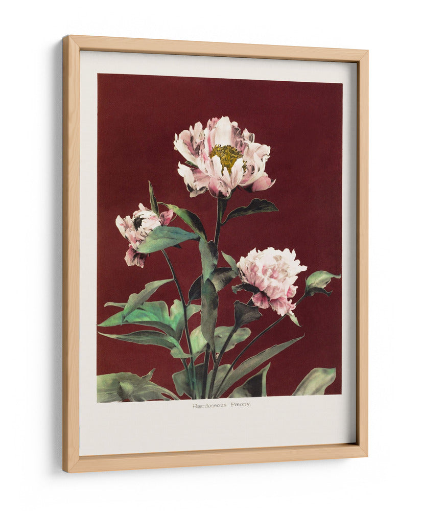 Sumérgete en la delicada belleza de "Peonía herbácea n.º 2", una obra de arte floral que captura la elegancia atemporal de la naturaleza. Este cuadro decorativo presenta un vibrante despliegue de peonías en tonos rosados y blancos, con detalles intrincados que revelan la maestría del artista Ogawa Kazumasa. El fondo de color burdeos profundo proporciona un contraste suntuoso, realzando la delicadeza de los pétalos y el verde exuberante de las hojas. La composición, centrada en el crecimiento vertical de las flores, evoca una sensación de calma y serenidad, invitando a la contemplación. Ideal para añadir un toque de sofisticación natural a salones, dormitorios o estudios, este cuadro es una pieza que inspira tranquilidad y aprecio por la botánica. Su estilo detallado y realista, con influencias del arte japonés, lo convierte en una adición única y refinada a cualquier espacio que busque un equilibrio entre lo clásico y lo contemporáneo. Transforma tu hogar u oficina con esta exquisita representación floral que aporta vida y color.