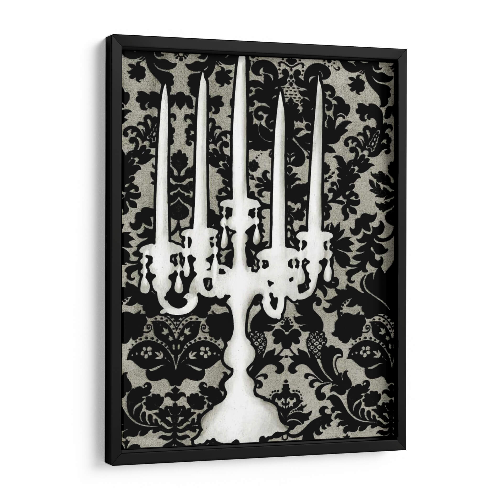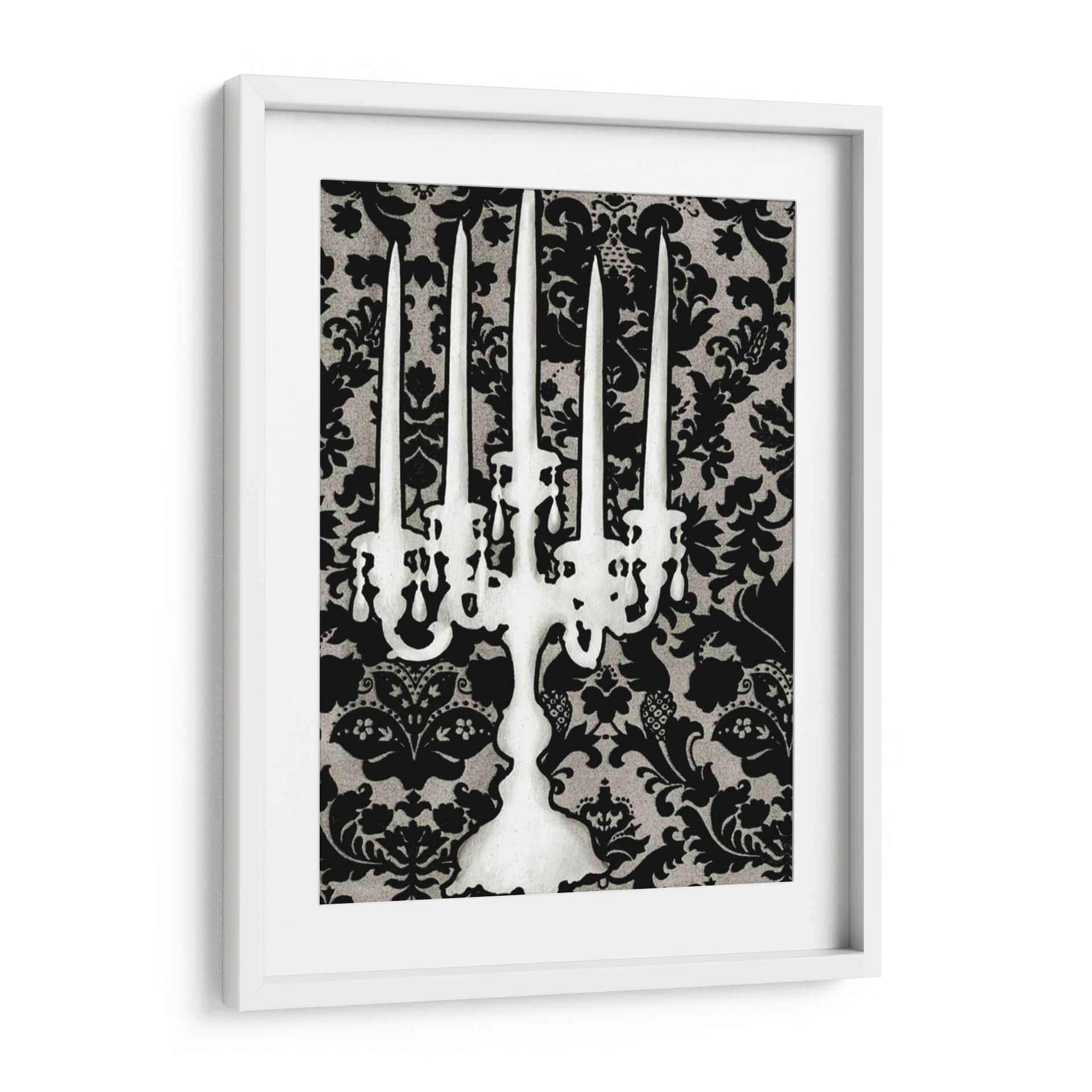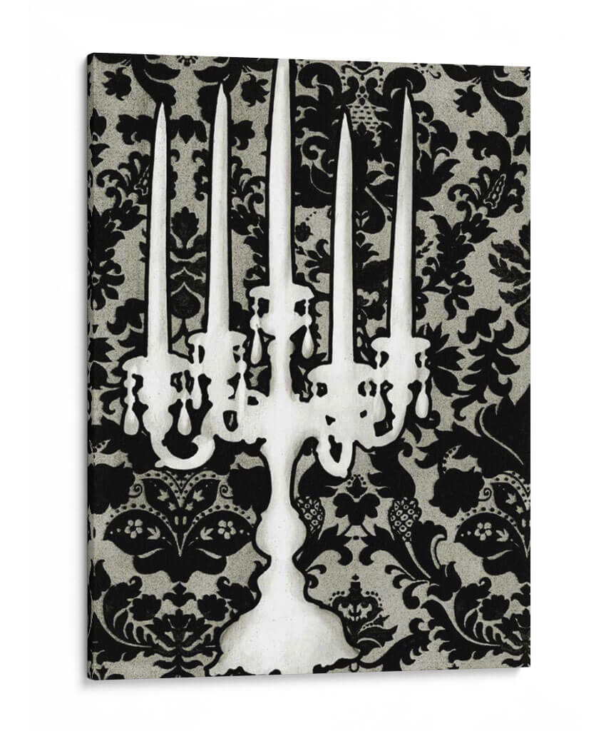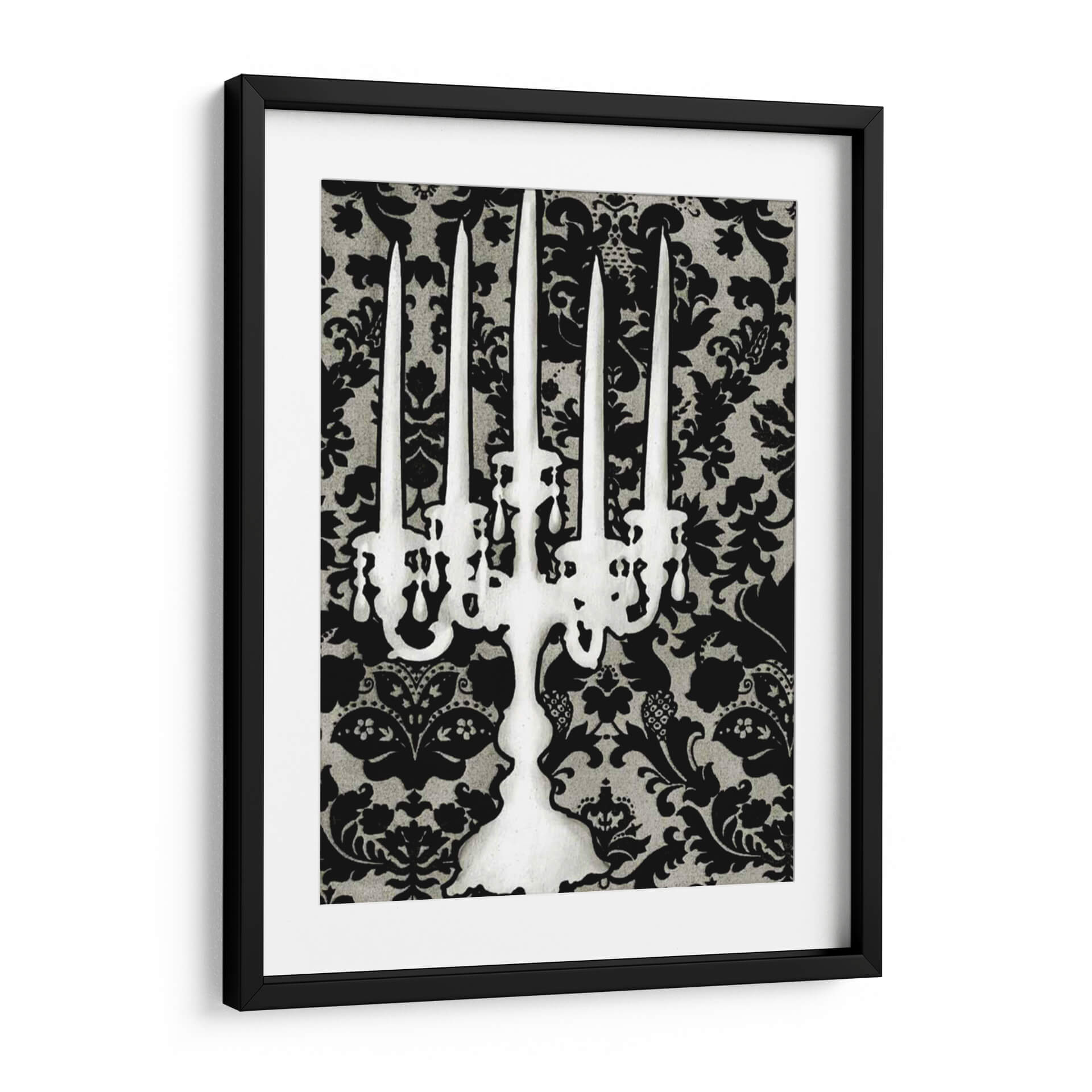 Descubre la elegancia atemporal con "Pequeño Candelabro Estampado II", una obra de arte que captura la esencia del estilo gótico-romántico con un toque contemporáneo. Este cuadro decorativo presenta un candelabro blanco, de diseño intrincado, que se alza sobre un fondo damasco en blanco y negro, creando un contraste visual potente y sofisticado. Las velas, con sus formas alargadas y detalles de cera derritiéndose, evocan una atmósfera de misterio y calidez, mientras que el patrón ornamental del damasco aporta profundidad y un aire de lujo clásico. La paleta de colores monocromática intensifica la dramatismo de la pieza, haciéndola un punto focal cautivador para cualquier espacio. Ideal para salones, comedores o estudios que buscan añadir un toque de distinción y carácter. Esta pieza de Ethan Harper es perfecta para quienes aprecian el arte con narrativa y una estética audaz, capaz de transformar un ambiente ordinario en uno extraordinario, invitando a la contemplación y al elogio.