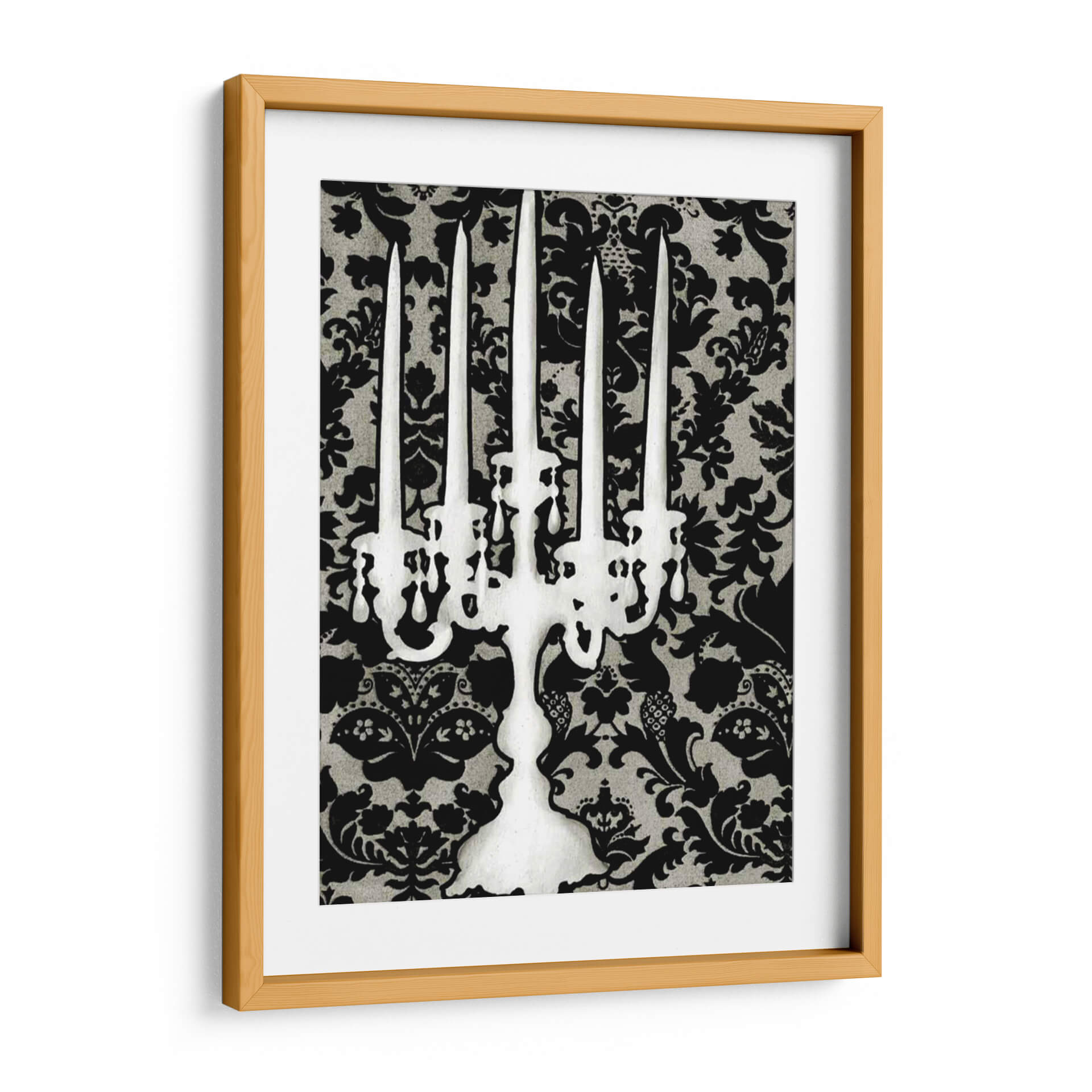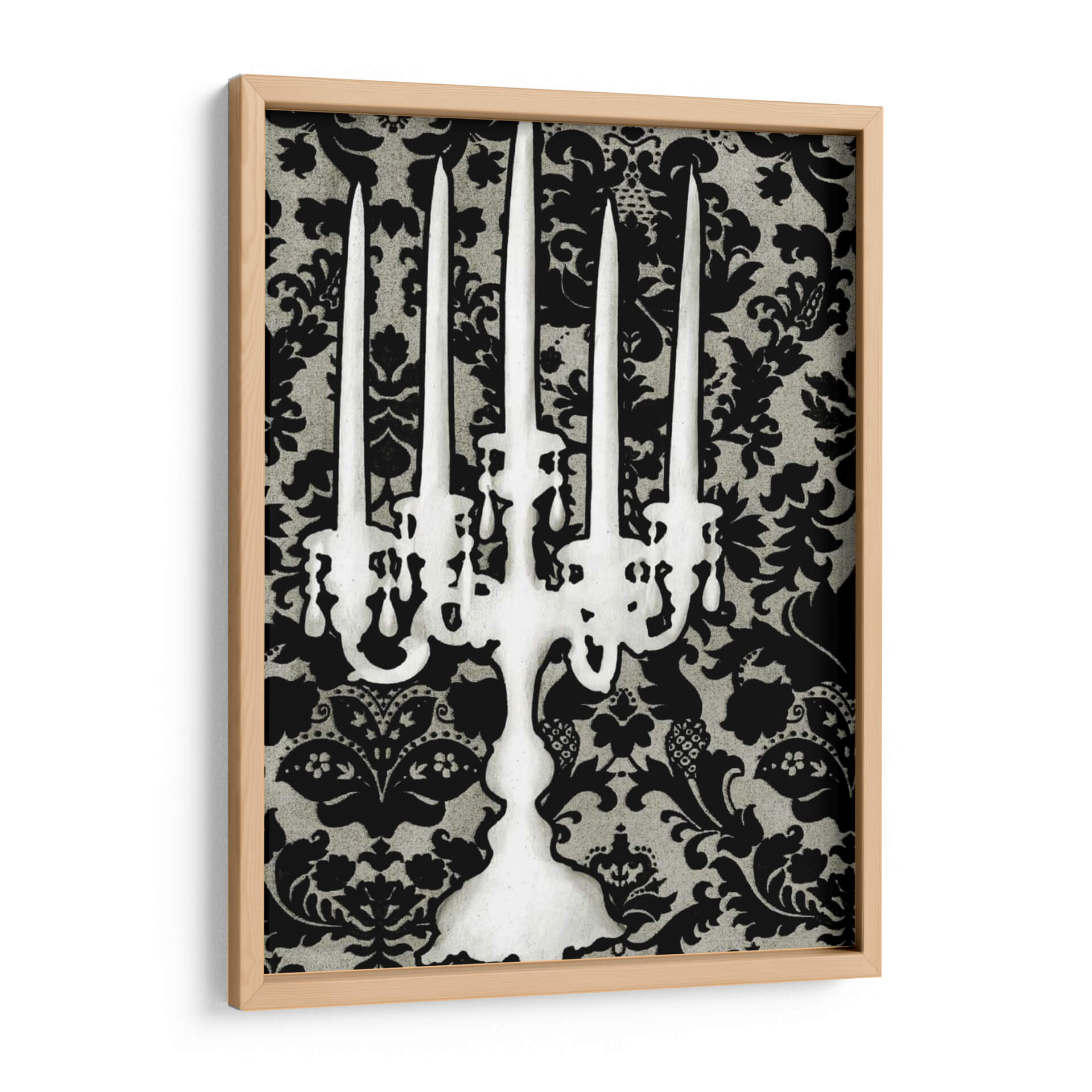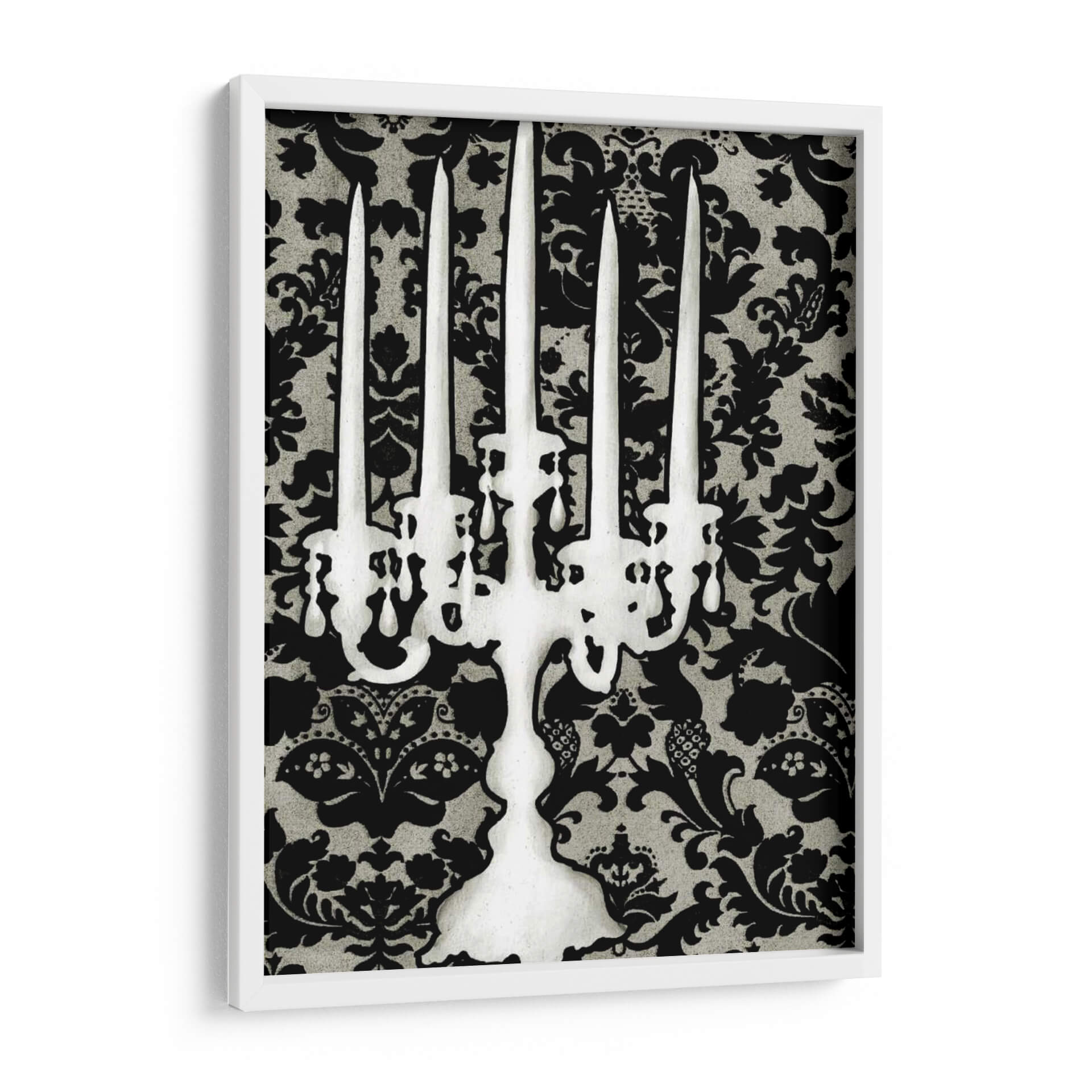 Descubre la elegancia atemporal con "Pequeño Candelabro Estampado II", una obra de arte que captura la esencia del estilo gótico-romántico con un toque contemporáneo. Este cuadro decorativo presenta un candelabro blanco, de diseño intrincado, que se alza sobre un fondo damasco en blanco y negro, creando un contraste visual potente y sofisticado. Las velas, con sus formas alargadas y detalles de cera derritiéndose, evocan una atmósfera de misterio y calidez, mientras que el patrón ornamental del damasco aporta profundidad y un aire de lujo clásico. La paleta de colores monocromática intensifica la dramatismo de la pieza, haciéndola un punto focal cautivador para cualquier espacio. Ideal para salones, comedores o estudios que buscan añadir un toque de distinción y carácter. Esta pieza de Ethan Harper es perfecta para quienes aprecian el arte con narrativa y una estética audaz, capaz de transformar un ambiente ordinario en uno extraordinario, invitando a la contemplación y al elogio.