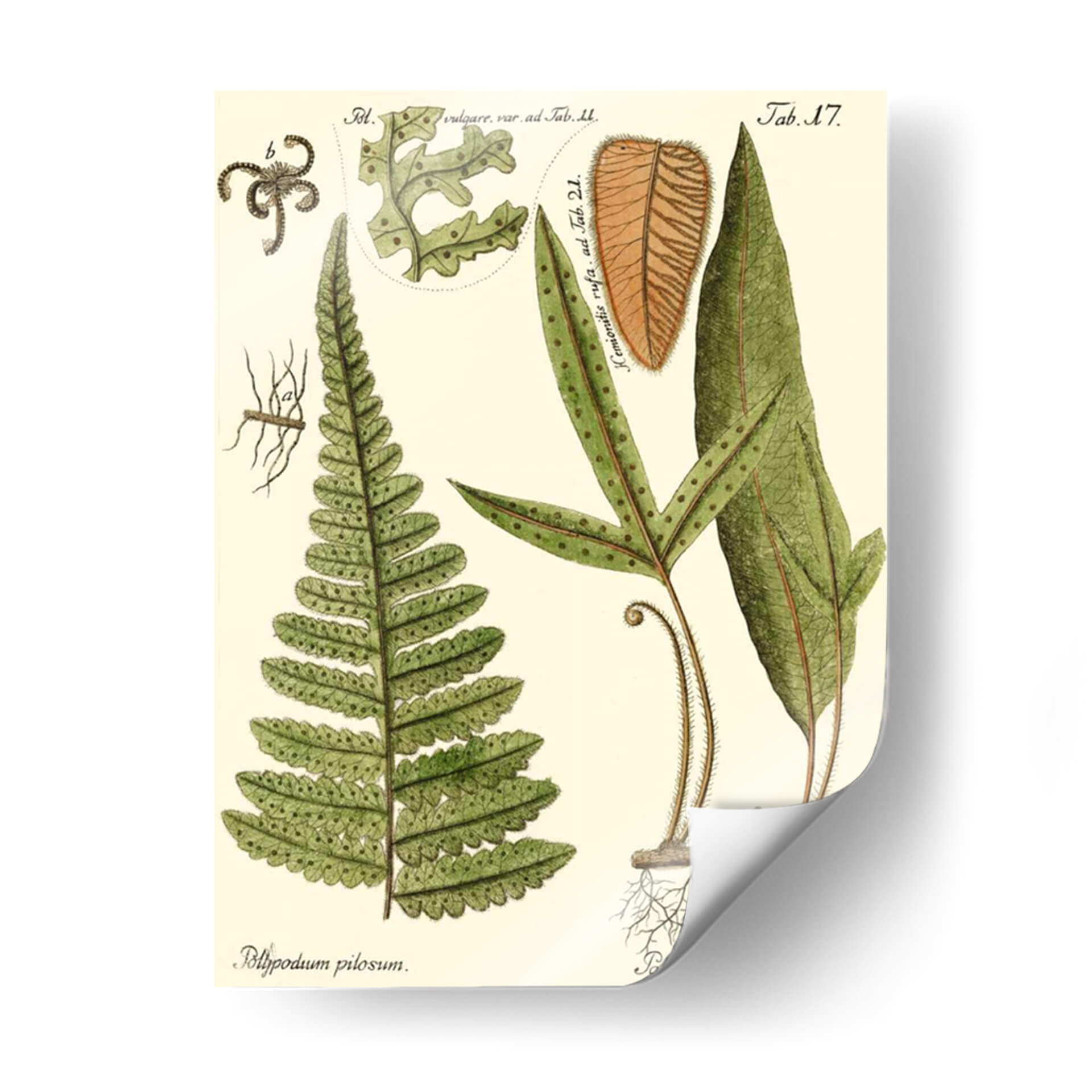 Embellece tu espacio con la elegancia botánica de "Pequeño Helecho Antiguo IV", una obra de arte que captura la intrincada belleza de la naturaleza con un estilo de ilustración científica clásica. Esta pieza, creada por Vision Studio, presenta un detallado estudio de helechos, destacando sus frondas verdes vibrantes y las sutiles texturas de sus esporas. Los tonos tierra y verdes dominantes aportan una sensación de calma y conexión con el entorno natural, lo que la convierte en la elección perfecta para añadir un toque de serenidad y sofisticación a cualquier habitación. Ideal para despachos, salones o dormitorios, este cuadro decorativo evoca una atmósfera de tranquilidad y aprecio por el mundo natural. Su diseño atemporal y la precisión de sus trazos invitan a la contemplación, ofreciendo una ventana a la maravilla de la botánica que enriquecerá tu decoración. Añade un toque de historia natural a tu hogar con esta exquisita representación de la flora.