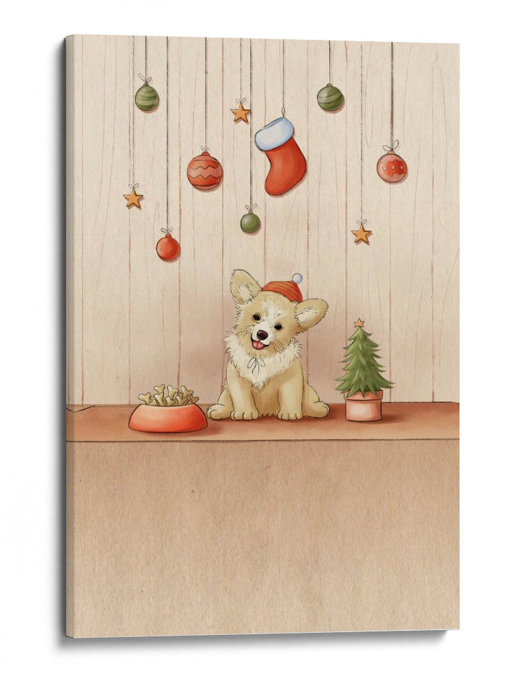 Captura la alegría y el espíritu festivo con este encantador cuadro decorativo de un adorable Corgi con un gorro de Papá Noel. La obra, titulada 'Perro lindo' por Xuan Thai, presenta al cachorro sentado junto a su cuenco de comida, con un pequeño árbol de Navidad y adornos colgantes que crean una escena invernal acogedora y llena de ternura. Los colores cálidos y la suave paleta de tonos tierra, combinados con toques de rojo y verde, evocan una atmósfera de paz y felicidad, perfecta para la temporada navideña o para cualquier amante de los perros durante todo el año. El estilo de ilustración es delicado y detallado, con un acabado que recuerda a la acuarela, lo que le confiere un encanto artesanal único. Este cuadro es ideal para añadir un toque de calidez y personalidad a cualquier espacio, desde la sala de estar o el dormitorio hasta la oficina o una habitación infantil. Su temática universalmente atractiva lo convierte en un regalo perfecto, transmitiendo amor y alegría. Transforma tu hogar en un refugio de alegría navideña con esta pieza única que celebra la lealtad y el espíritu juguetón de nuestros compañeros caninos. Añade esta obra de arte a tu colección y deja que su dulzura ilumine tus días.