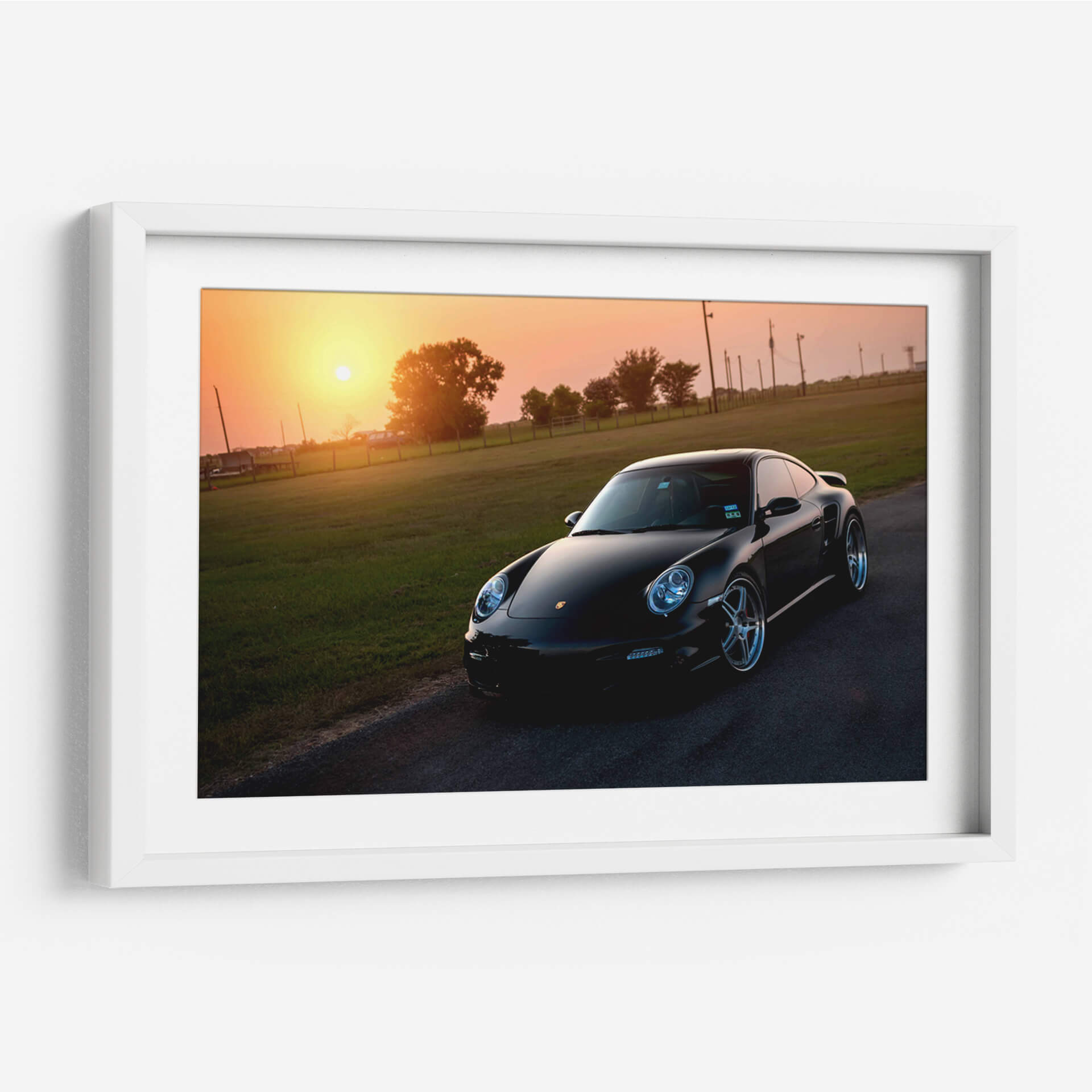 Captura la esencia de la velocidad y el diseño icónico con este impresionante cuadro decorativo del Porsche 911 Turbo. La obra presenta un elegante Porsche 911 Turbo negro, estacionado en una carretera rural al atardecer, con el sol poniente tiñendo el cielo de cálidos tonos anaranjados y dorados. La hierba verde y el paisaje difuminado al fondo crean un contraste sereno con la potencia y el dinamismo del vehículo. La luz del ocaso baña la escena, resaltando las curvas aerodinámicas del coche y creando un ambiente de tranquilidad y elegancia. Ideal para los amantes de los automóviles, entusiastas de la velocidad o cualquiera que aprecie el arte automotriz, este cuadro aportará un toque de sofisticación y un aire de aventura a cualquier espacio. Perfecto para salones modernos, estudios u oficinas, este cuadro decorativo de un clásico deportivo invita a la contemplación y al aprecio por la ingeniería y el diseño atemporales. Transforma tu hogar u oficina en un santuario para los apasionados del motor con esta pieza única que evoca la libertad de la carretera y la belleza del diseño automotriz en su máxima expresión.