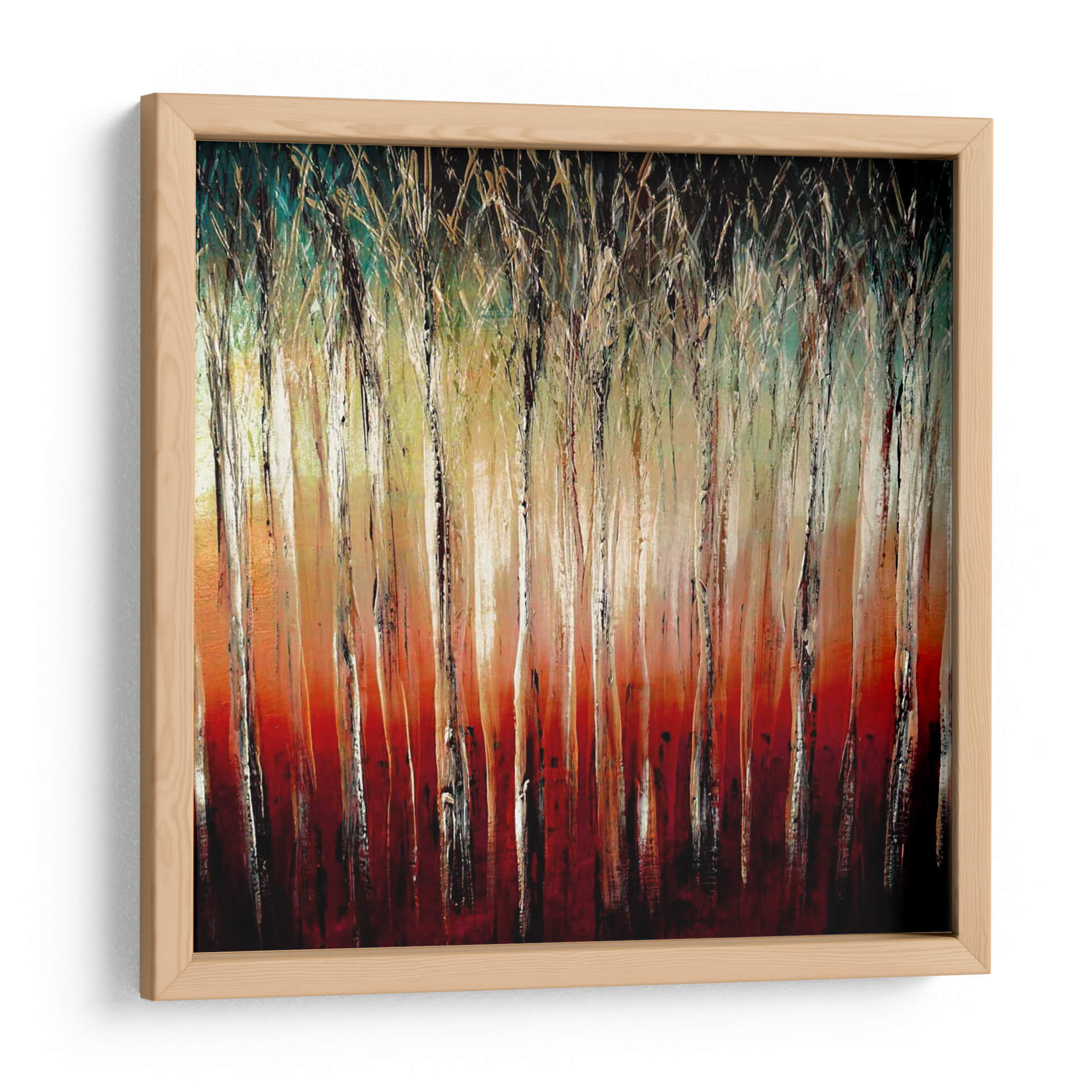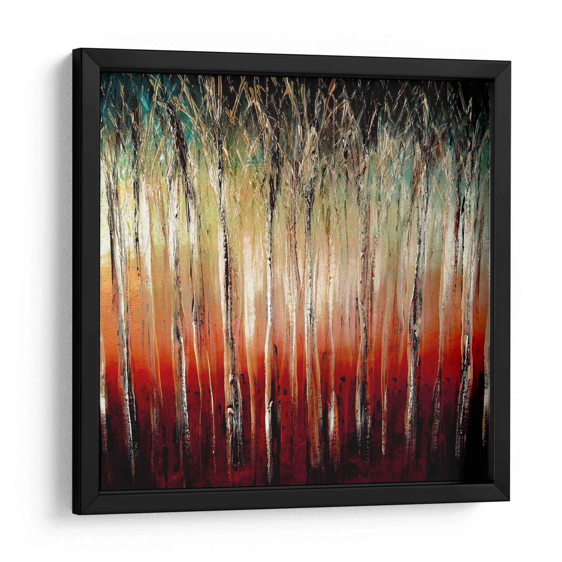 Captura la esencia de un atardecer vibrante con este cautivador cuadro decorativo, 'Puesta De Sol', de Danielle Harrington. La obra se despliega ante el espectador como un bosque estilizado o una serie de formas orgánicas que ascienden desde una base oscura y profunda. Predominan los tonos cálidos y ardientes del naranja y el rojo en la parte inferior, que gradualmente se funden con tonos más suaves de amarillo y verde pálido en el medio, para culminar en un toque de azul verdoso y negro en la parte superior. Las pinceladas verticales y texturizadas crean una sensación de movimiento y profundidad, sugiriendo la luz filtrándose entre las copas de los árboles o el efecto etéreo de la luz solar reflejada en el agua. El estilo abstracto y expresivo de Harrington invita a la interpretación personal, evocando una atmósfera de calidez, energía y una serena contemplación de la naturaleza al final del día. Este cuadro decorativo es ideal para añadir un toque de color y sofisticación a cualquier sala de estar, comedor o estudio, transformando espacios neutros en ambientes llenos de vida y carácter.