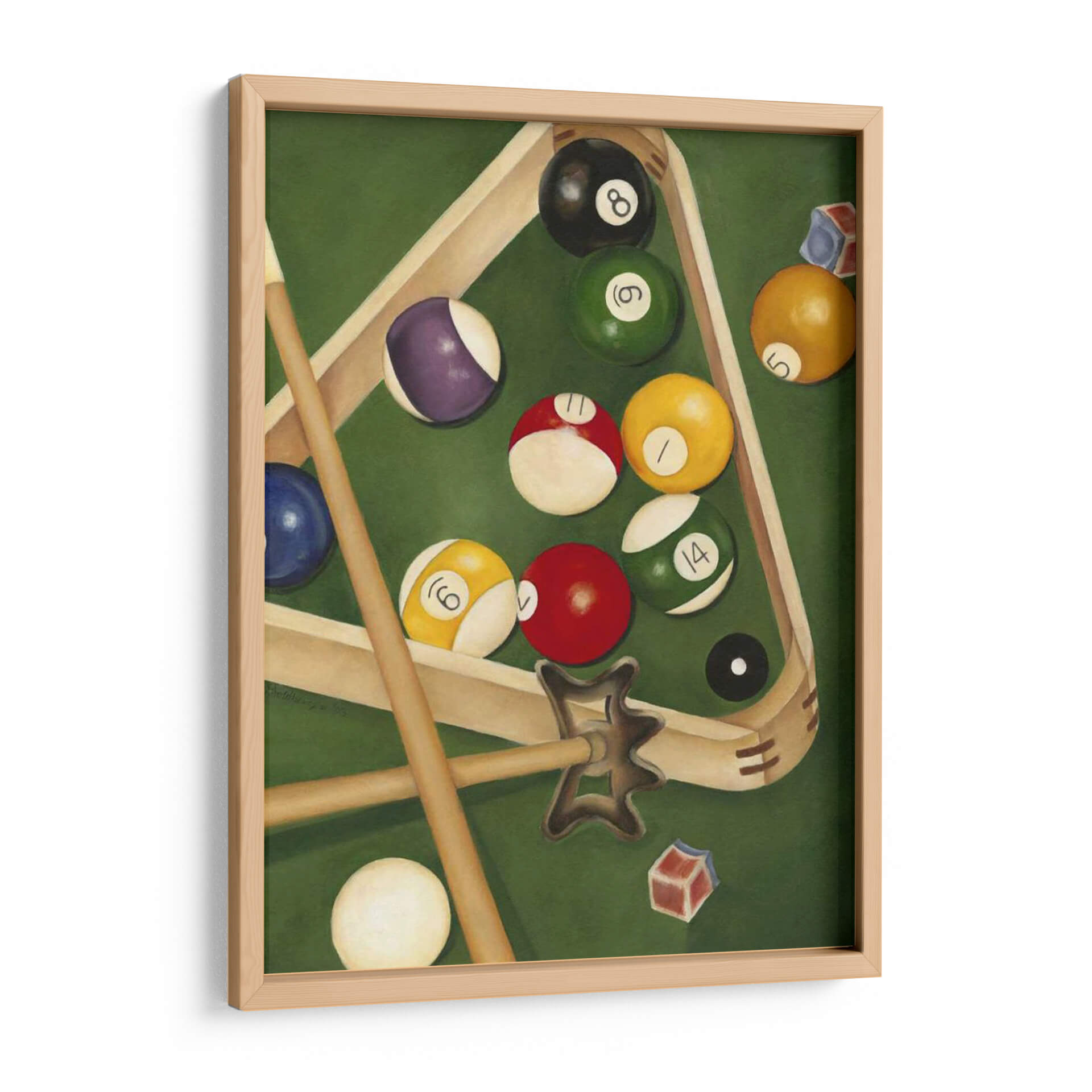 Sumérgete en el nostálgico mundo del billar con "Rackem It II", una cautivadora obra de arte de Jennifer Goldberger. Esta pieza captura la esencia de un juego pausado, presentando una mesa de billar verde vibrante adornada con bolas de colores y palos de madera. La composición detallada, con la bola 8 negra, la bola 6 verde, la bola 5 amarilla y otras, junto con los icónicos cubos de tiza, transporta al espectador a un momento de anticipación antes del tiro perfecto. Los tonos terrosos y verdes predominantes crean una atmósfera serena pero a la vez invitante, ideal para cualquier espacio que busque un toque de sofisticación casual o un guiño a los pasatiempos clásicos. "Rackem It II" no es solo una imagen, sino una invitación a revivir la emoción de cada partida. Perfecta para salones, estudios o salas de ocio, este cuadro decorativo añade carácter y un aire de tranquila contemplación, convirtiéndose en un punto focal memorable. Su estilo realista y la cuidadosa atención al detalle lo hacen una adición atemporal a tu colección de arte de pared.