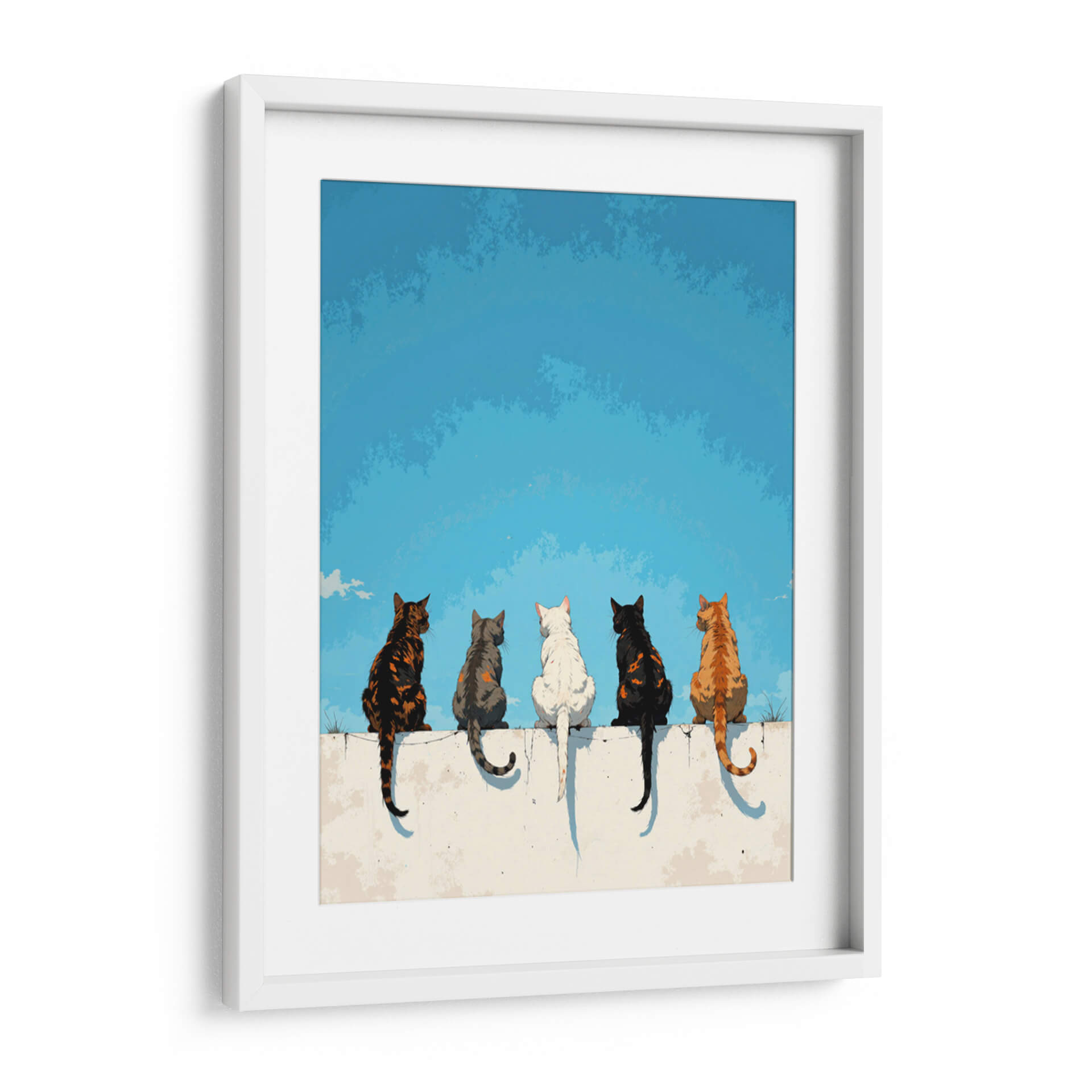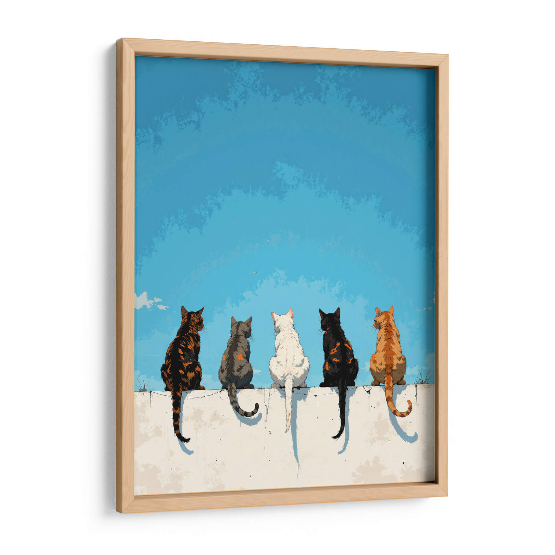 Sumérgete en la serena belleza de "Reunión Felina", una obra de arte digital de Paltik Arte Digital que captura la esencia de la camaradería y la contemplación. Cinco gatos, cada uno con su pelaje distintivo, se sientan juntos sobre un muro blanco, mirando hacia un cielo azul vibrante salpicado de nubes tenues. La paleta de colores, dominada por azules celestes y los tonos tierra y negros de los felinos, crea una atmósfera de tranquilidad y armonía. El estilo distintivo del artista, con pinceladas sutiles que sugieren textura y profundidad, da vida a esta escena cotidiana con un toque mágico. Este cuadro decorativo es perfecto para añadir un toque de personalidad y calidez a cualquier espacio, ya sea una sala de estar moderna, un rincón acogedor en el dormitorio o un estudio creativo. Su composición equilibrada y la temática universalmente atractiva de los gatos lo convierten en una pieza ideal para amantes de los animales y apreciadores del arte contemporáneo que buscan una conexión emocional con sus decoraciones. "Reunión Felina" invita a la reflexión y a la apreciación de los momentos de quietud compartida, transformando tu hogar en un refugio de paz y estilo.