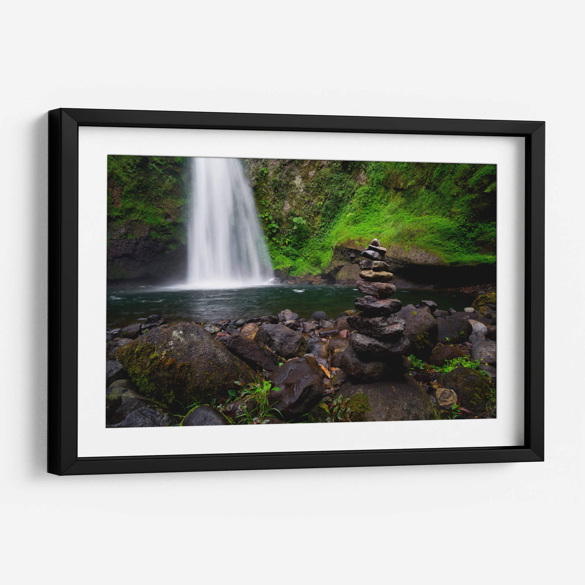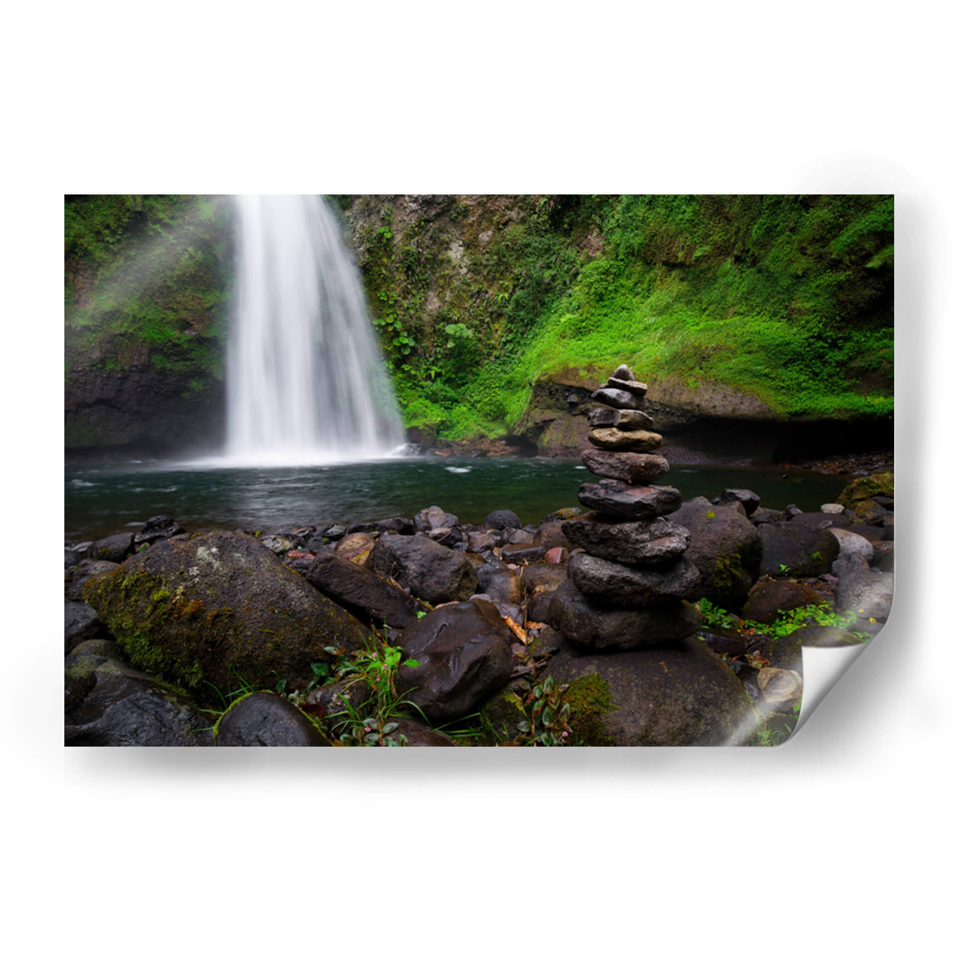 Sumérgete en la serenidad de la naturaleza con este cautivador cuadro decorativo 'Rocas en cascada' de Jorge Vargas. La obra captura la esencia pura de un paisaje exuberante, donde una poderosa cascada se desploma en un estanque de aguas verdes y profundas. La composición se ve realzada por una intrigante pila de rocas apiladas cuidadosamente a orillas del agua, simbolizando el equilibrio y la calma. Los verdes intensos de la vegetación que rodea la cascada y las rocas cubiertas de musgo crean una paleta de colores vibrante y terrosa, evocando una sensación de paz y conexión con el entorno natural. El estilo fotográfico y realista de la obra permite apreciar la textura de las rocas y la fluidez del agua, invitando a la contemplación y al relax. Este cuadro es ideal para añadir un toque de tranquilidad y la belleza indómita de la naturaleza a cualquier espacio, ya sea una sala de estar, un dormitorio o una oficina, transformando tu hogar en un santuario de paz. Descubre la fuerza serena de 'Rocas en cascada' y deja que su energía revitalizante llene tu hogar.
