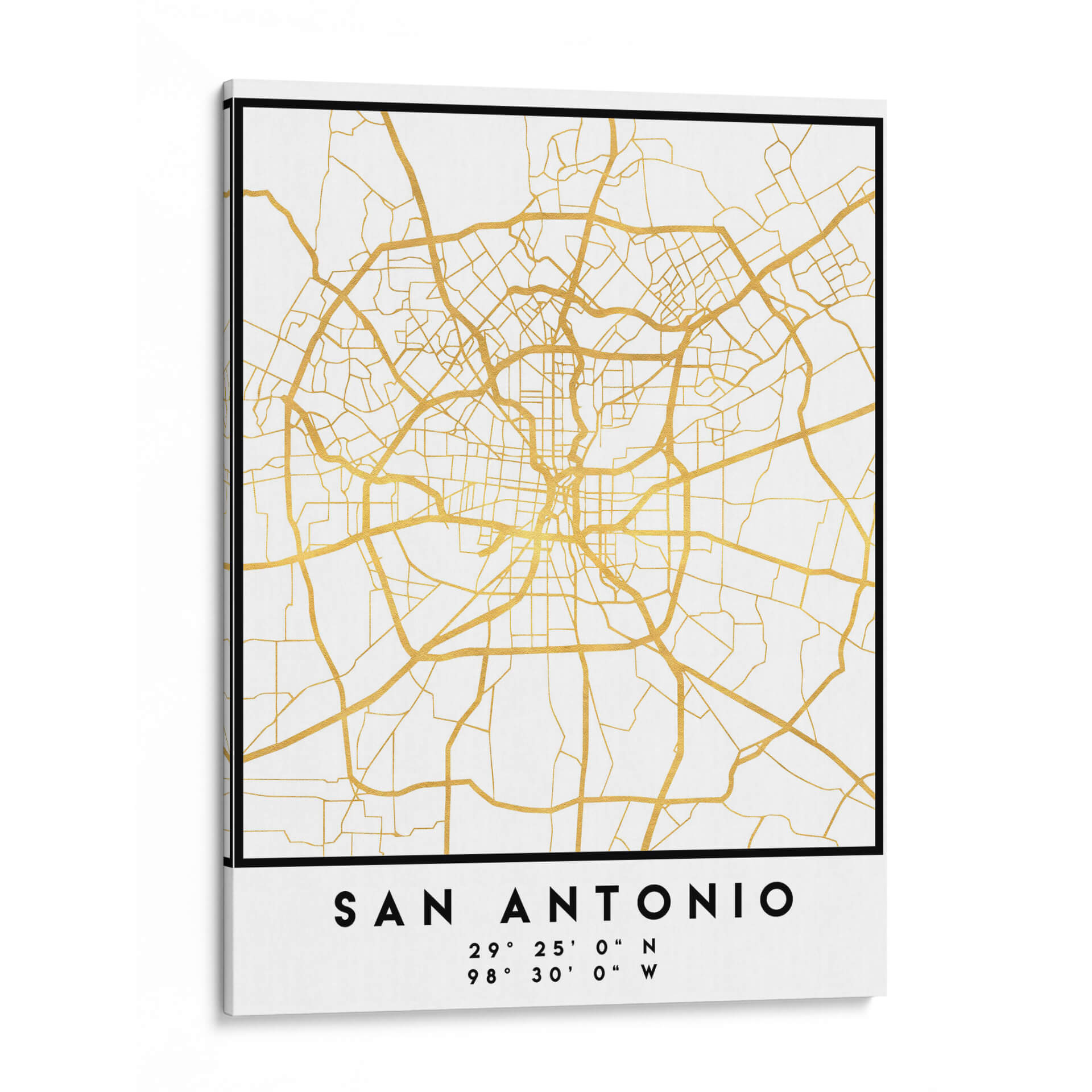 Transforma tu espacio con este sofisticado cuadro decorativo de San Antonio, una obra que fusiona la cartografía urbana con un diseño moderno y elegante. Presenta una detallada representación de las calles y arterias de la ciudad de San Antonio, Texas, renderizada en un llamativo acabado dorado sobre un fondo blanco nítido. La composición abstracta de las líneas de la ciudad crea un patrón visualmente atractivo que evoca una sensación de orden y complejidad, ideal para añadir un toque de distinción a cualquier ambiente. Las coordenadas geográficas grabadas en la parte inferior añaden un toque personal y de significado para quienes tienen una conexión especial con esta vibrante ciudad texana. Este cuadro decorativo es perfecto para salas de estar, estudios, oficinas o cualquier lugar donde se desee incorporar un elemento de diseño contemporáneo con un aire de viaje y exploración urbana. Su paleta de colores neutros con acentos dorados lo hace increíblemente versátil, complementando una amplia gama de estilos decorativos, desde el minimalista hasta el moderno o el ecléctico. Aporta un toque de elegancia urbana y sofisticación a tu hogar u oficina con esta pieza única que celebra la esencia de San Antonio.