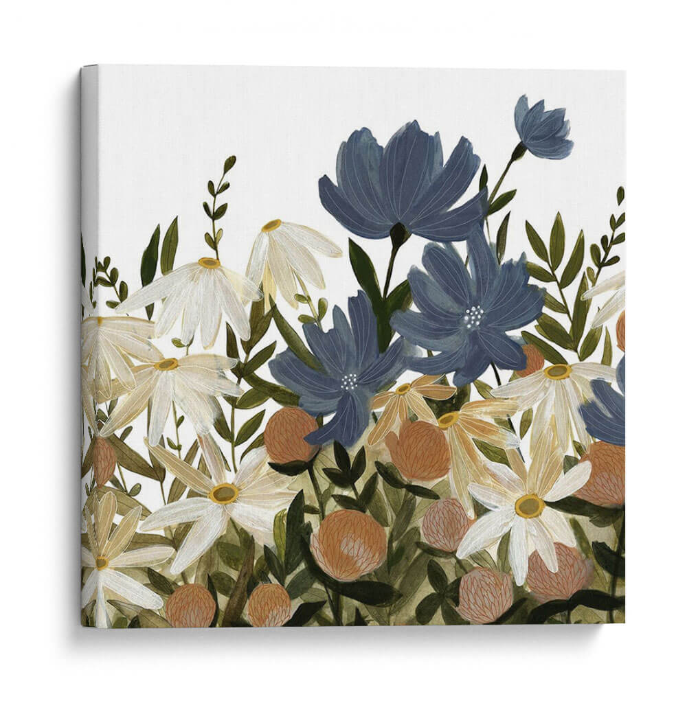 Sumérgete en la belleza natural de 'Ua Ch Wildflower Garden I', una obra de arte vibrante de Emma Scarvey que captura la esencia de un jardín silvestre en plena floración. Este cuadro decorativo presenta una composición exuberante de flores silvestres en una paleta de colores armoniosa que combina azules profundos, blancos etéreos y toques cálidos de ocre y terracota, todo sobre un fondo nítido y minimalista. Las delicadas pinceladas y las texturas sutiles otorgan a la pieza una calidad casi táctil, invitando a la contemplación y al disfrute de la naturaleza. El estilo contemporáneo y ligeramente estilizado de Scarvey da vida a cada pétalo y hoja, creando una sensación de movimiento y vitalidad. "Ua Ch Wildflower Garden I" es ideal para añadir un toque de frescura y serenidad a cualquier espacio, ya sea una sala de estar moderna, un dormitorio acogedor o una oficina que busca inspiración. Este cuadro es una celebración de la flora efímera, evocando sentimientos de alegría y conexión con el mundo natural, perfecto para quienes buscan llenar su hogar de color y vida.
